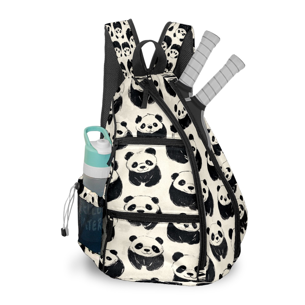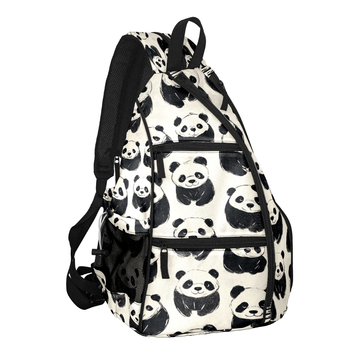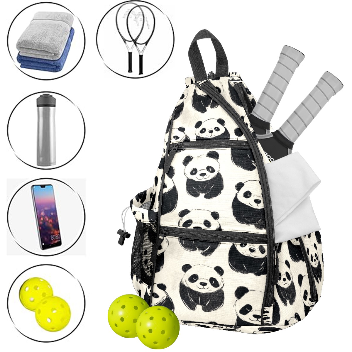 Pickleball Sling Bag for Women and Men - Backpack with Nylon Fabric/Woven Strap/Mesh Pocket/Fence Hook/Adjustable Bag Panda Pattern