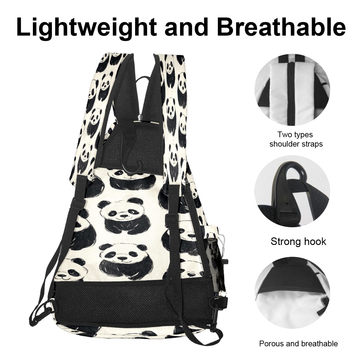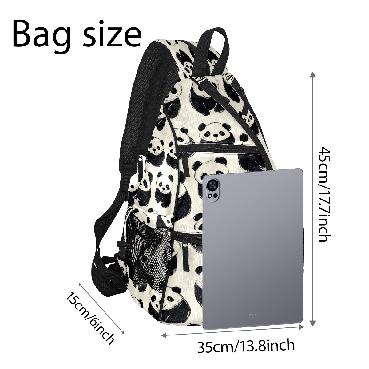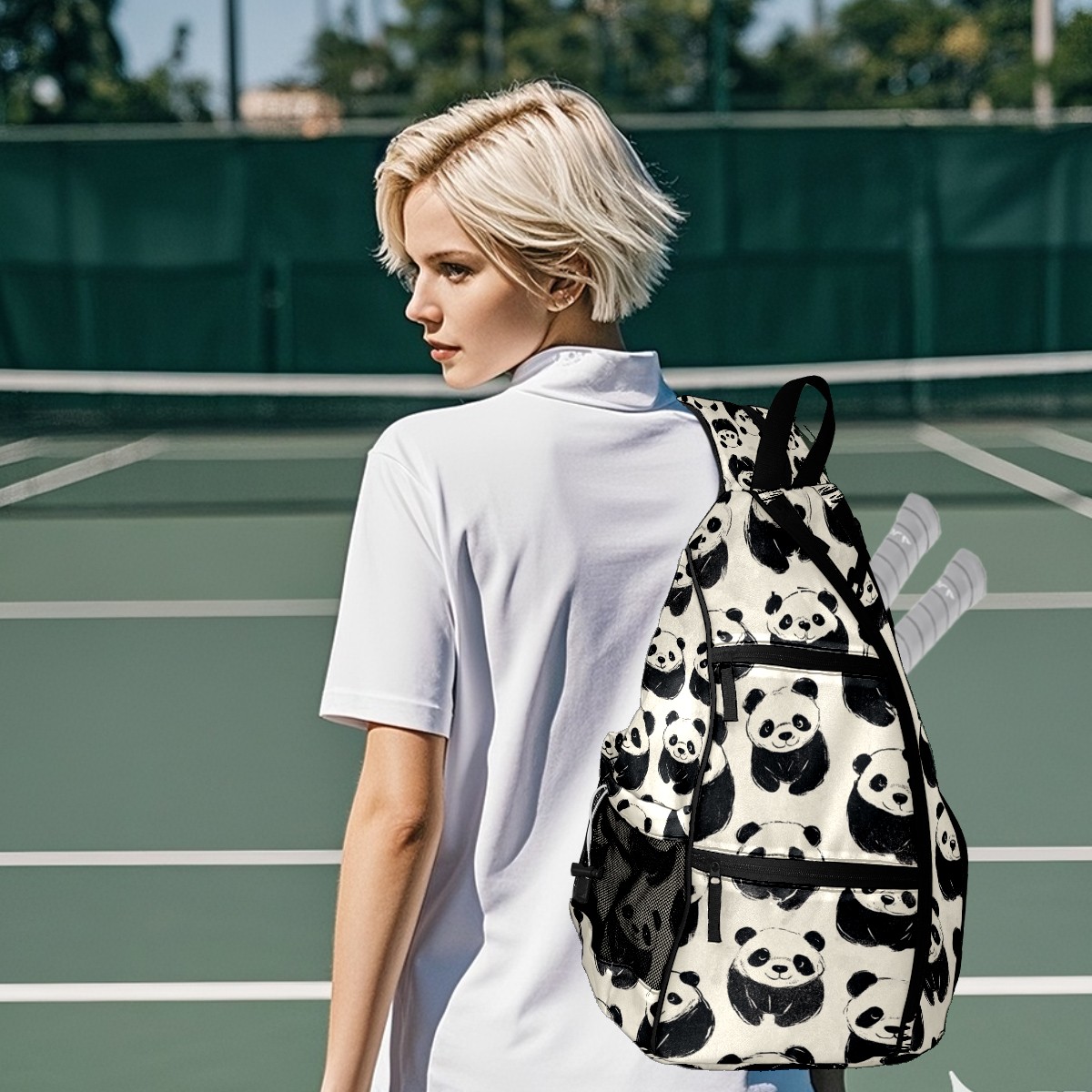 Pickleball Sling Bag for Women and Men - Backpack with Nylon Fabric/Woven Strap/Mesh Pocket/Fence Hook/Adjustable Bag Panda Pattern