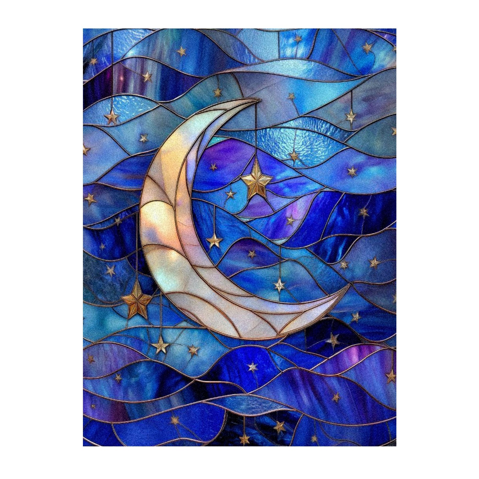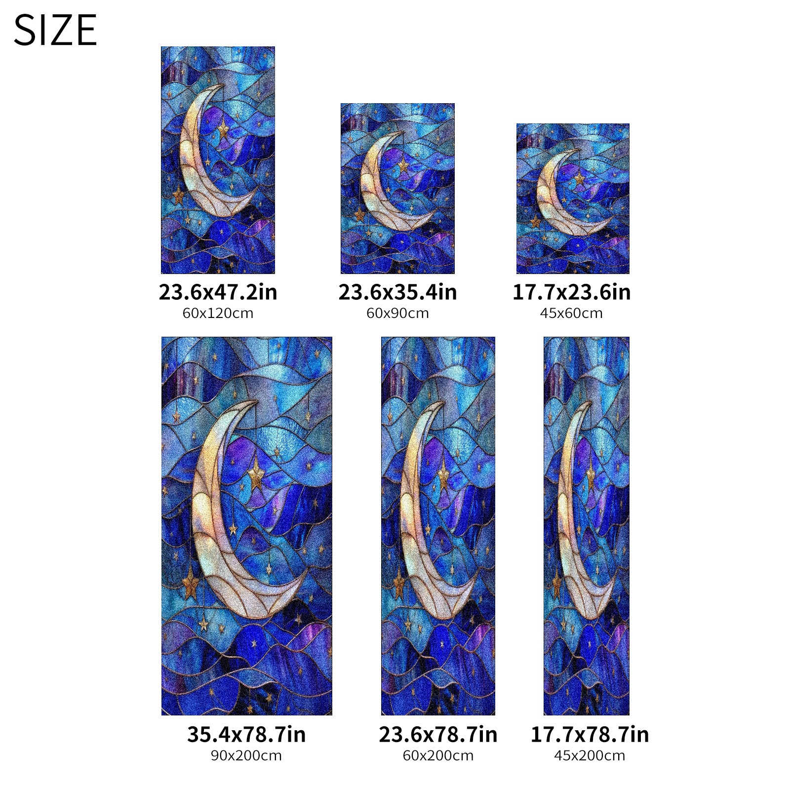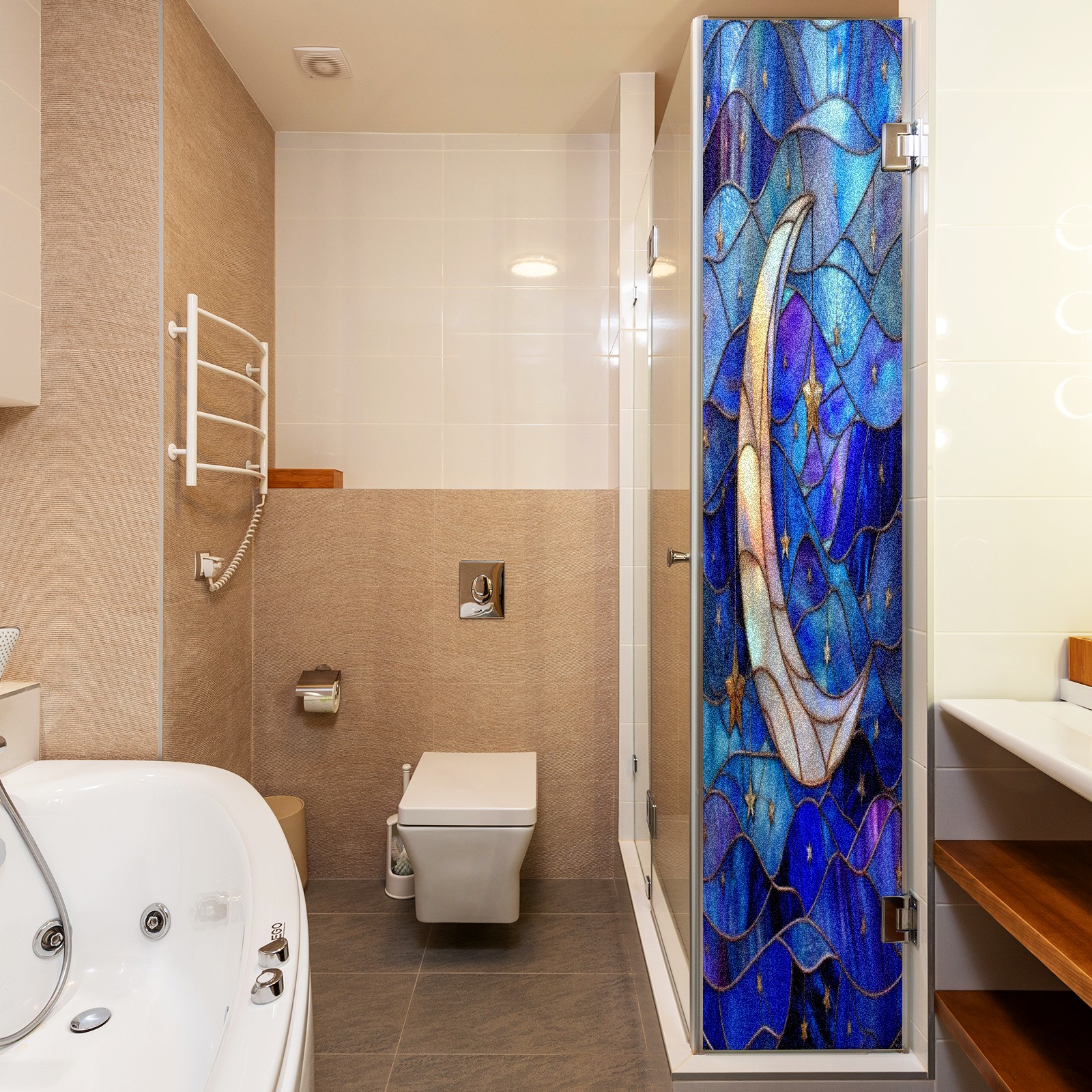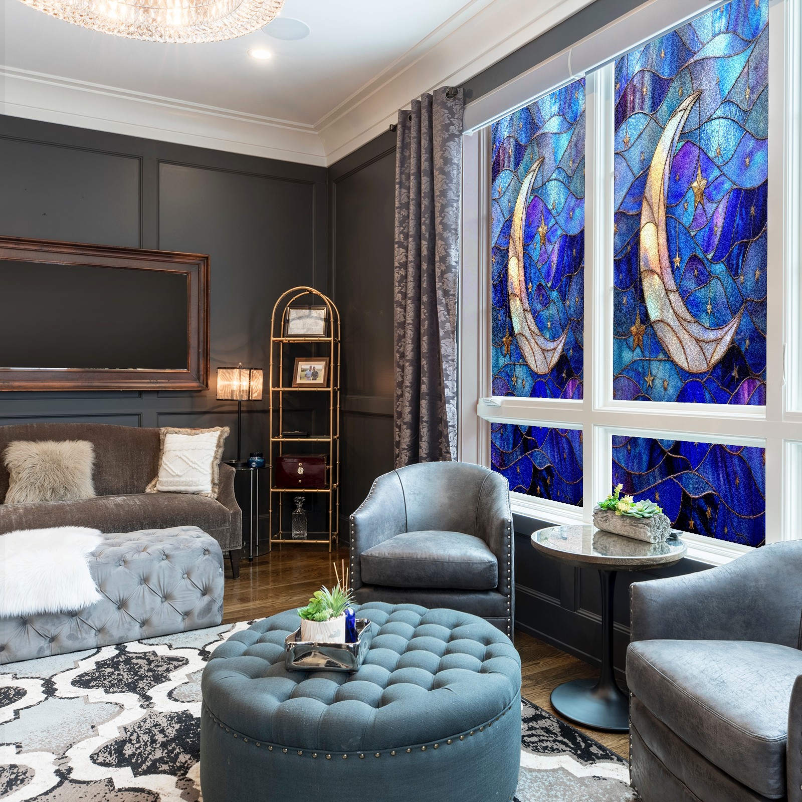 Window Privacy Film Frosted Stained Glass Film Decorative Static Cling for Bathroom Home Office Peel and Stick Window Film Blue Moon Stars(17.7x23.6in)