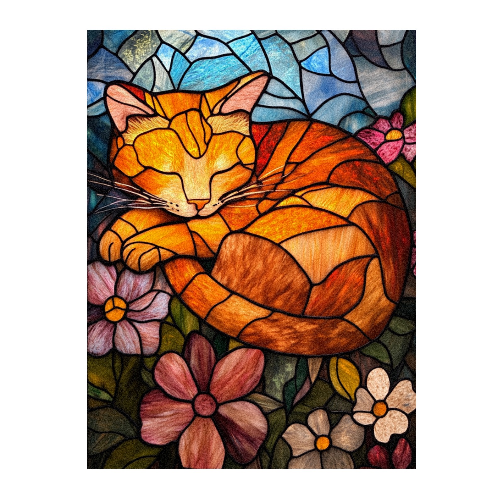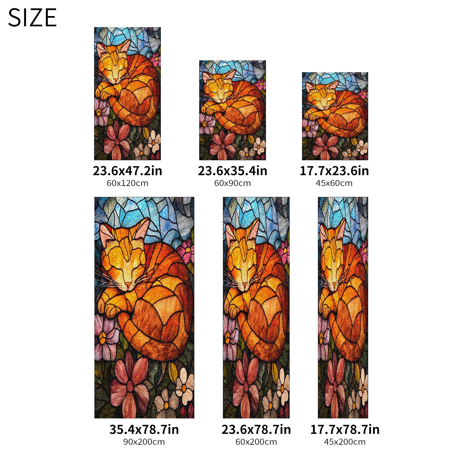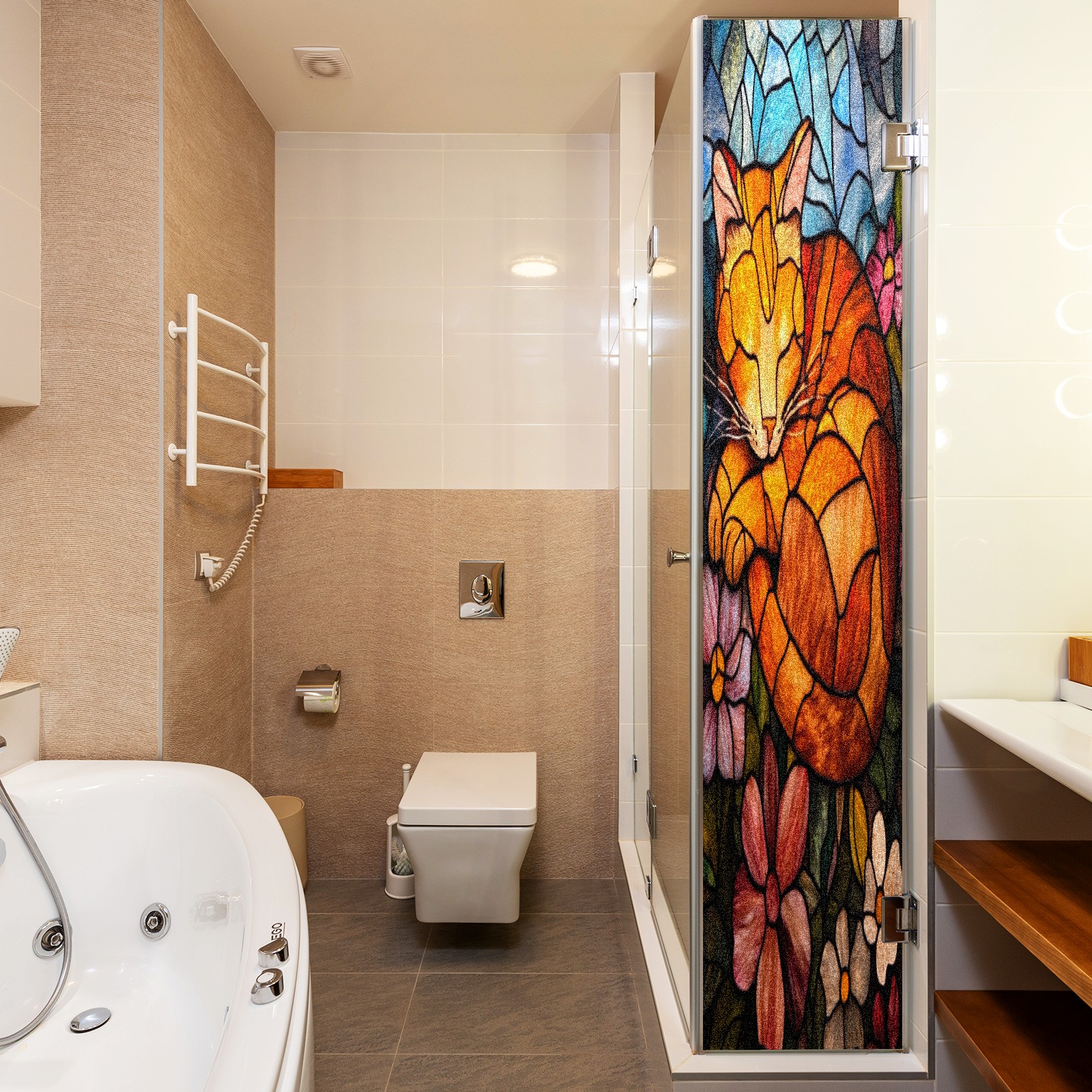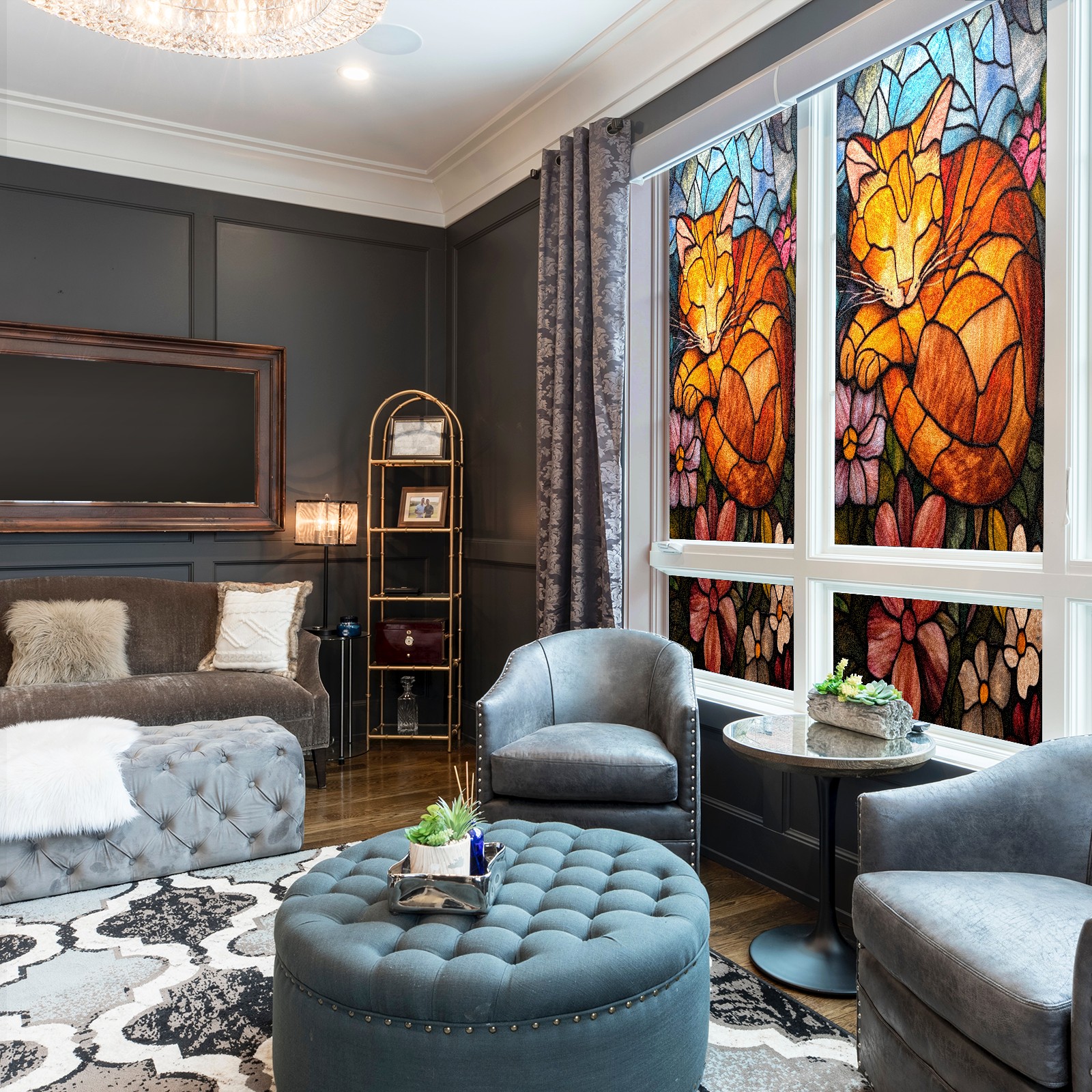 Window Privacy Film Frosted Stained Glass Film Decorative Static Cling for Bathroom Home Office Peel and Stick Window Film Stained Window Sleeping Cat Flowers 1(17.7x23.6in)