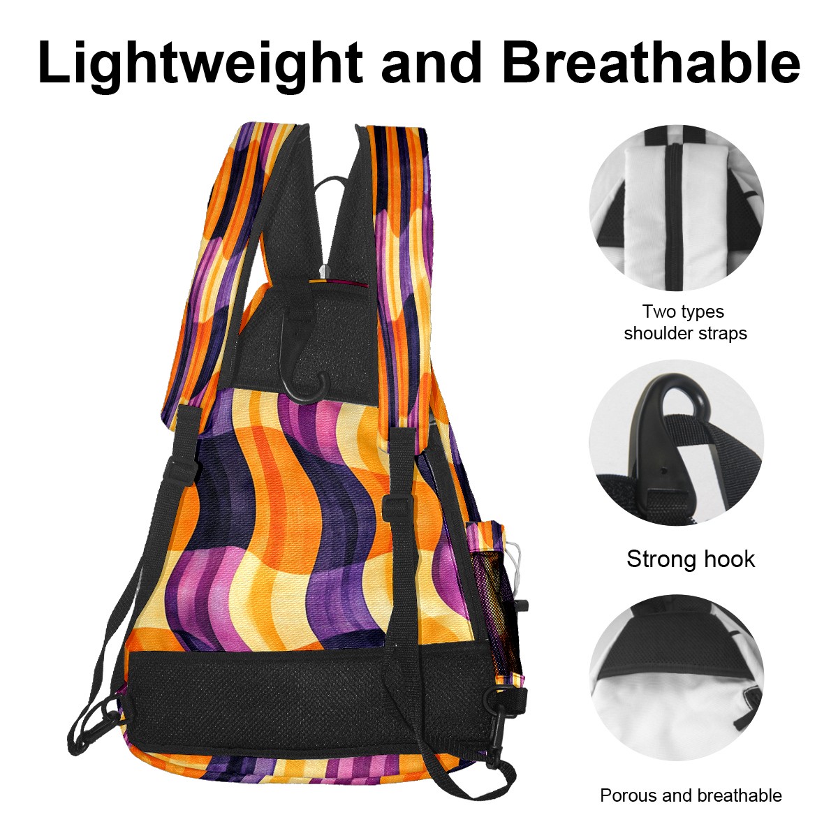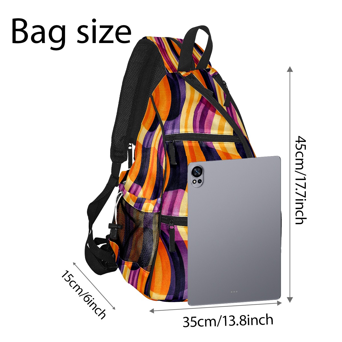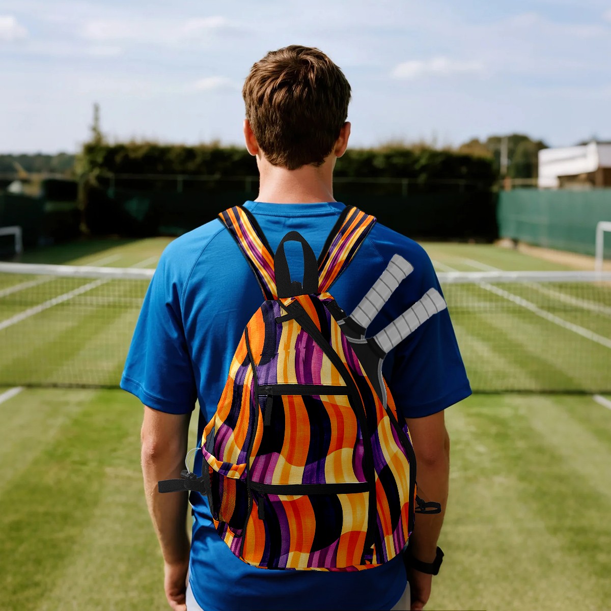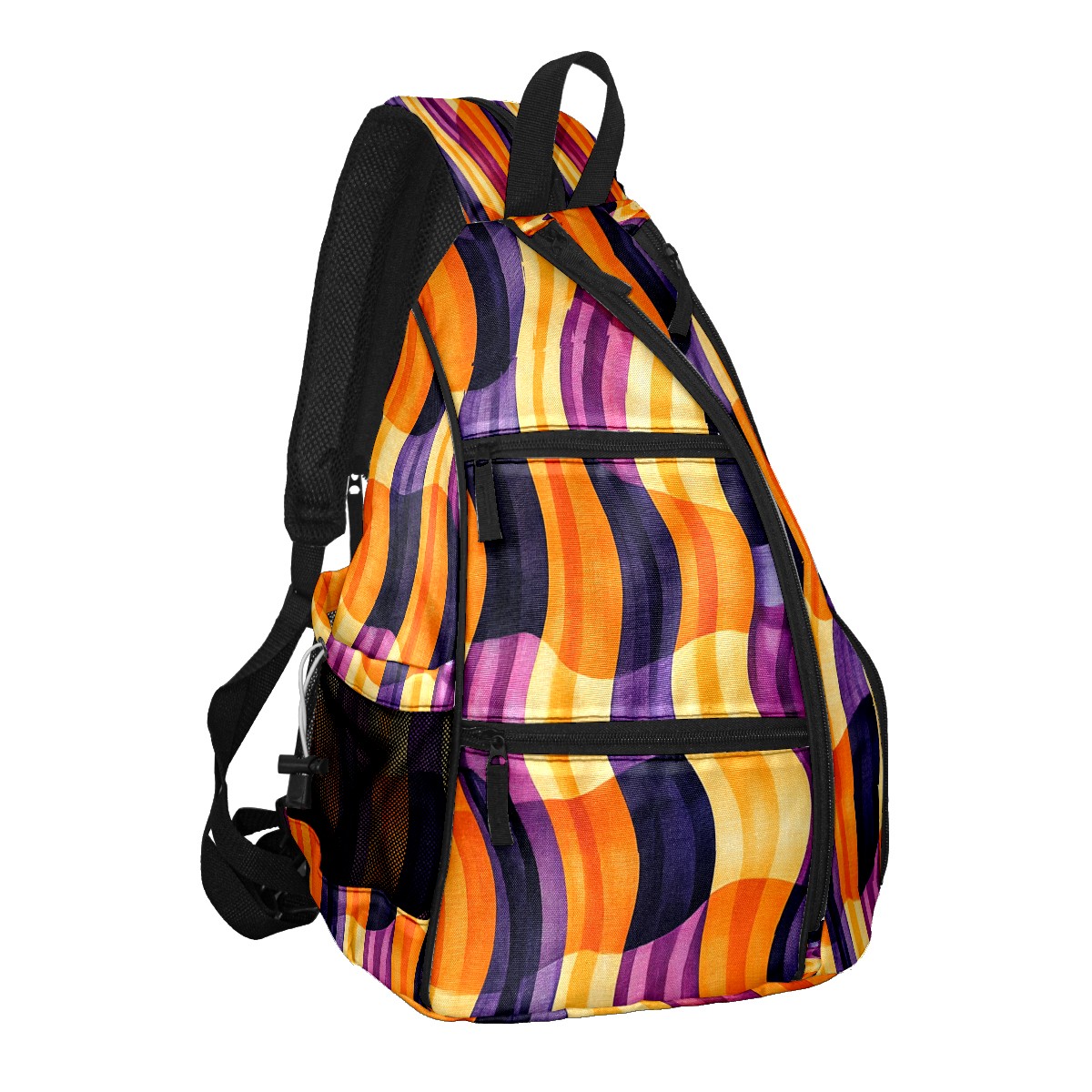 Pickleball Sling Bag for Women and Men - Backpack with Nylon Fabric/Woven Strap/Mesh Pocket/Fence Hook/Adjustable Bag Purple Swirling Pattern