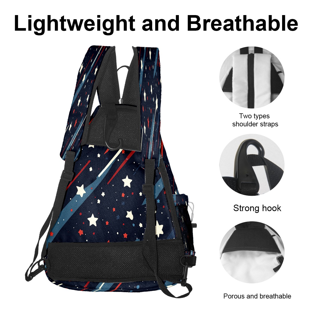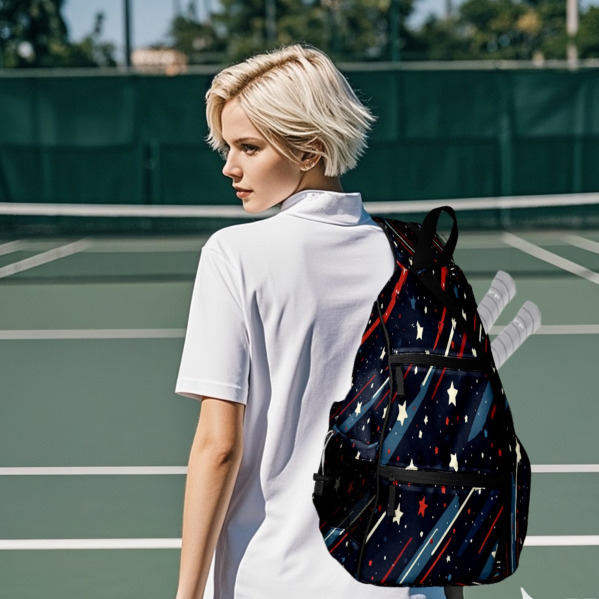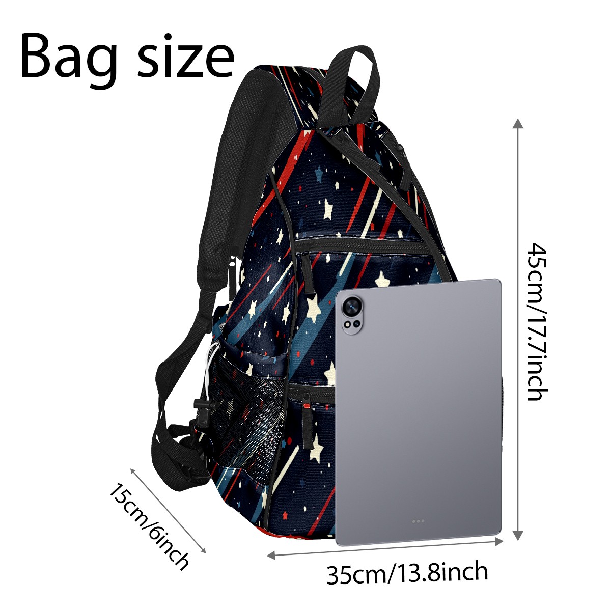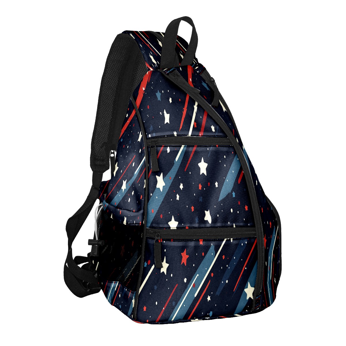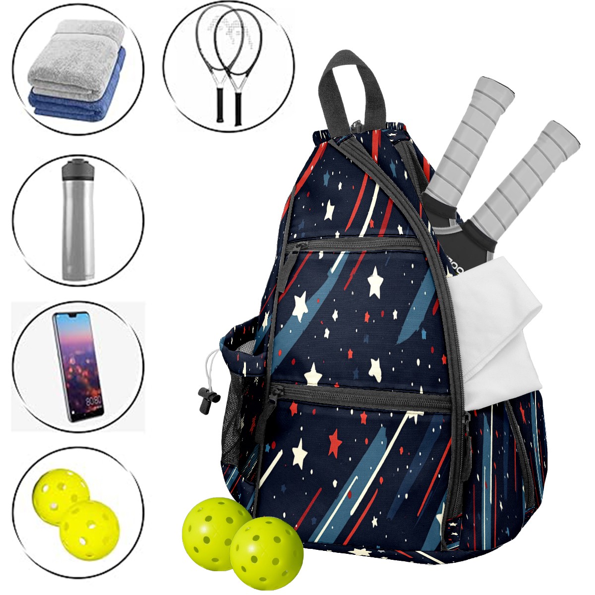 Pickleball Sling Bag for Women and Men - Backpack with Nylon Fabric/Woven Strap/Mesh Pocket/Fence Hook/Adjustable Bag Dark Blue Star Pattern