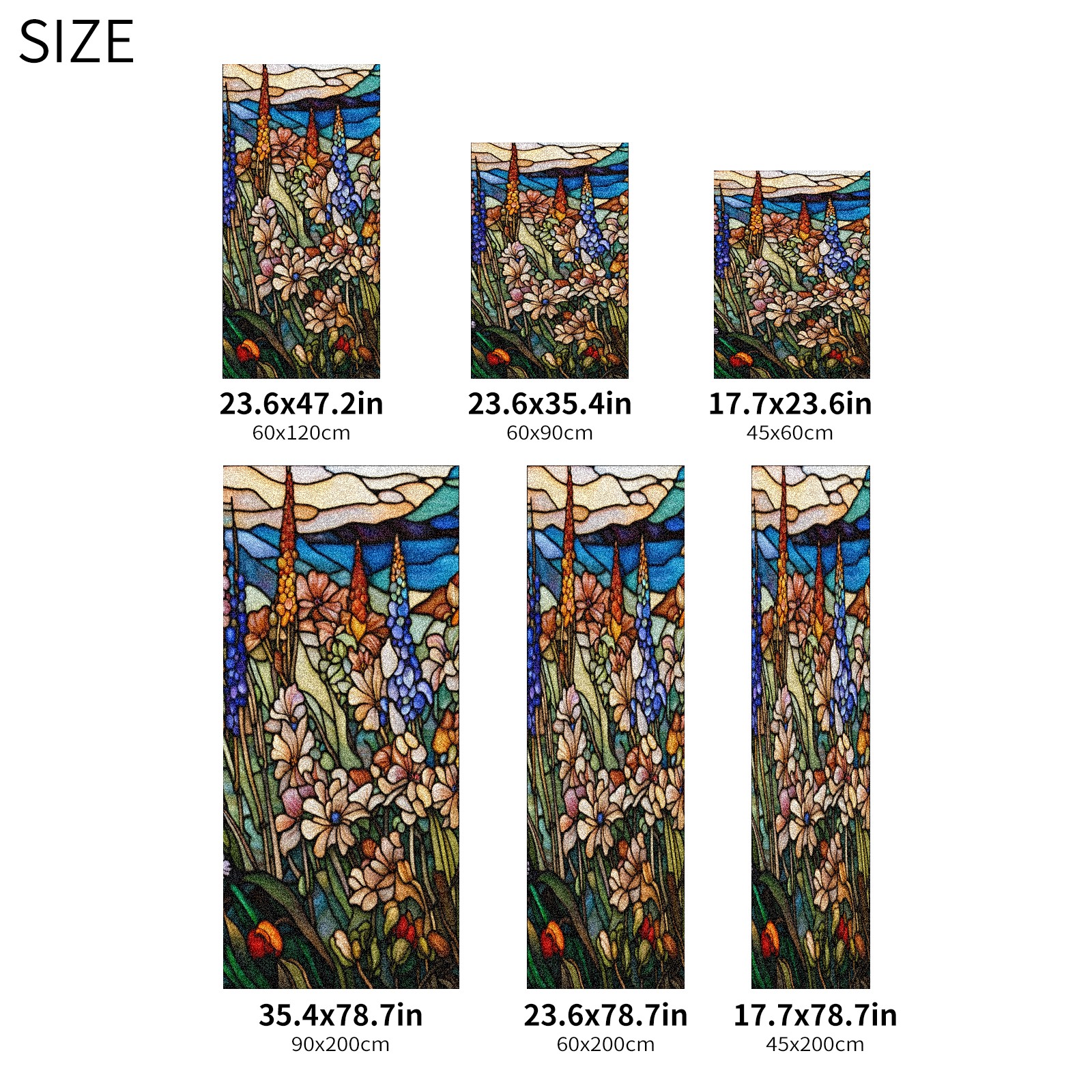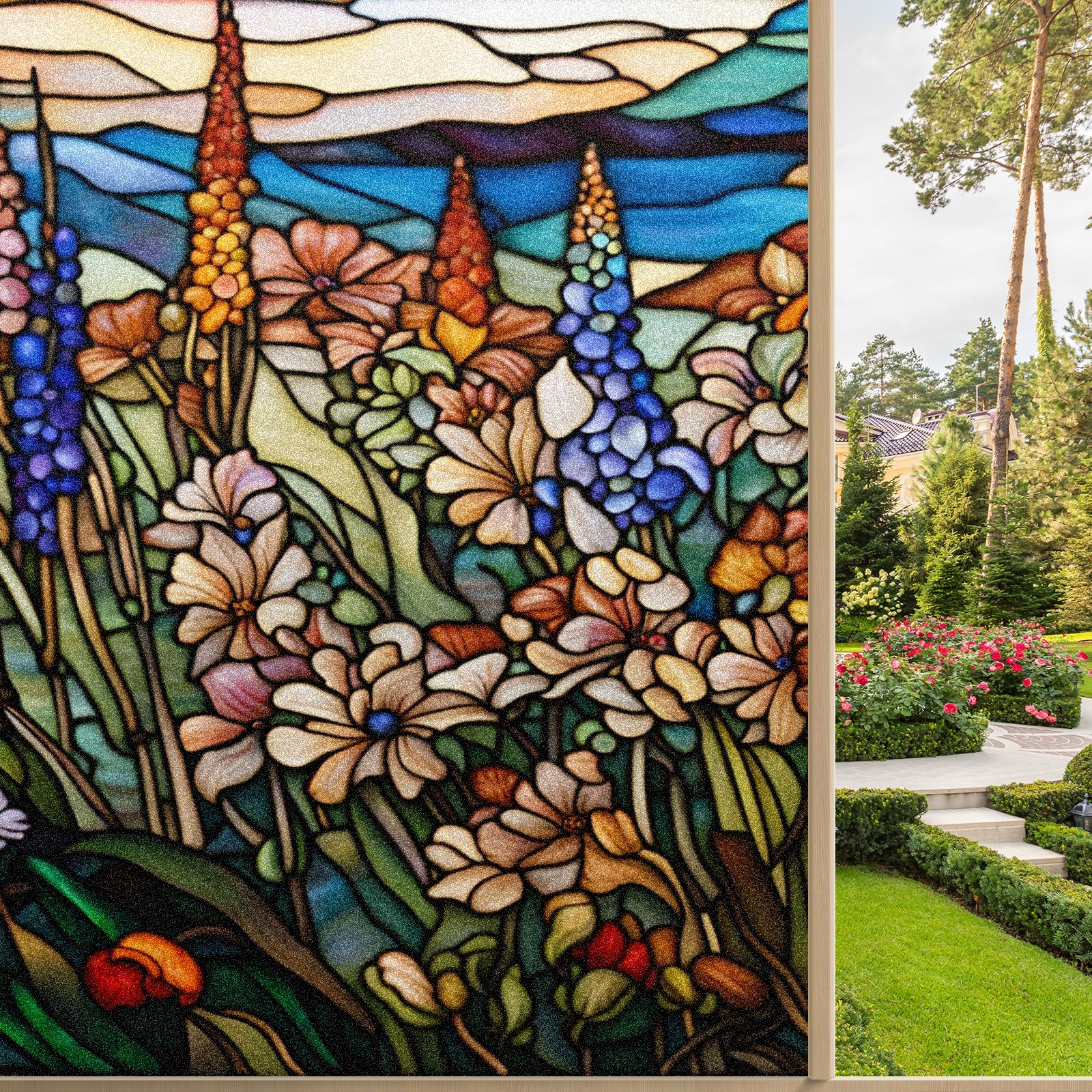 Window Privacy Film Frosted Stained Glass Film Decorative Static Cling for Bathroom Home Office Peel and Stick Window Film Colorful Wild Floral(17.7x23.6in)