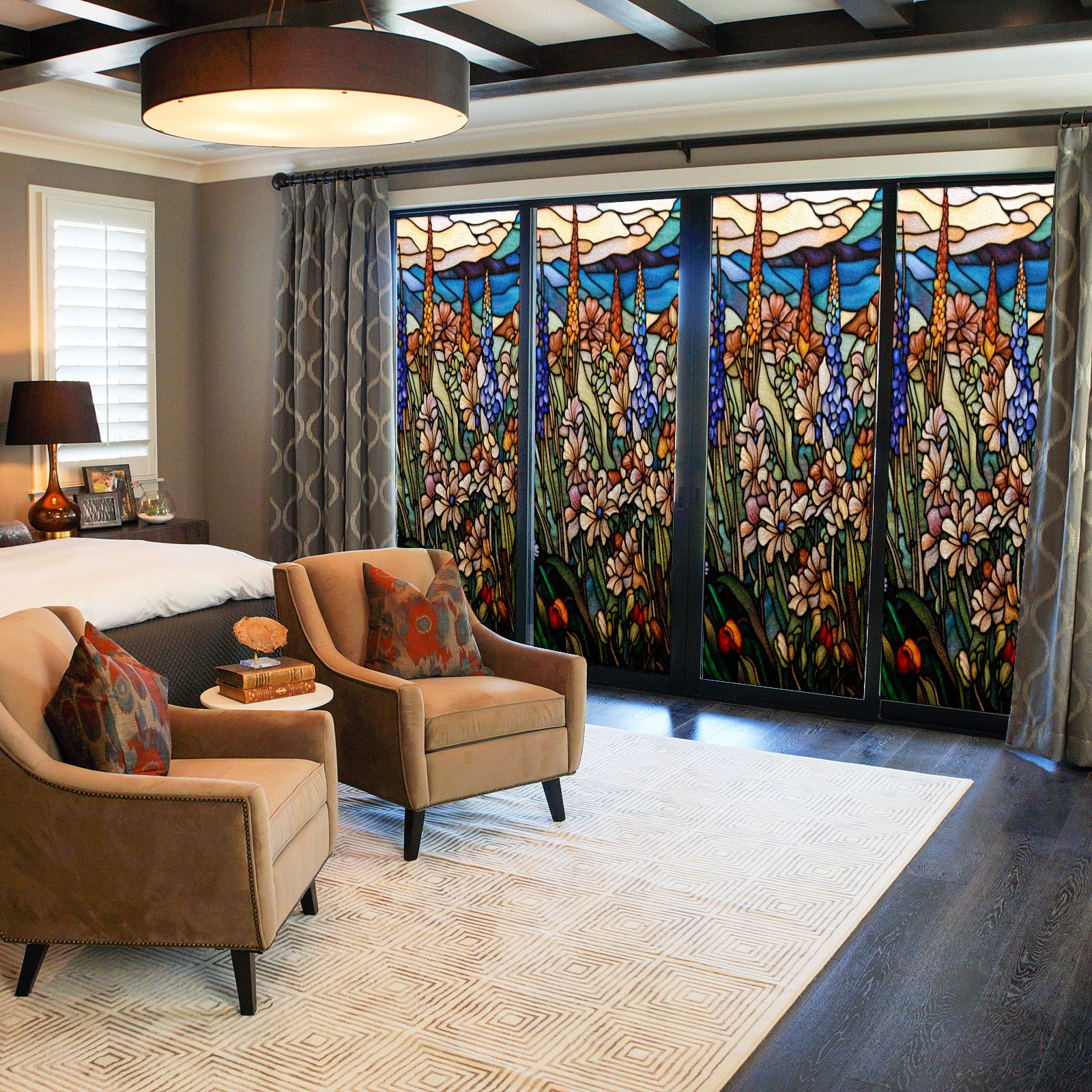 • <p><b>Privacy Protection with Aesthetic Design</b></p><p>The frosted privacy window film protection for bathrooms, bedrooms, offices, and storefronts. Its light-diffusing texture maintains natural daylight while blocking 95% of UV rays and external visibility. Our window glass films offers excellent sun blocking capabilities, effectively reducing heat and glare, give privacy while still allowing natural soft light in.This window glass films with graphic printings, bright and vivid color, long term non fading</p><p><b>Effortless Installation &amp; Versatile Application</b></p><p>This frosted window film works perfectly for bathroom glass partitions, bedroom bay windows, kitchen sliding doors, office dividers, and storefront windows. With a 3-step installation process (clean, spray, smooth), it takes just 10 minutes to transform any glass surface. The film is trimmable for custom sizes and shapes, compatible with curved or unique glass designs.&nbsp;</p><p><b>We have various sizes and patterns, and there is always one that meets your preferences. Welcome to purchase Counullo frosted glass sticker.</b></p>
