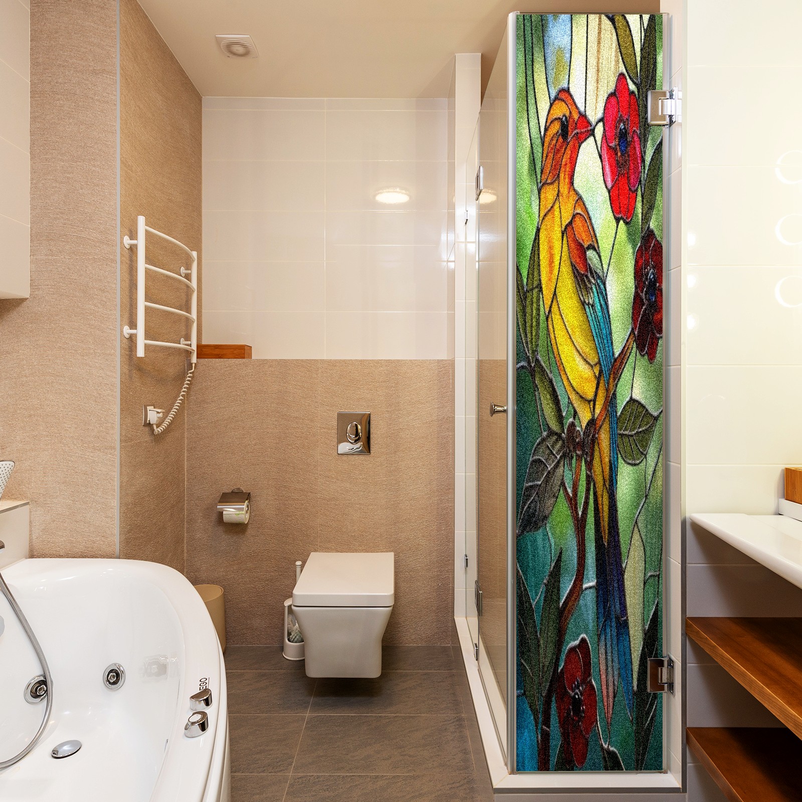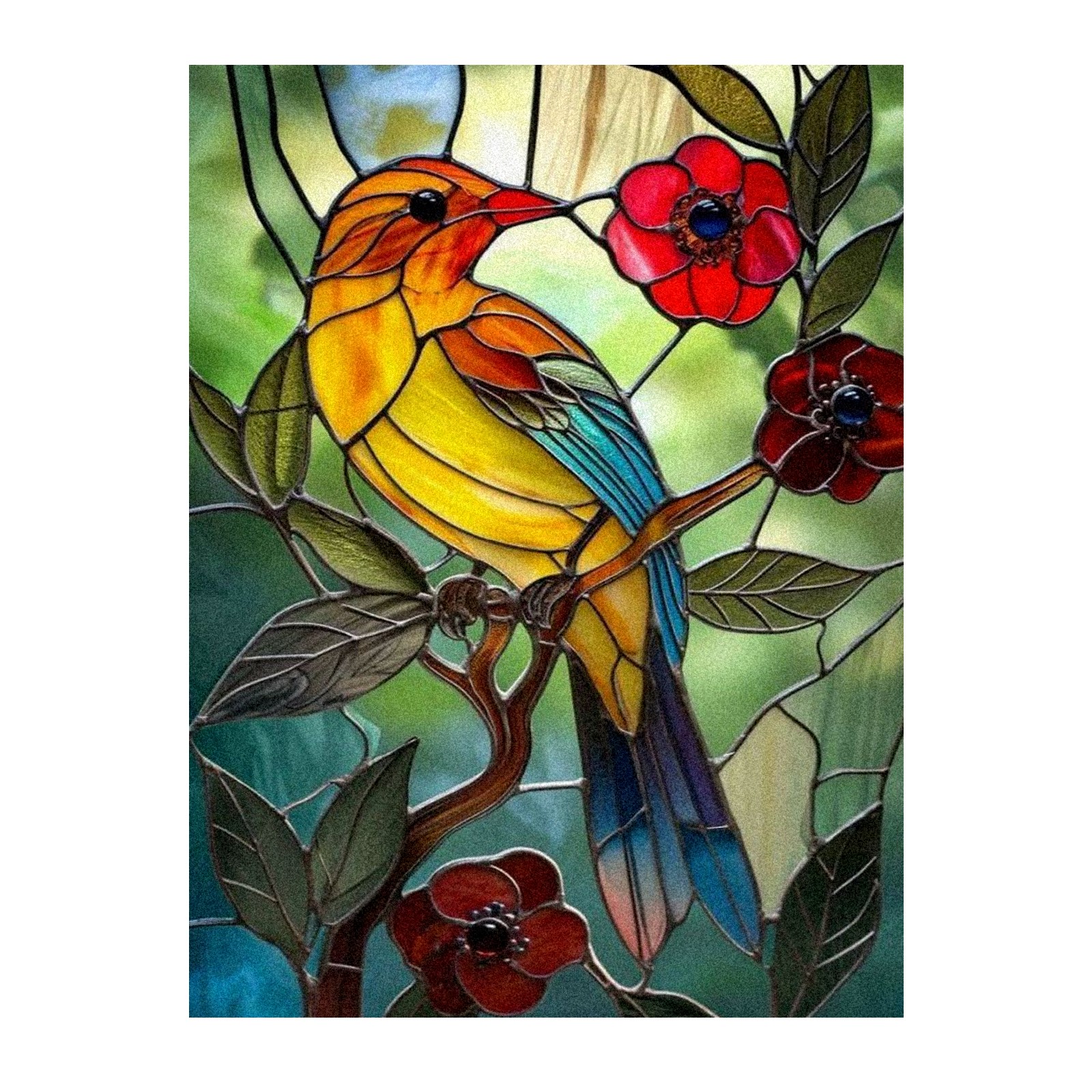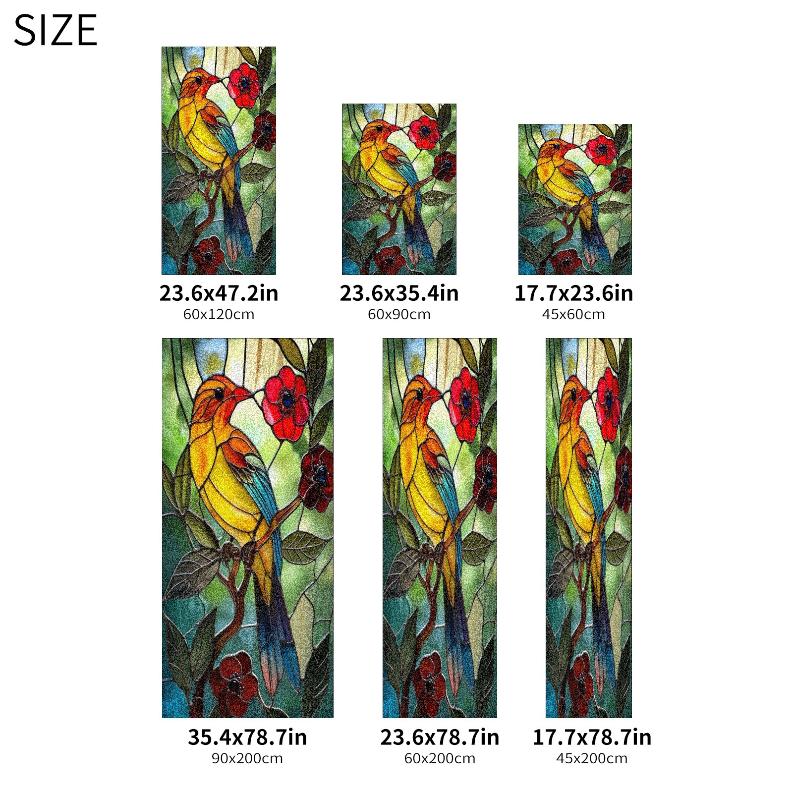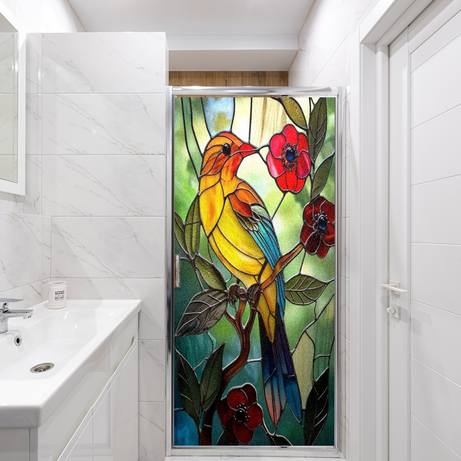 Window Privacy Film Frosted Stained Glass Film Decorative Static Cling for Bathroom Home Office Peel and Stick Window Film Colorful Bird Red Flowers(17.7x23.6in)