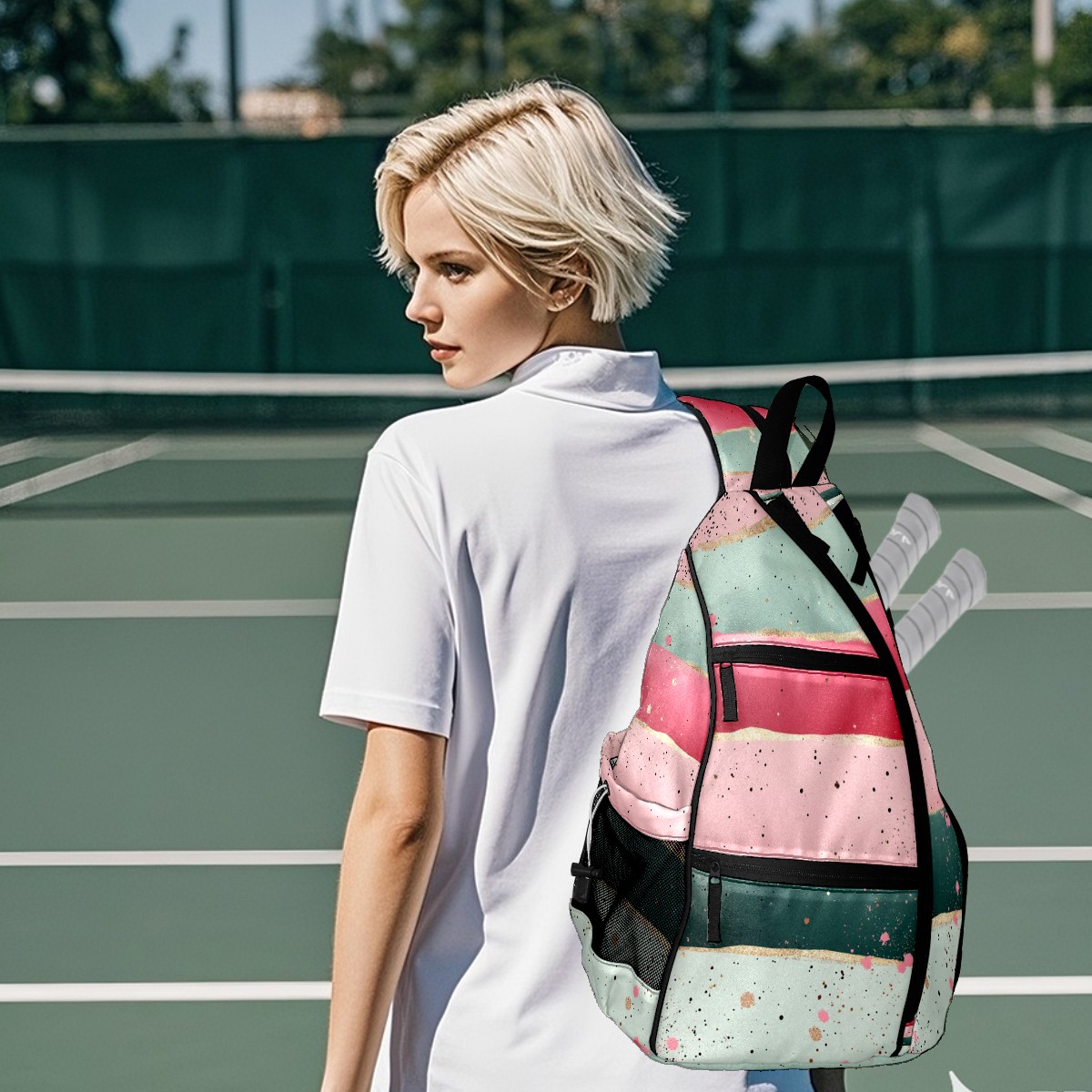 <p>Pickleball Bag | From “Equipment Chaos” to “One Bag to Rule Them All” — A Revolution on the Court</p> <p>The Origin: Every time we bent down to pick up scattered rackets, balls, and water bottles, we silently vowed — we had to create a pickleball bag that could “cure laziness”!</p> <p>✨ 5 Core Features, Designed for Pickleball Players</p> <p>✅ Durable Construction: Wear-resistant nylon + reinforced woven straps + breathable mesh pockets withstand the “brutal tests” of dropping rackets and dragging on the ground; the mesh pockets also allow wet towels to “breathe”;</p> <p>✅ Spacious storage: 15×35×45cm golden dimensions, easily accommodating 2 racquets + 10 balls + water bottle + spare clothes, saying goodbye to the awkwardness of “left hand holding the racquet, right hand chasing the ball”;</p> <p>✅ Cloud-like carrying experience: Padded back panel + air mesh shoulder straps, feel like you're being carried by a cloud while swinging your racket, no sweating even after prolonged use, no soreness after playing, keep your energy for what you love;</p> <p>✅ Transformable magic: Shoulder straps hide a “zipper mechanism,” unzip to instantly transform into a daily crossbody bag — take it straight to the mall after work, seamless transition from commuting to playing;</p> <p>✅ Bag Recognition Tool: Exclusive contrasting patterns act like a “signal flare” on the court, making your bag stand out in a crowd. No more worries about grabbing the wrong one!</p> <p>Starting with solving your own problems, we hope this bag will accompany you in swinging your racket with abandon, leaving all your energy for what you love!</p>