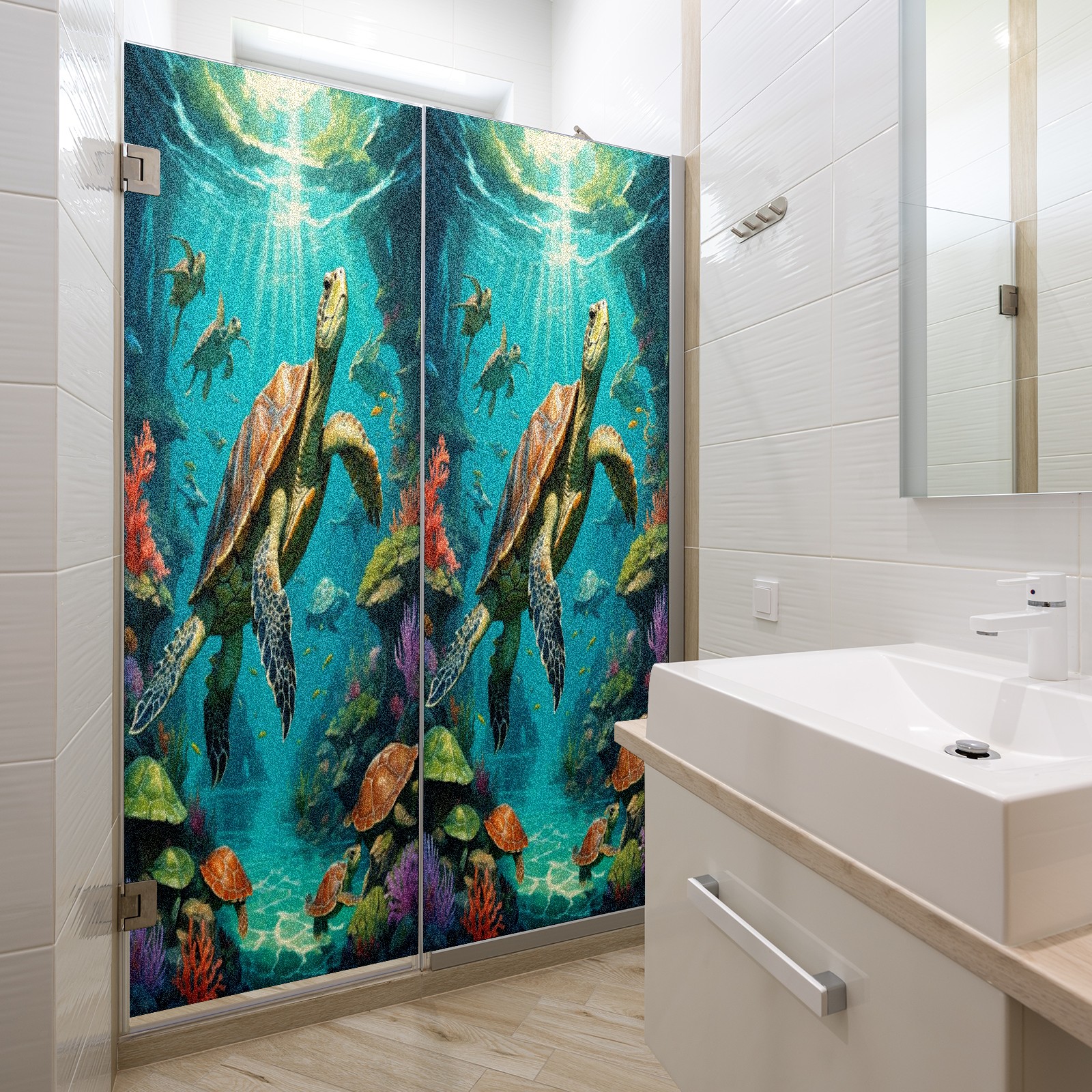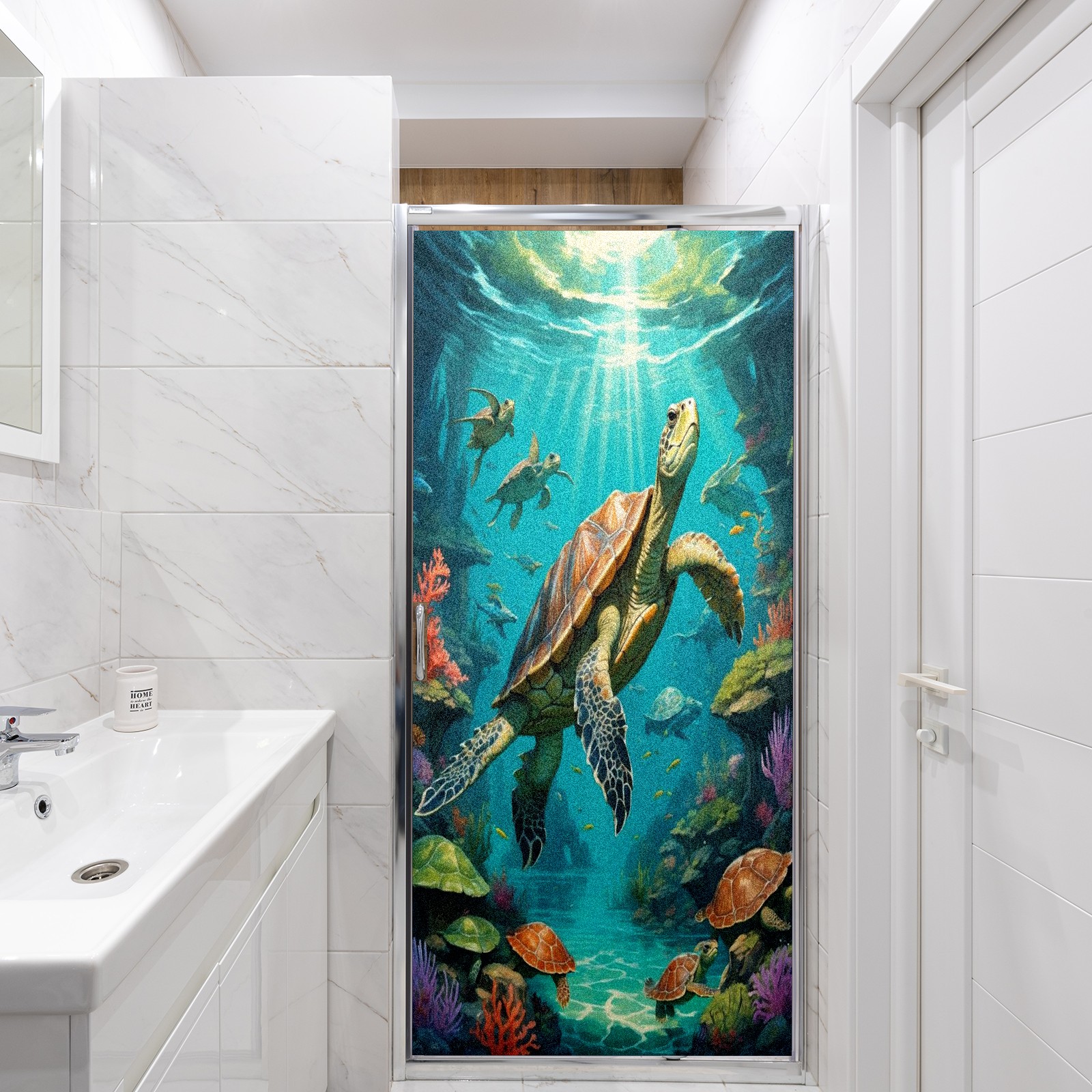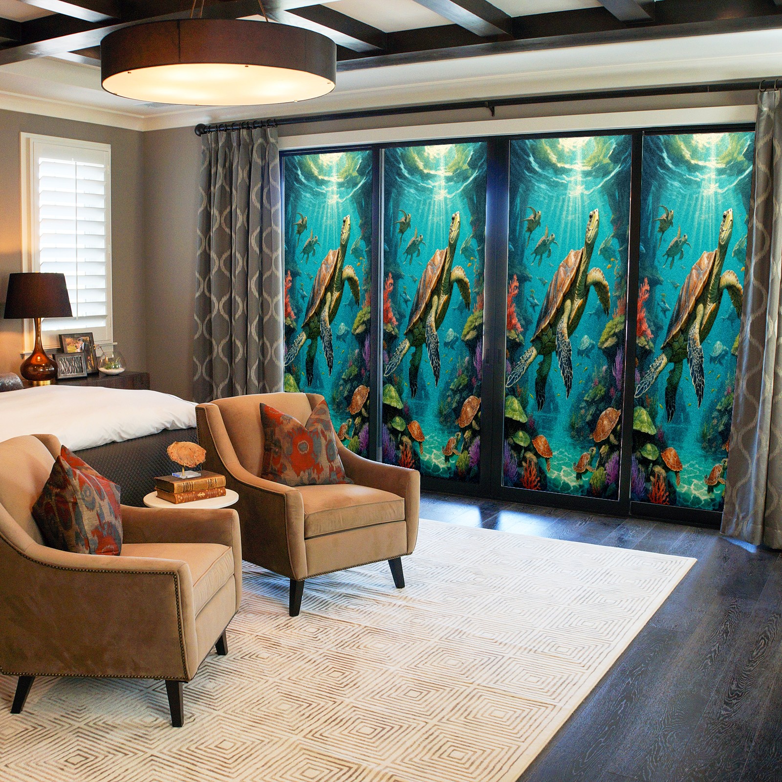 Window Privacy Film Frosted Stained Glass Film Decorative Static Cling for Bathroom Home Office Peel and Stick Window Film Brown Sea Turtles(17.7x23.6in)
