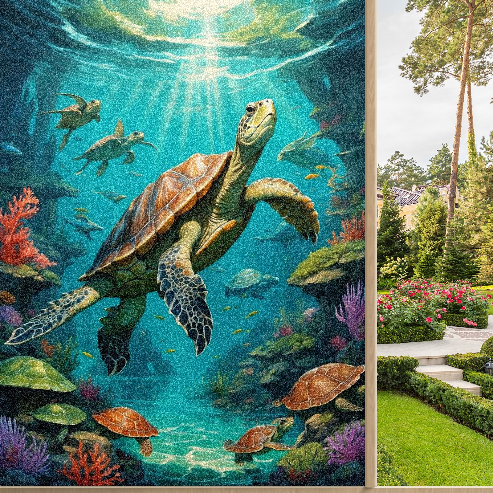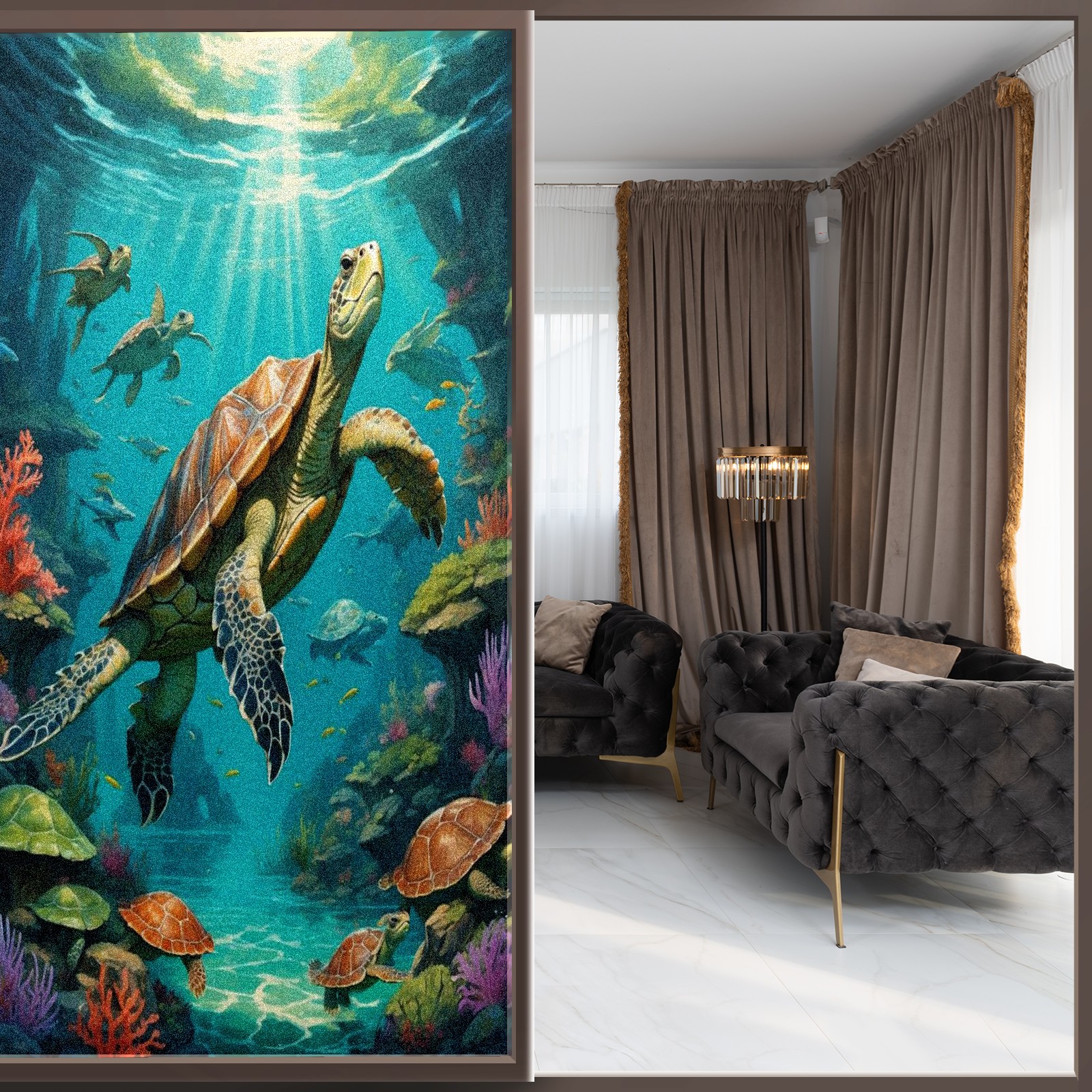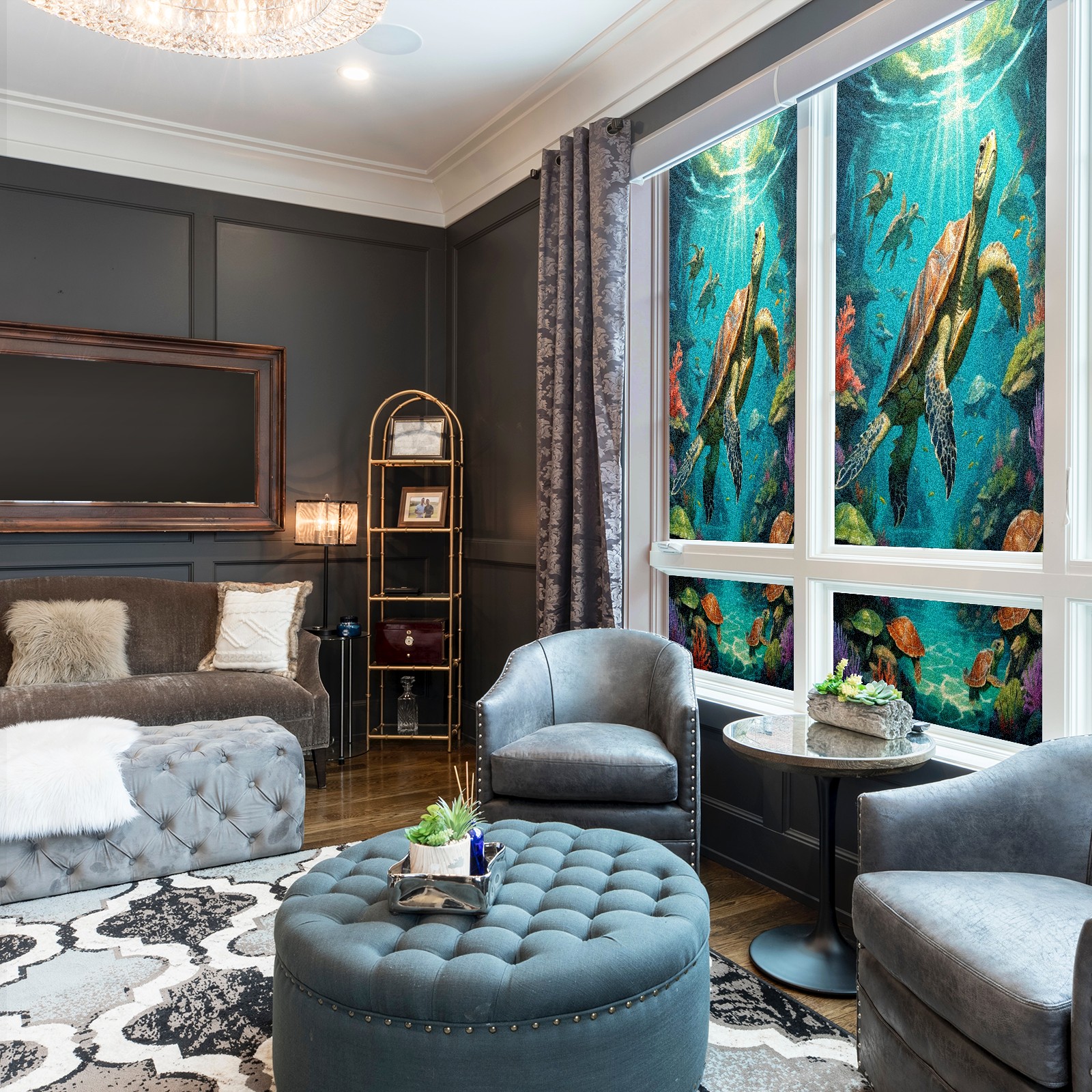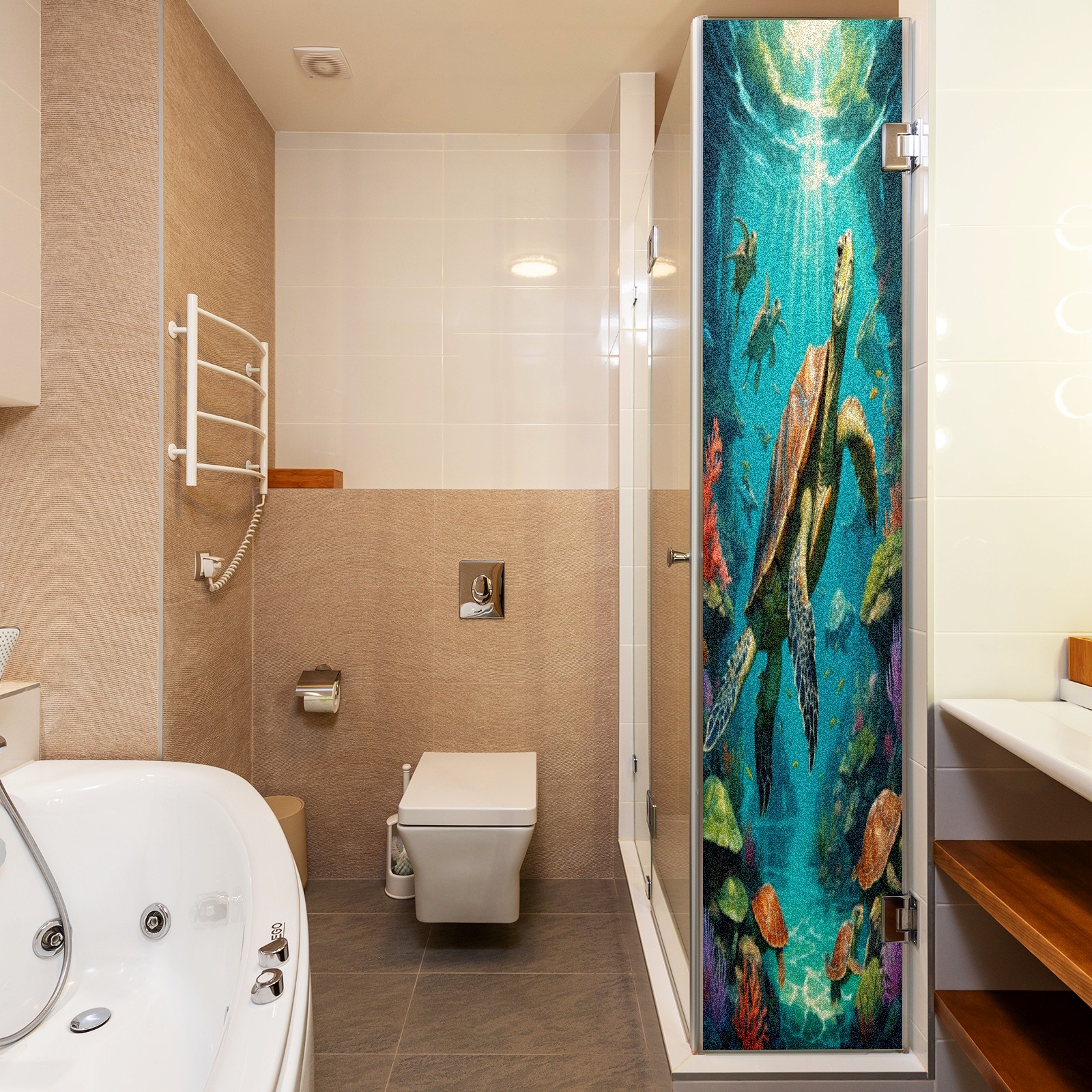 Window Privacy Film Frosted Stained Glass Film Decorative Static Cling for Bathroom Home Office Peel and Stick Window Film Brown Sea Turtles(17.7x23.6in)