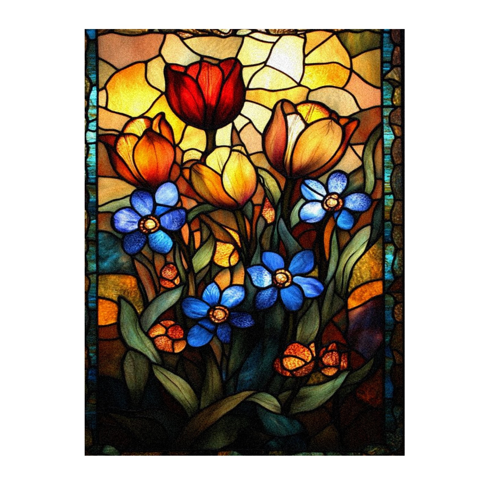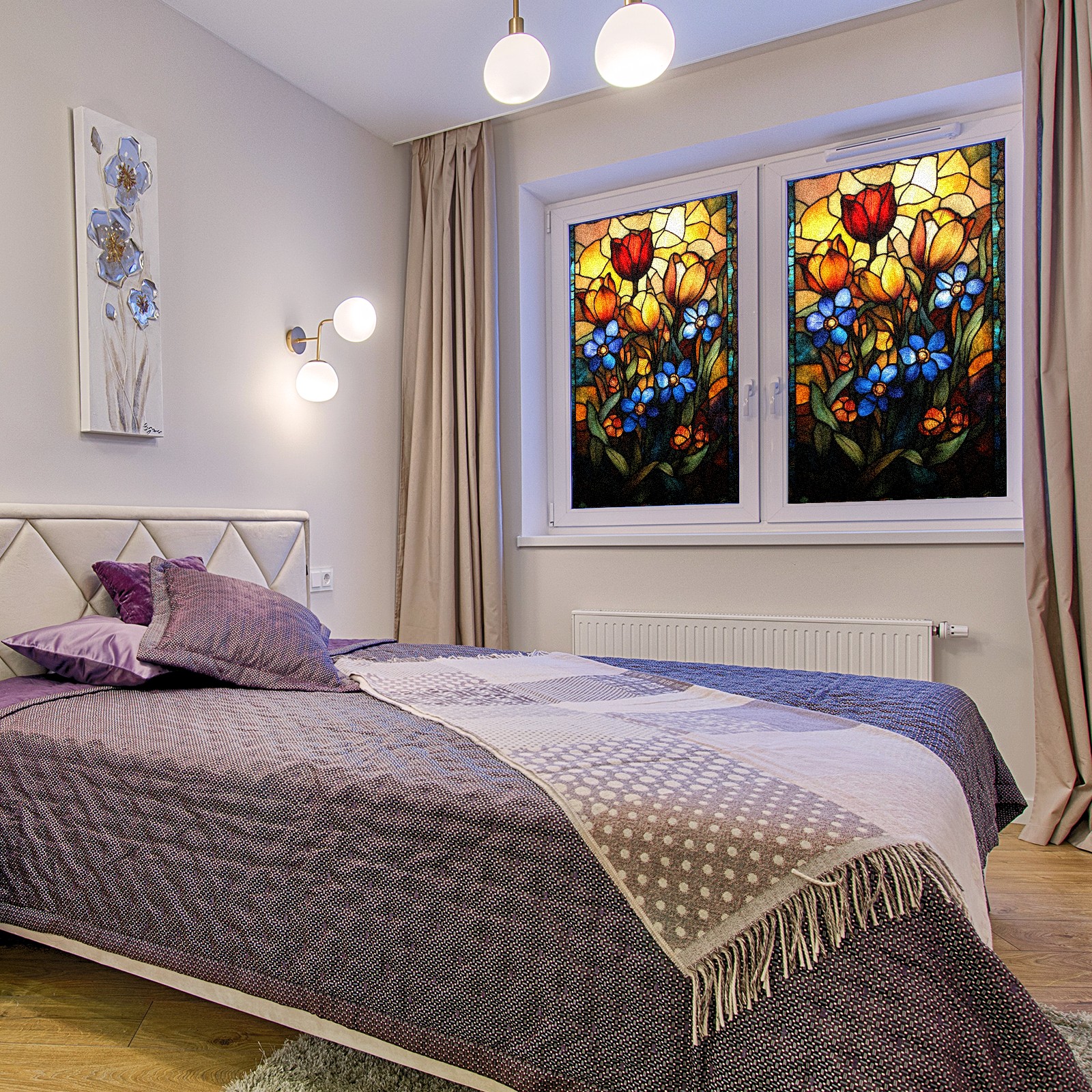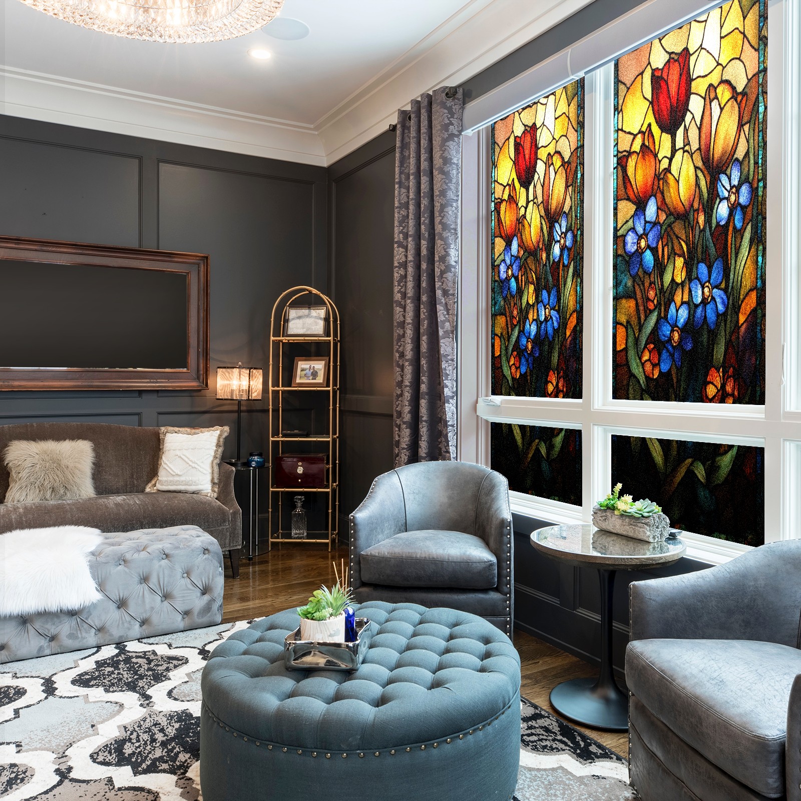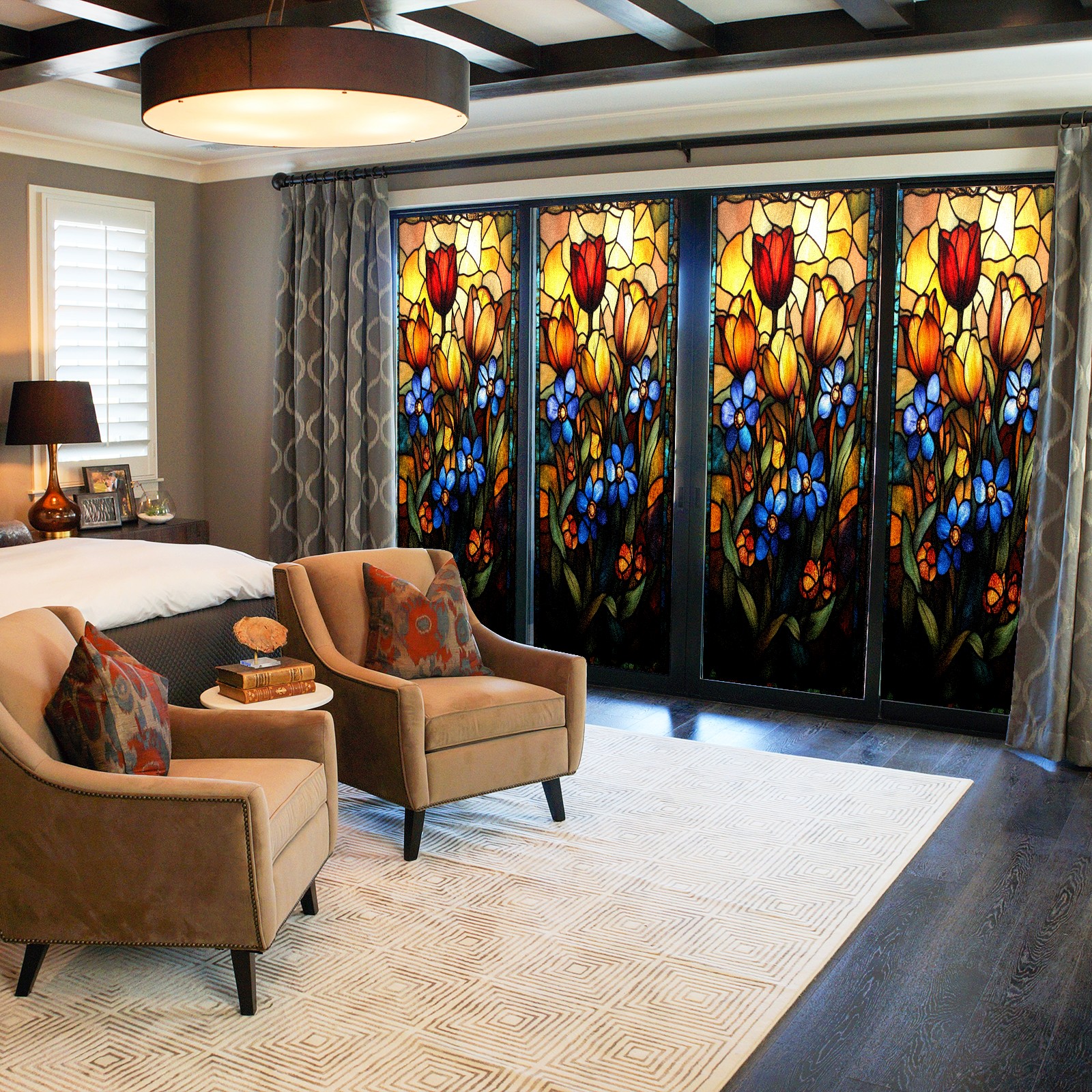 Window Privacy Film Frosted Stained Glass Film Decorative Static Cling for Bathroom Home Office Peel and Stick Window Film Yellow Tulips(17.7x23.6in)