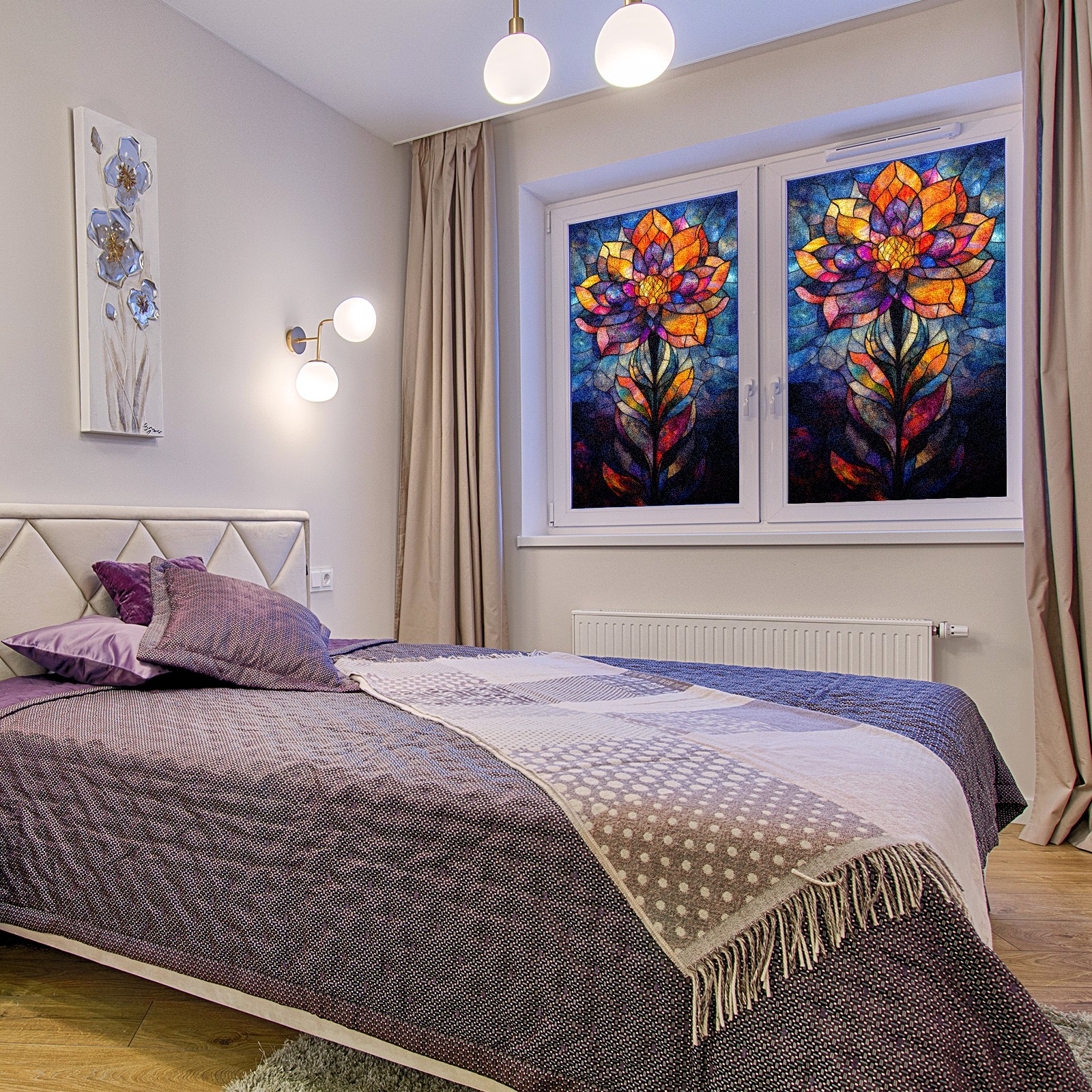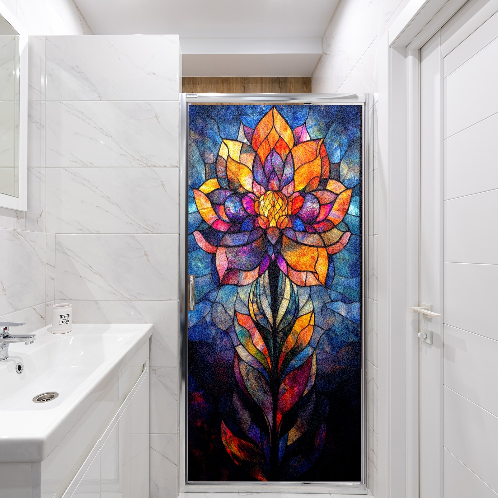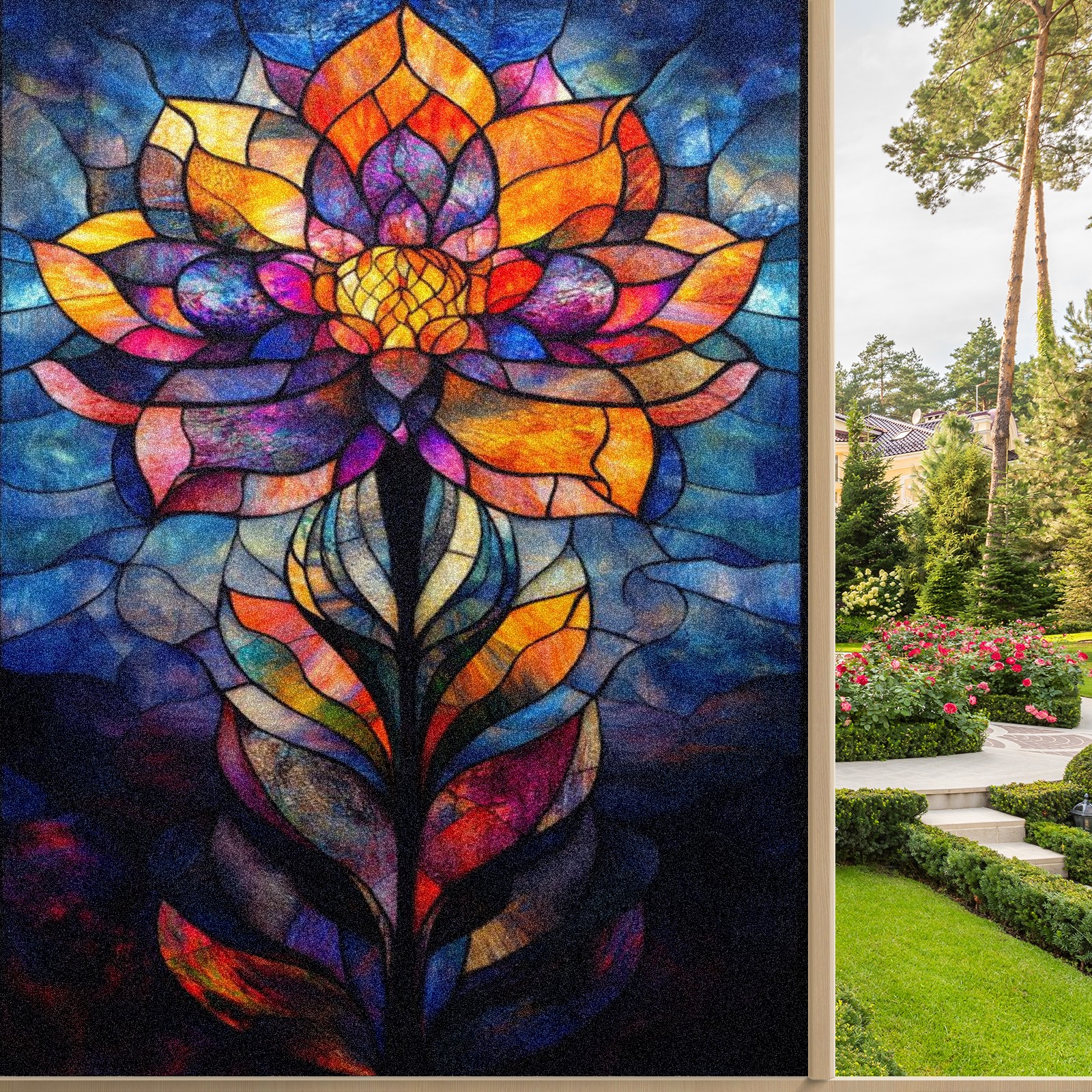 Window Privacy Film Frosted Stained Glass Film Decorative Static Cling for Bathroom Home Office Peel and Stick Window Film Stained Glass Flowers(17.7x23.6in)