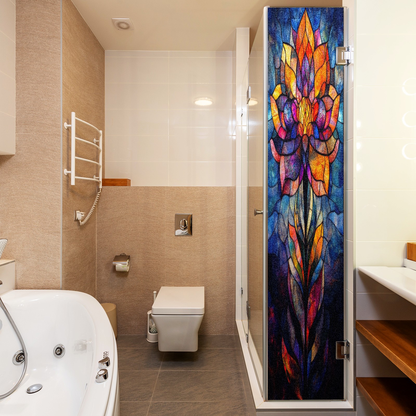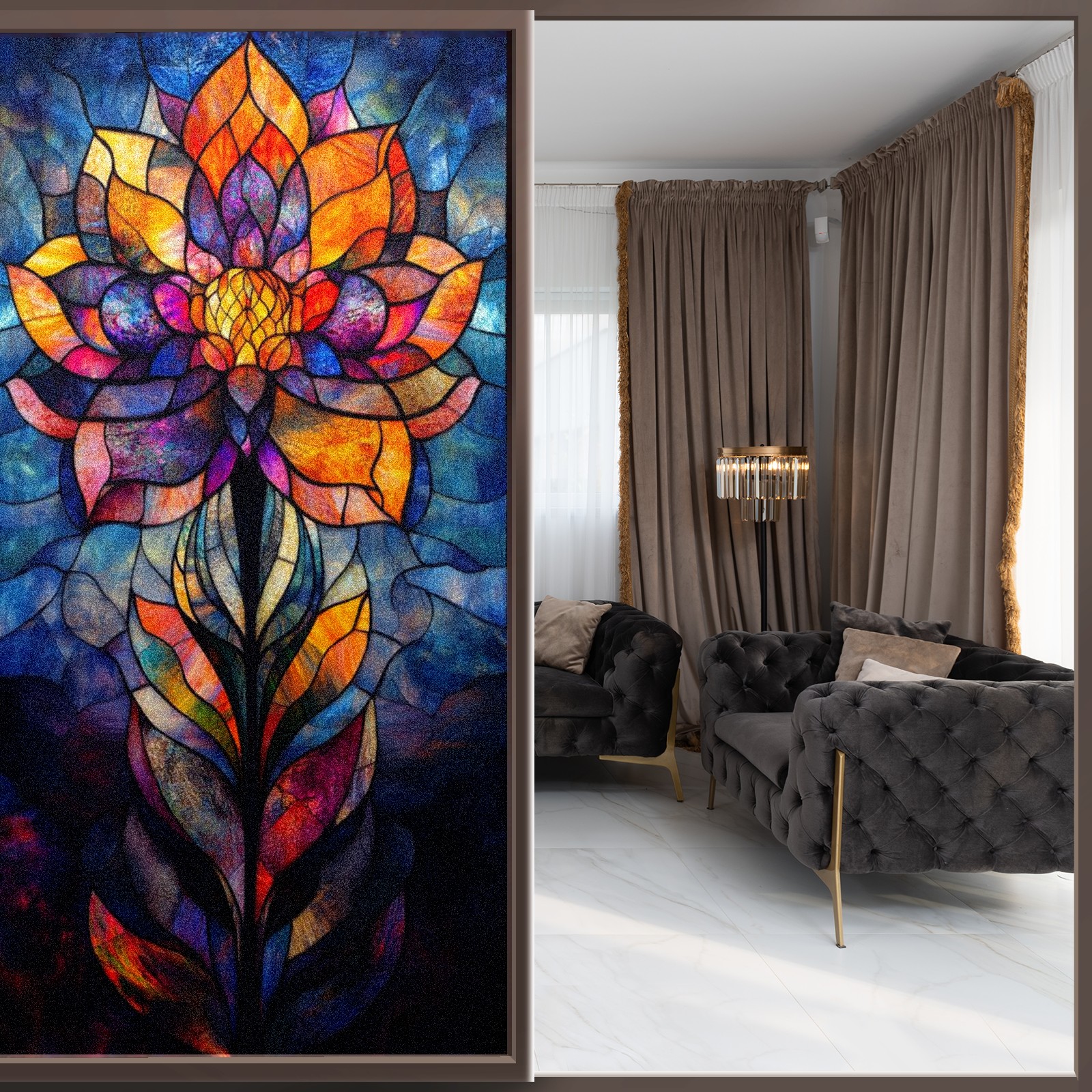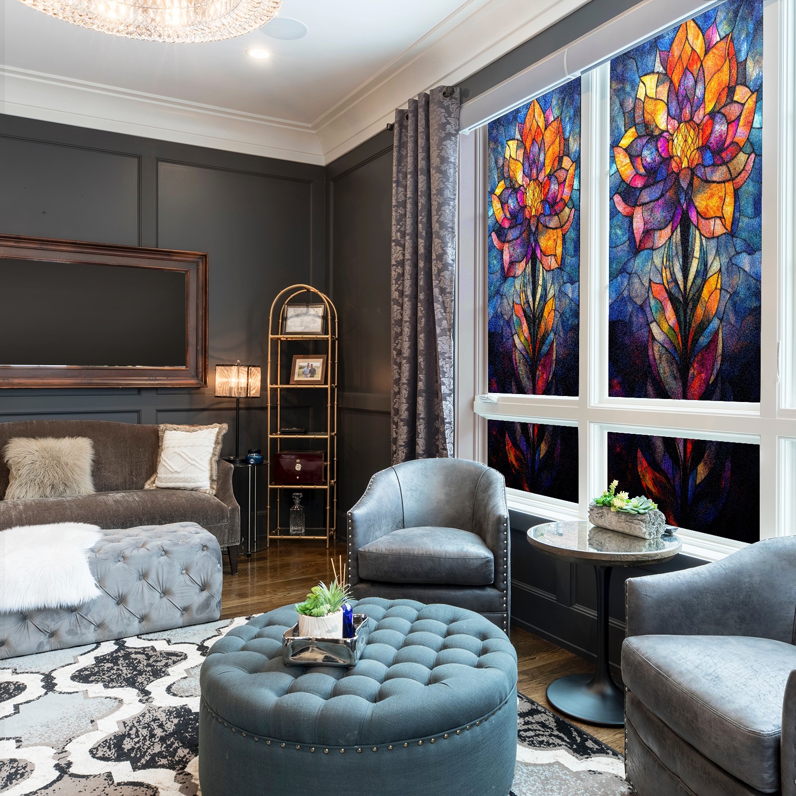 Window Privacy Film Frosted Stained Glass Film Decorative Static Cling for Bathroom Home Office Peel and Stick Window Film Stained Glass Flowers(17.7x23.6in)