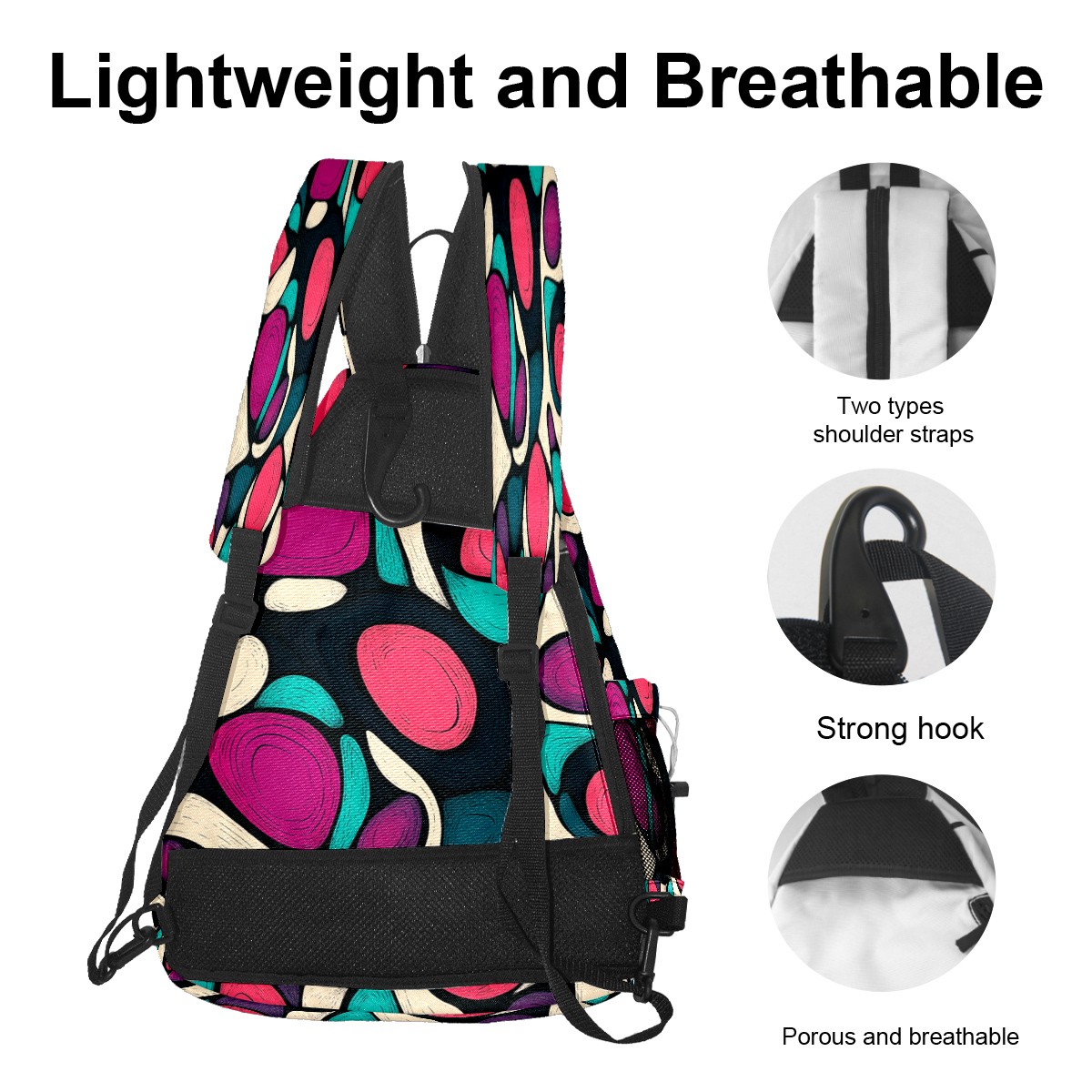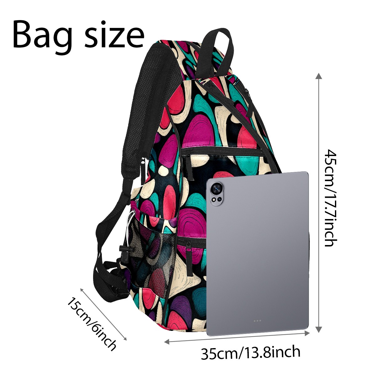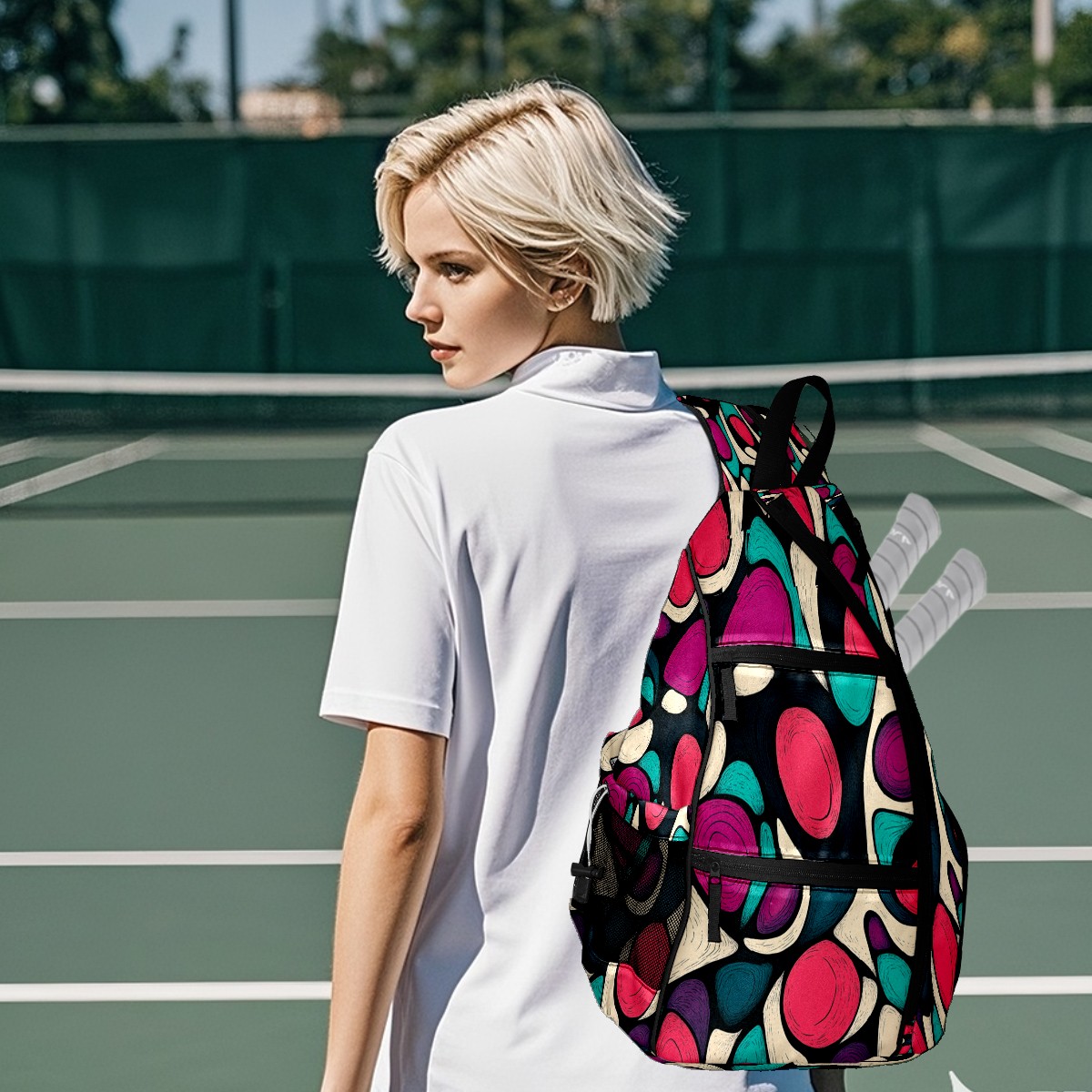 Pickleball Sling Bag for Women and Men - Backpack with Nylon Fabric/Woven Strap/Mesh Pocket/Fence Hook/Adjustable Bag Purple Circle Pattern