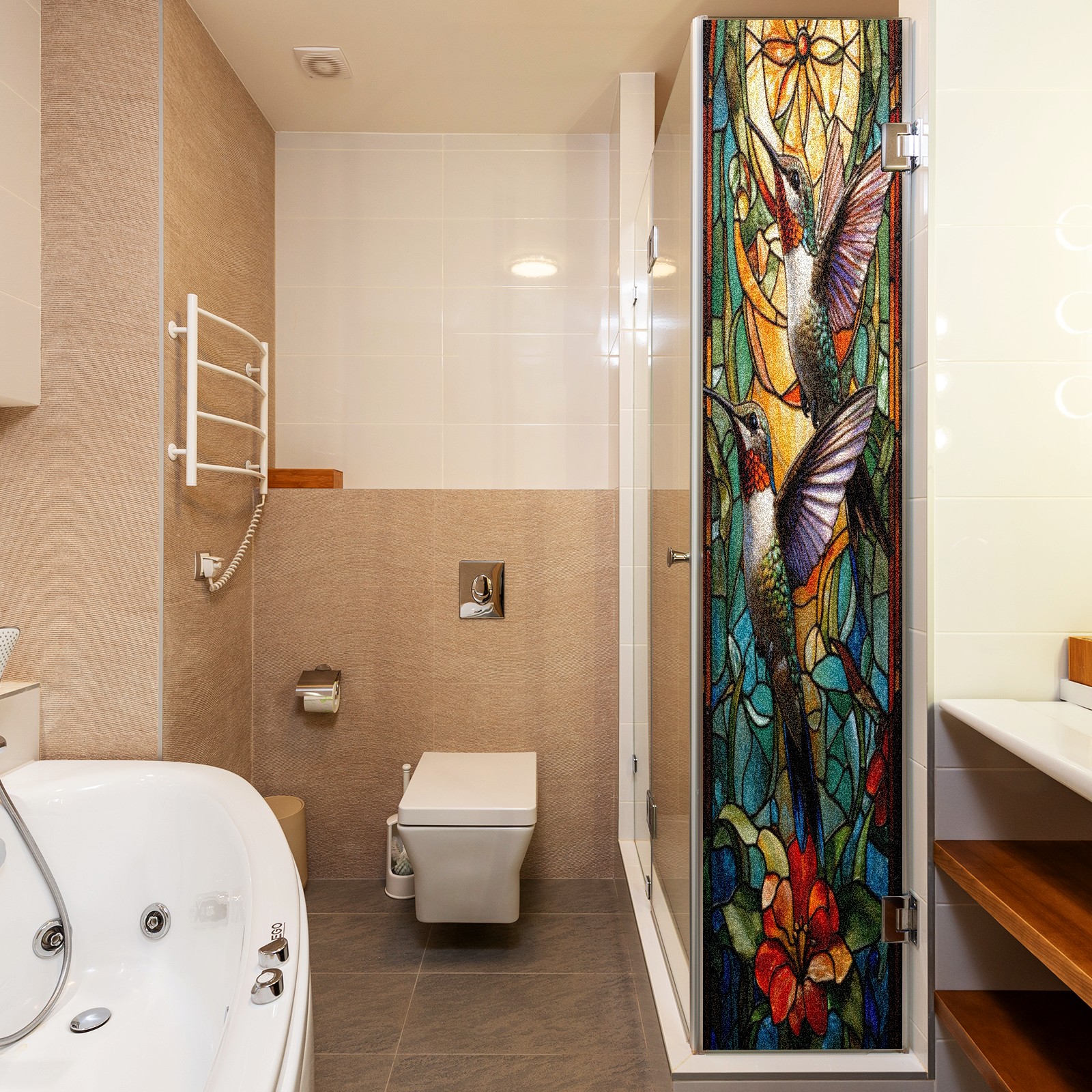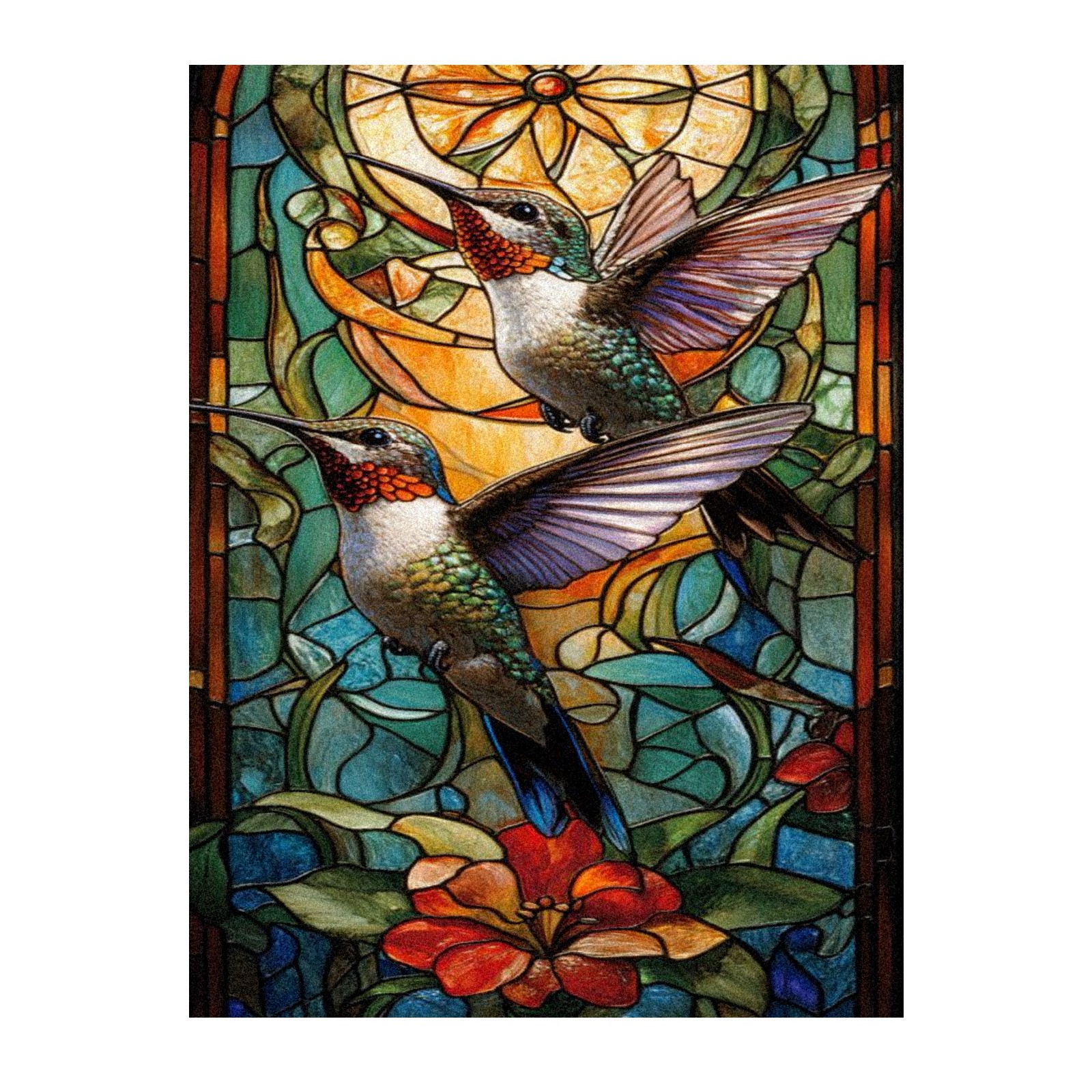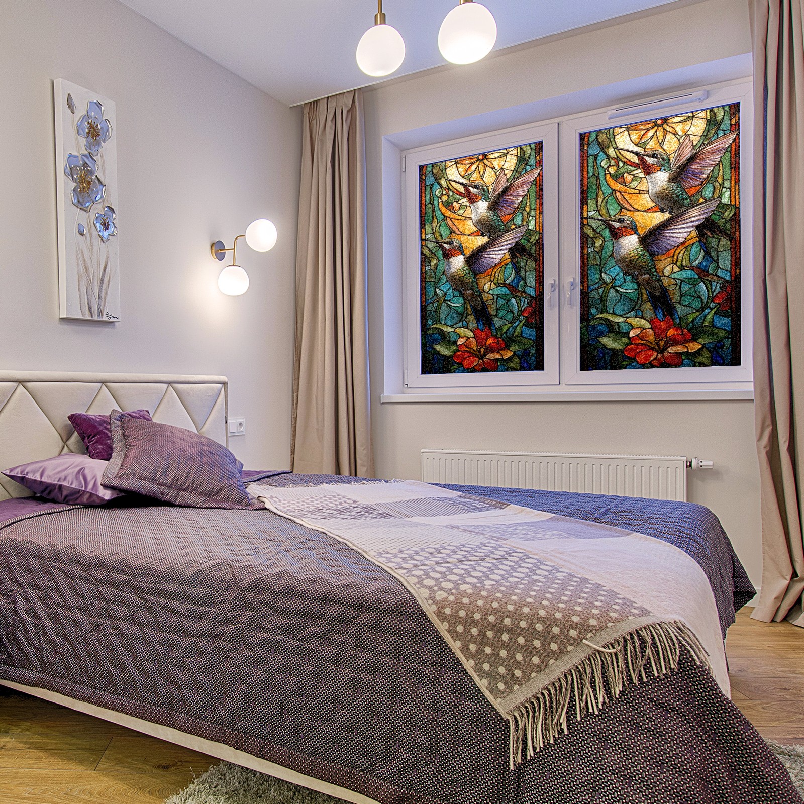 Window Privacy Film Frosted Stained Glass Film Decorative Static Cling for Bathroom Home Office Peel and Stick Window Film Double Hummingbird(17.7x23.6in)
