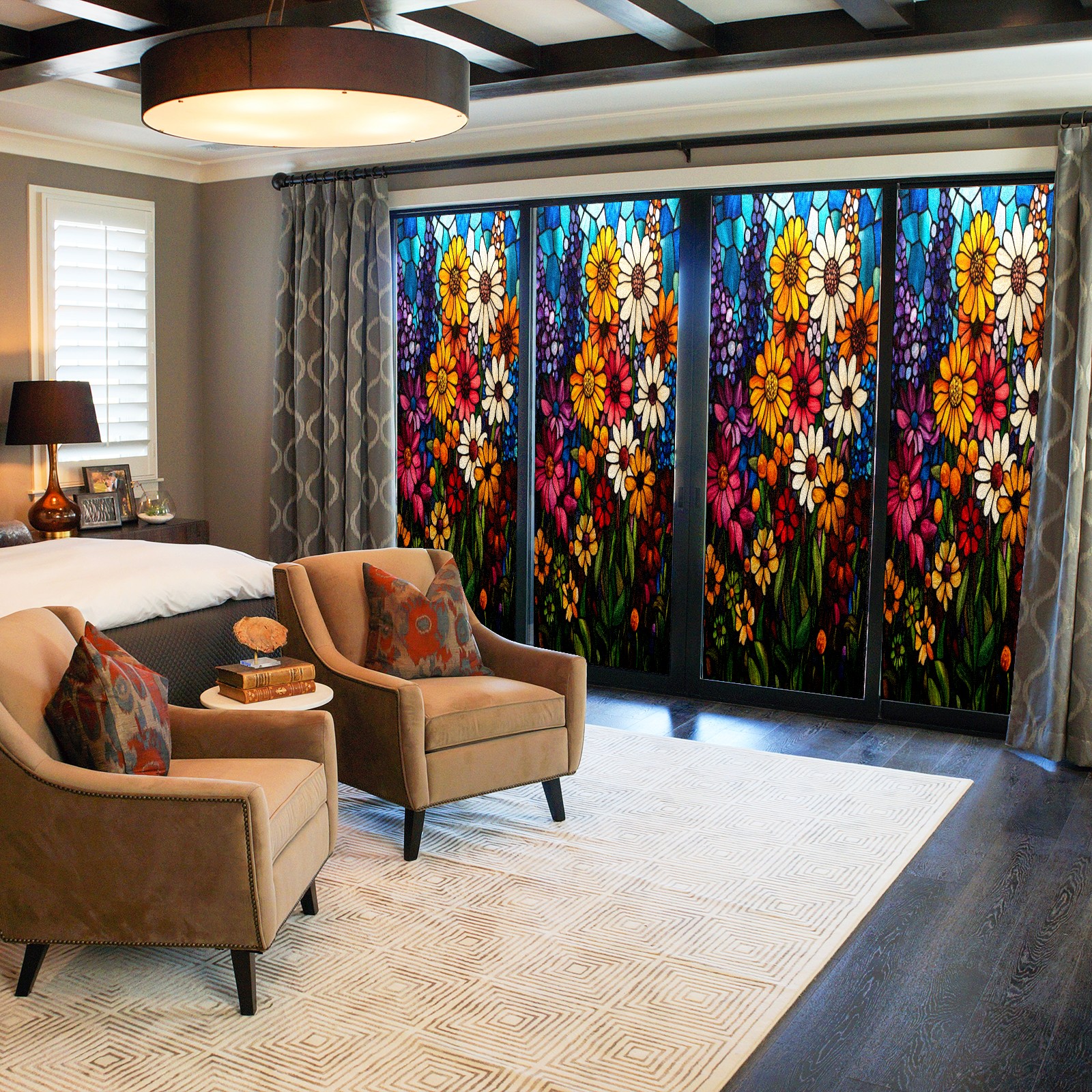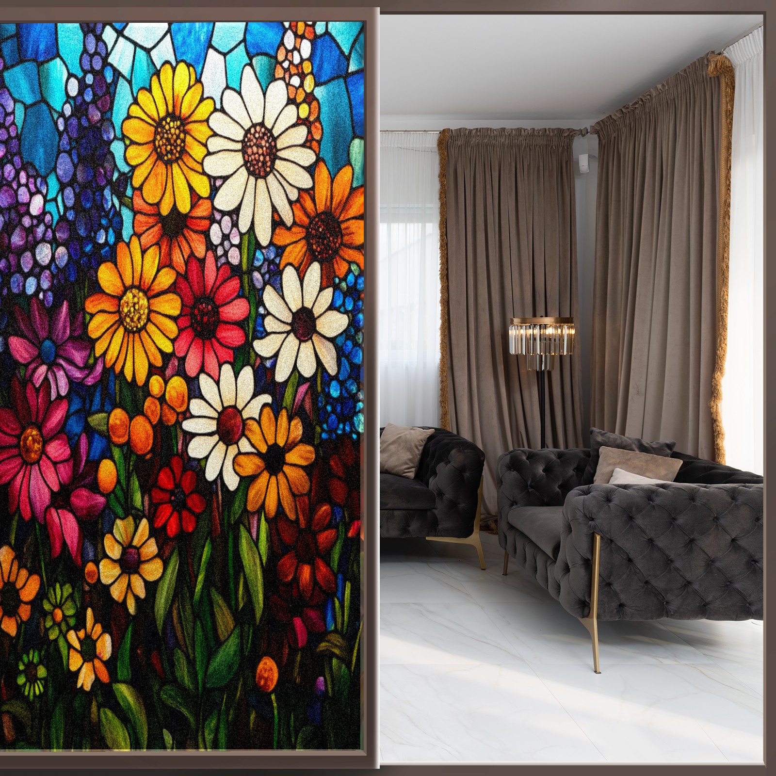 • <p><b>Privacy Protection with Aesthetic Design</b></p><p>The frosted privacy window film protection for bathrooms, bedrooms, offices, and storefronts. Its light-diffusing texture maintains natural daylight while blocking 95% of UV rays and external visibility. Our window glass films offers excellent sun blocking capabilities, effectively reducing heat and glare, give privacy while still allowing natural soft light in.This window glass films with graphic printings, bright and vivid color, long term non fading</p><p><b>Effortless Installation &amp; Versatile Application</b></p><p>This frosted window film works perfectly for bathroom glass partitions, bedroom bay windows, kitchen sliding doors, office dividers, and storefront windows. With a 3-step installation process (clean, spray, smooth), it takes just 10 minutes to transform any glass surface. The film is trimmable for custom sizes and shapes, compatible with curved or unique glass designs.&nbsp;</p><p><b>We have various sizes and patterns, and there is always one that meets your preferences. Welcome to purchase Counullo frosted glass sticker.</b></p>