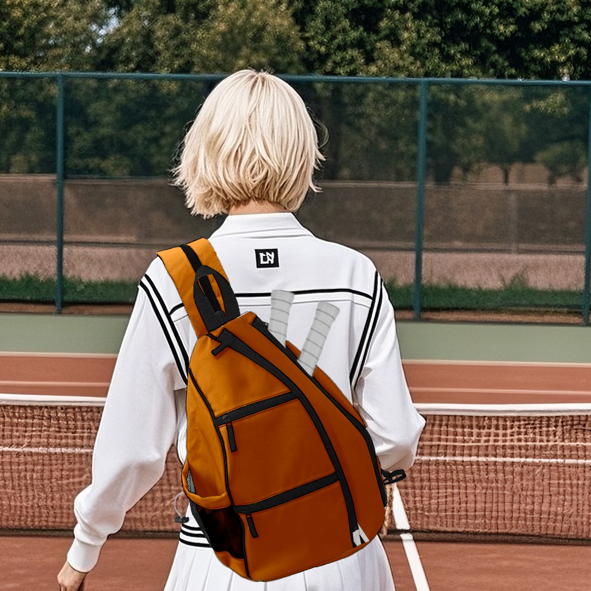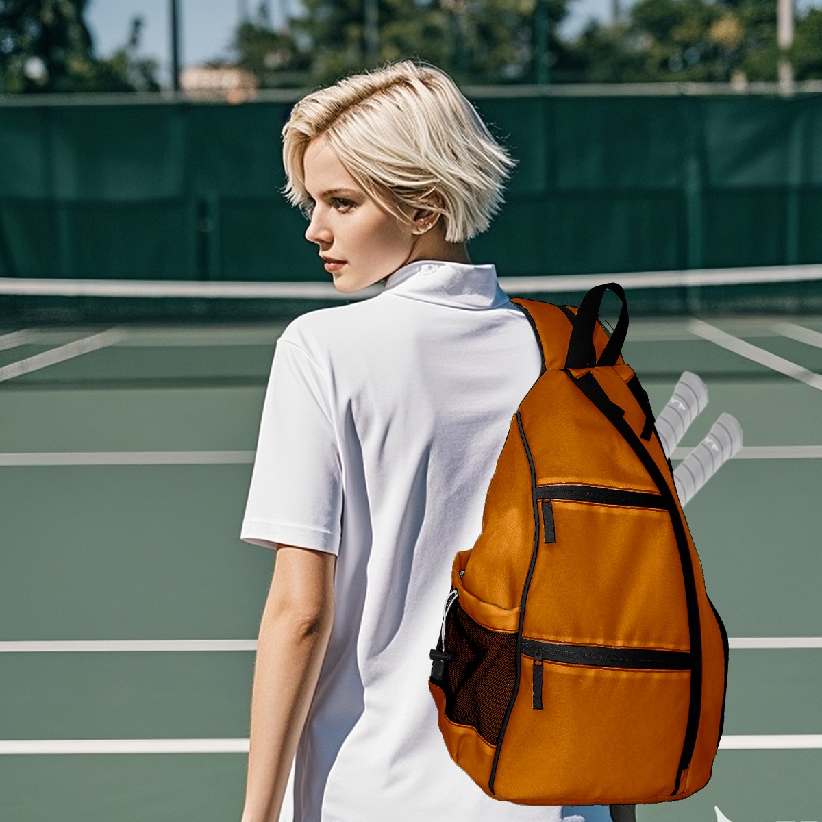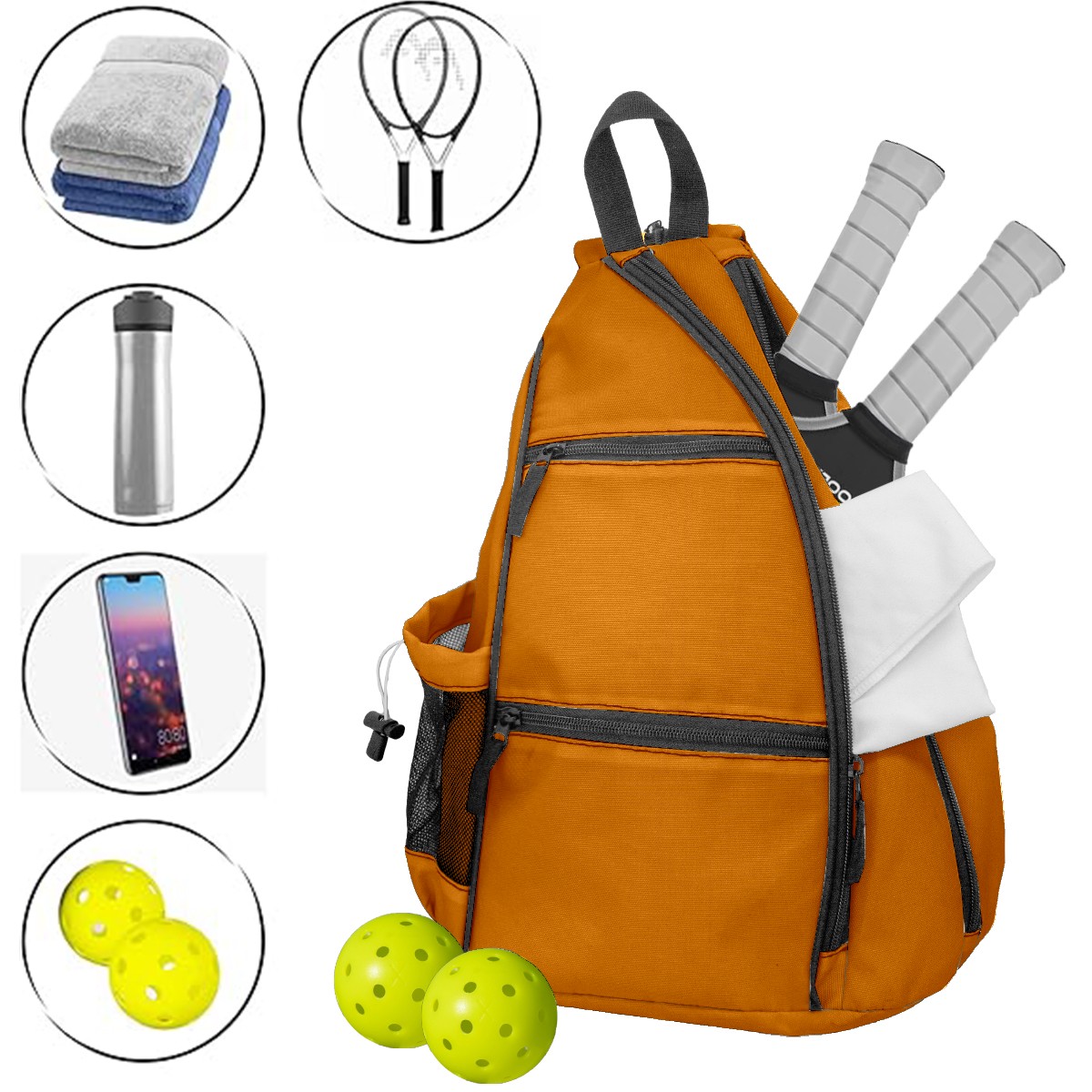 Pickleball Sling Bag for Women and Men - Backpack with Nylon Fabric/Woven Strap/Mesh Pocket/Fence Hook/Adjustable Bag Orange3
