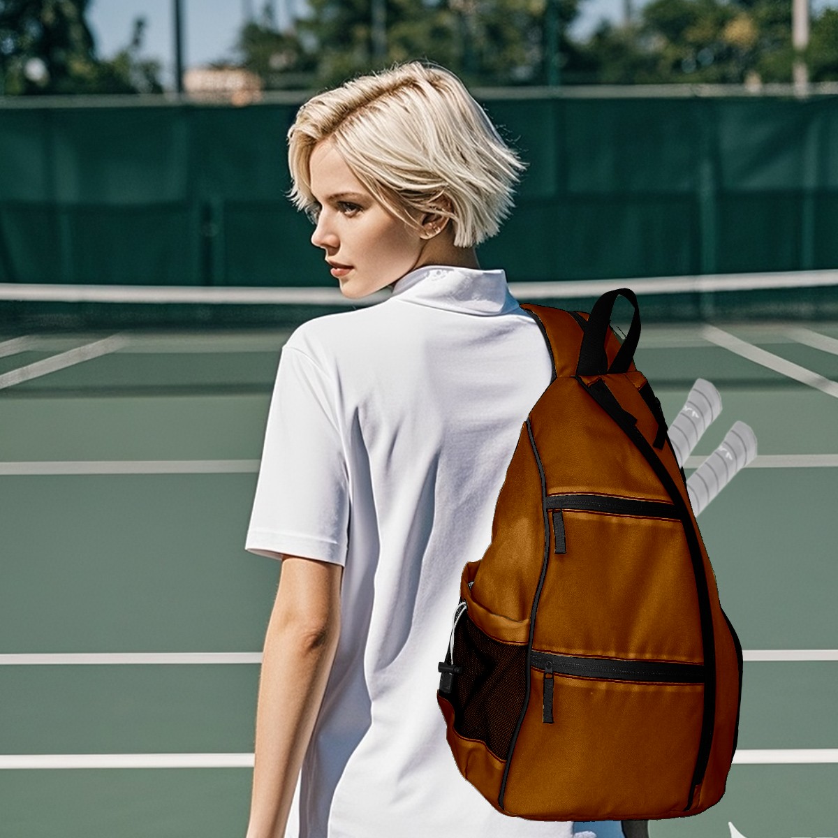 Pickleball Sling Bag for Women and Men - Backpack with Nylon Fabric/Woven Strap/Mesh Pocket/Fence Hook/Adjustable Bag Orange4
