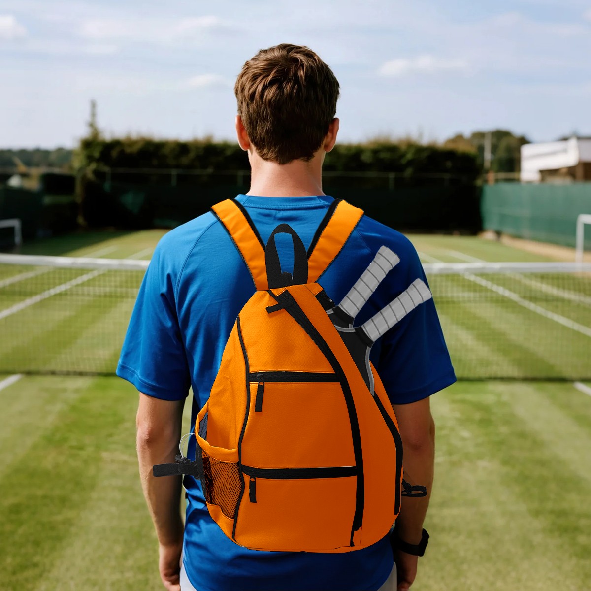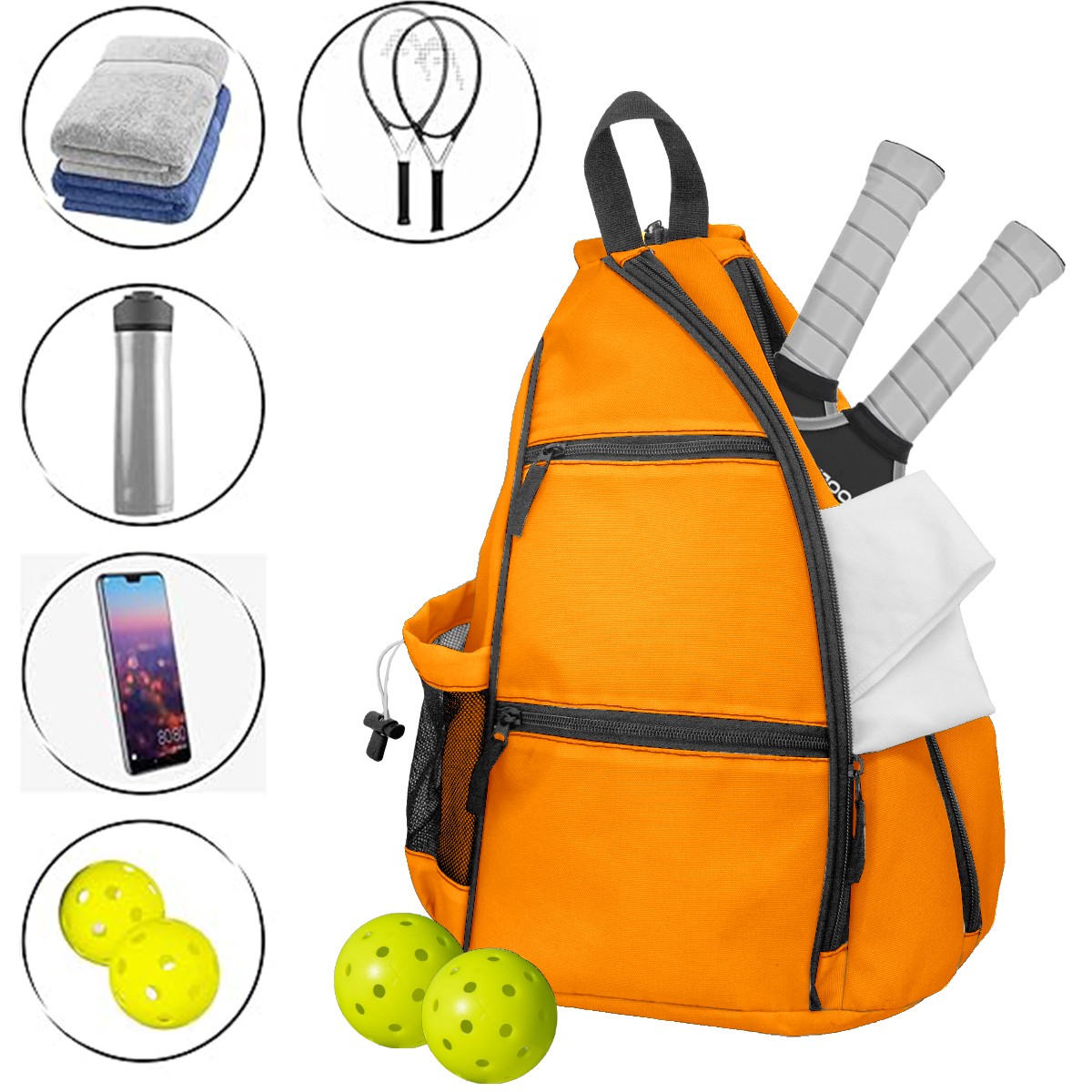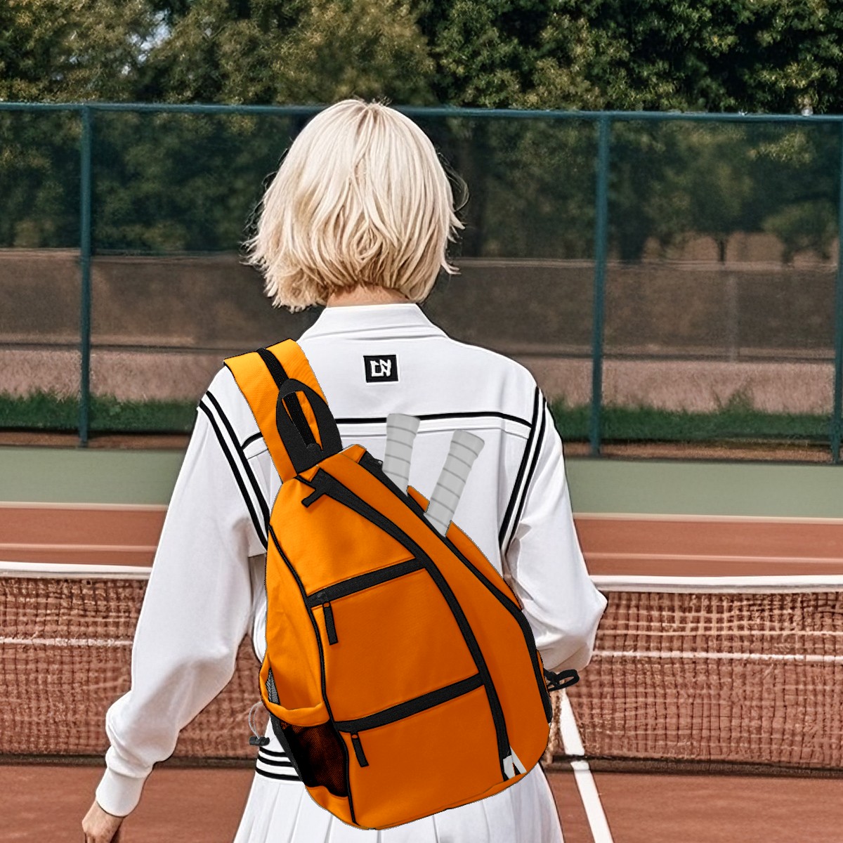 Pickleball Sling Bag for Women and Men - Backpack with Nylon Fabric/Woven Strap/Mesh Pocket/Fence Hook/Adjustable Bag Orange2