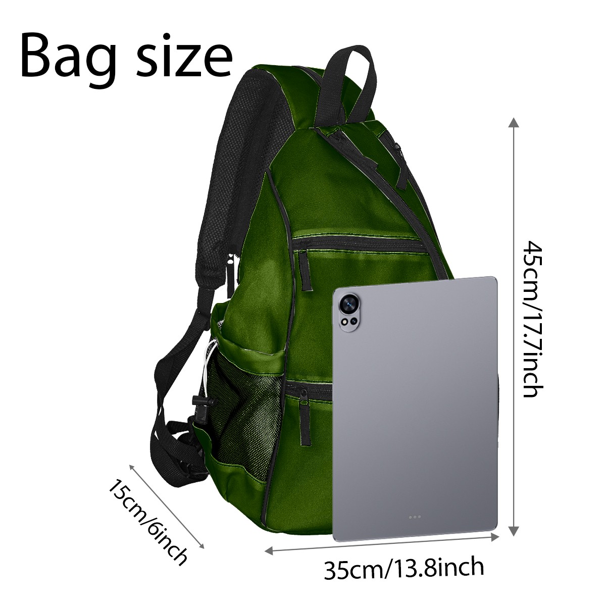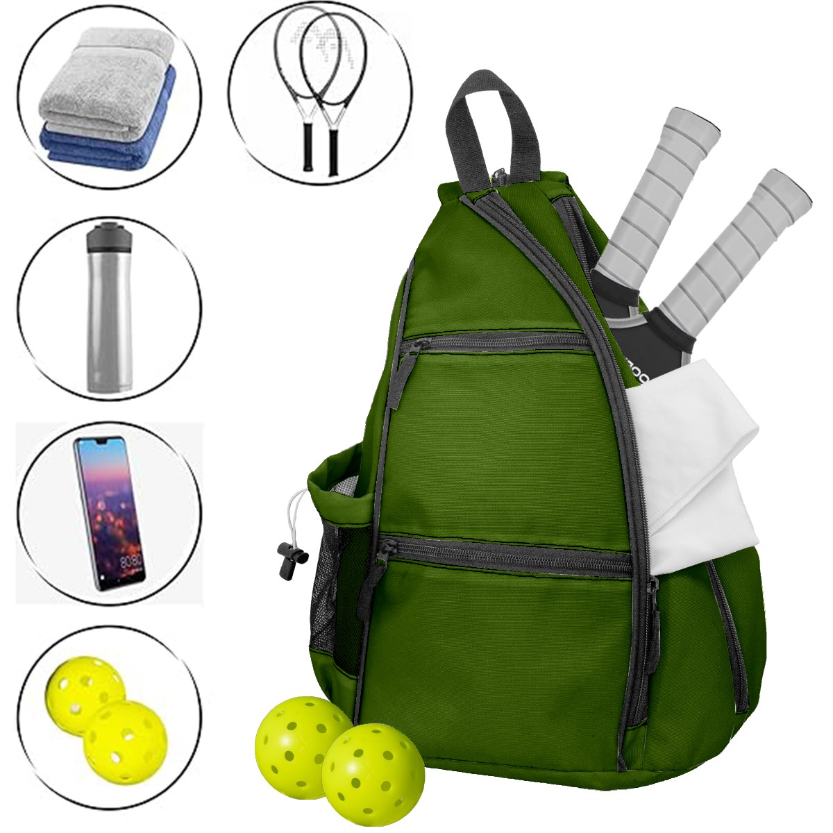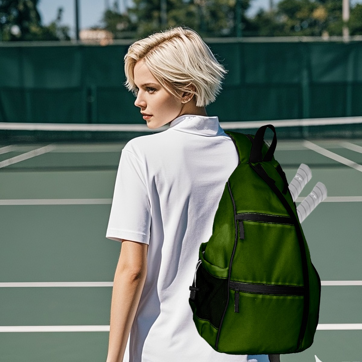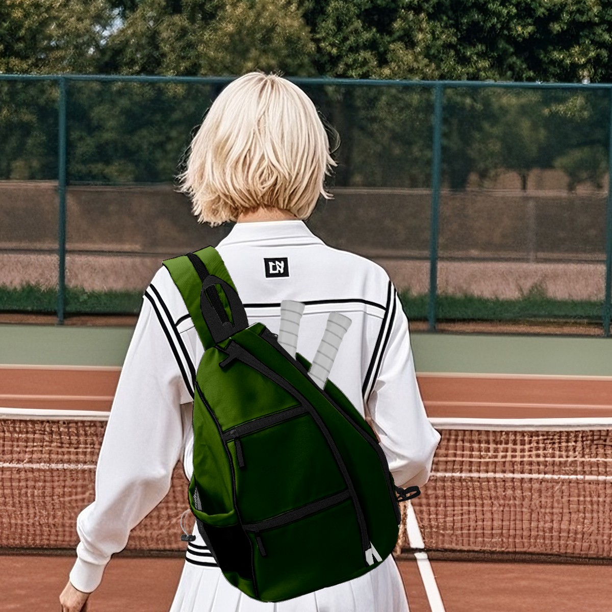Pickleball Sling Bag for Women and Men - Backpack with Nylon Fabric/Woven Strap/Mesh Pocket/Fence Hook/Adjustable Bag Green4