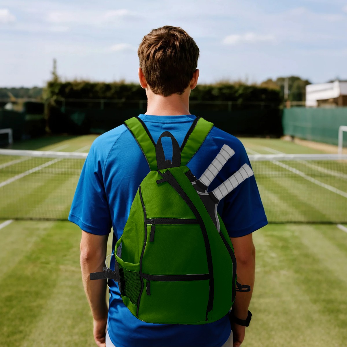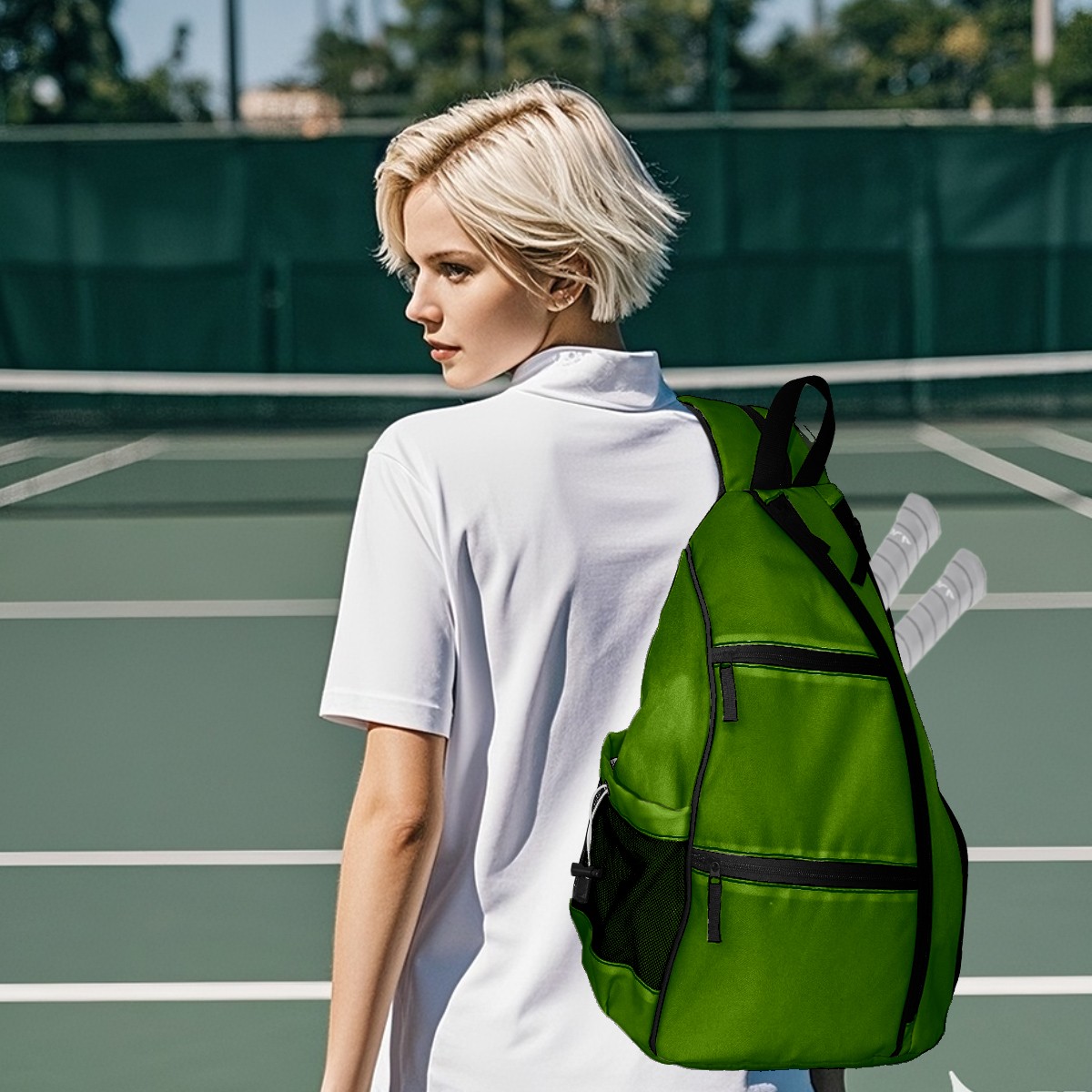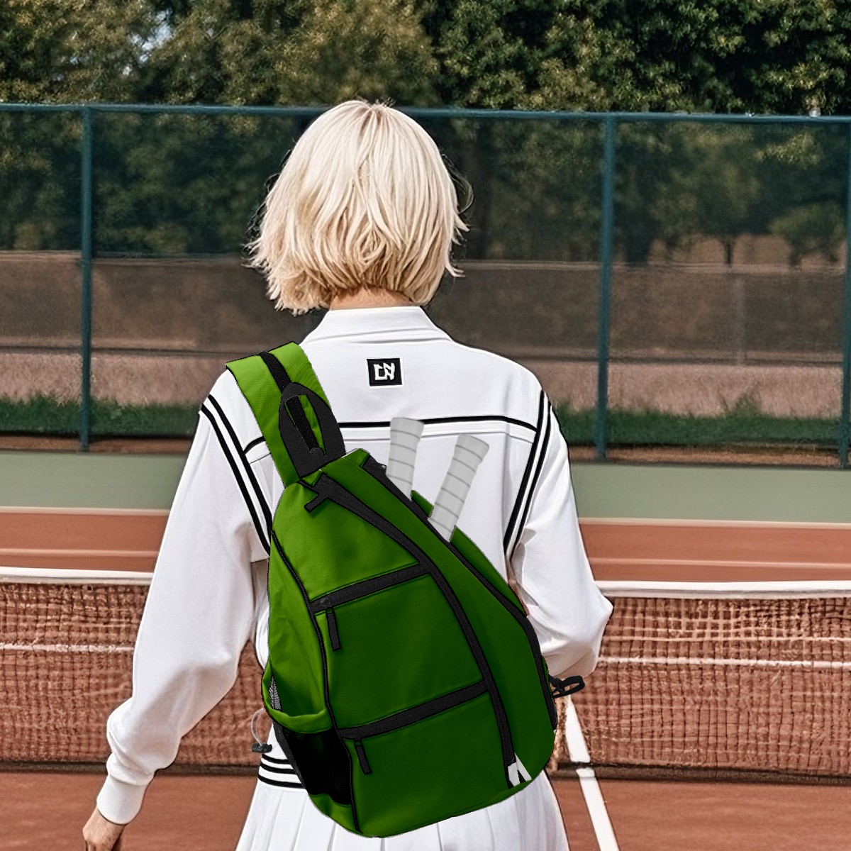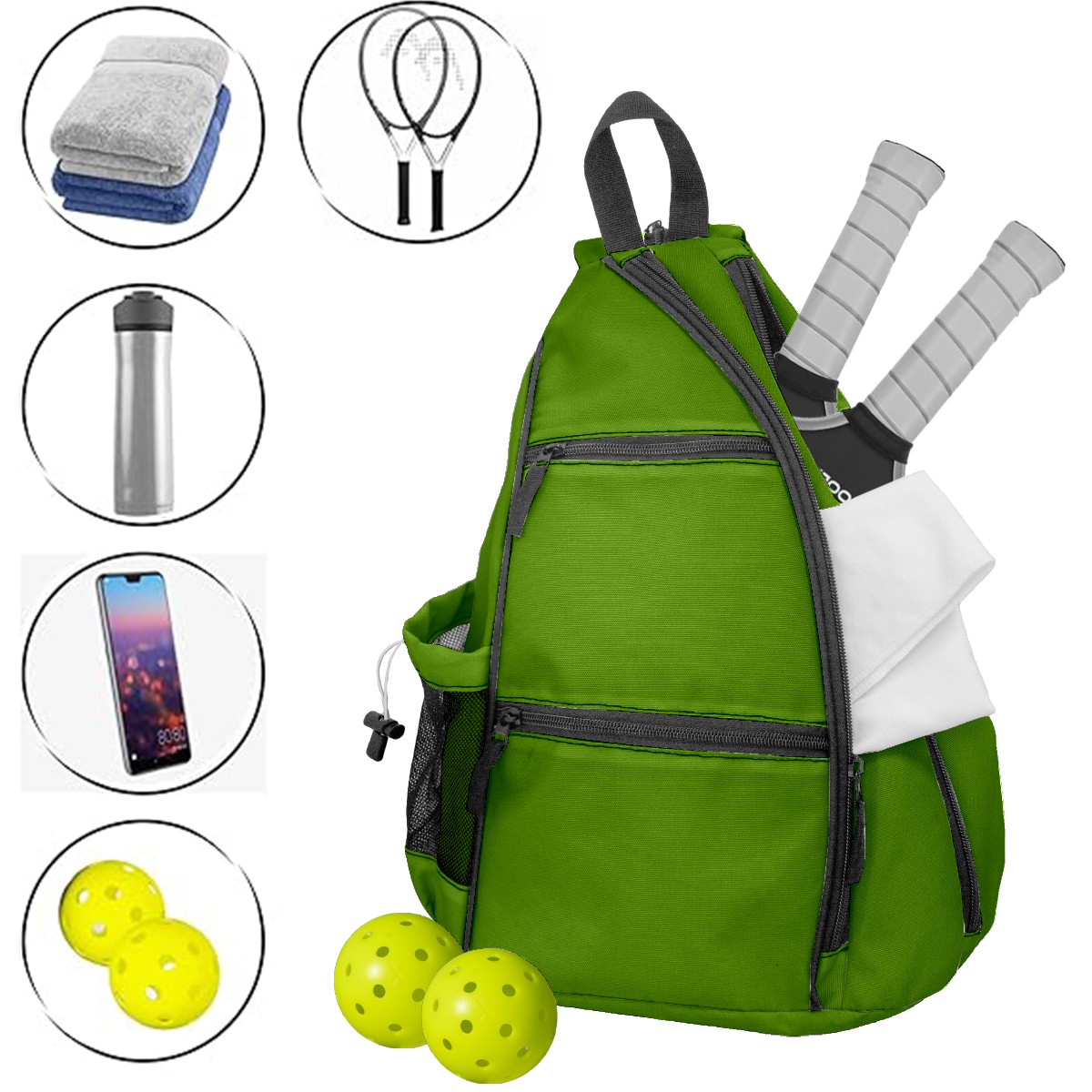 Pickleball Sling Bag for Women and Men - Backpack with Nylon Fabric/Woven Strap/Mesh Pocket/Fence Hook/Adjustable Bag Green3