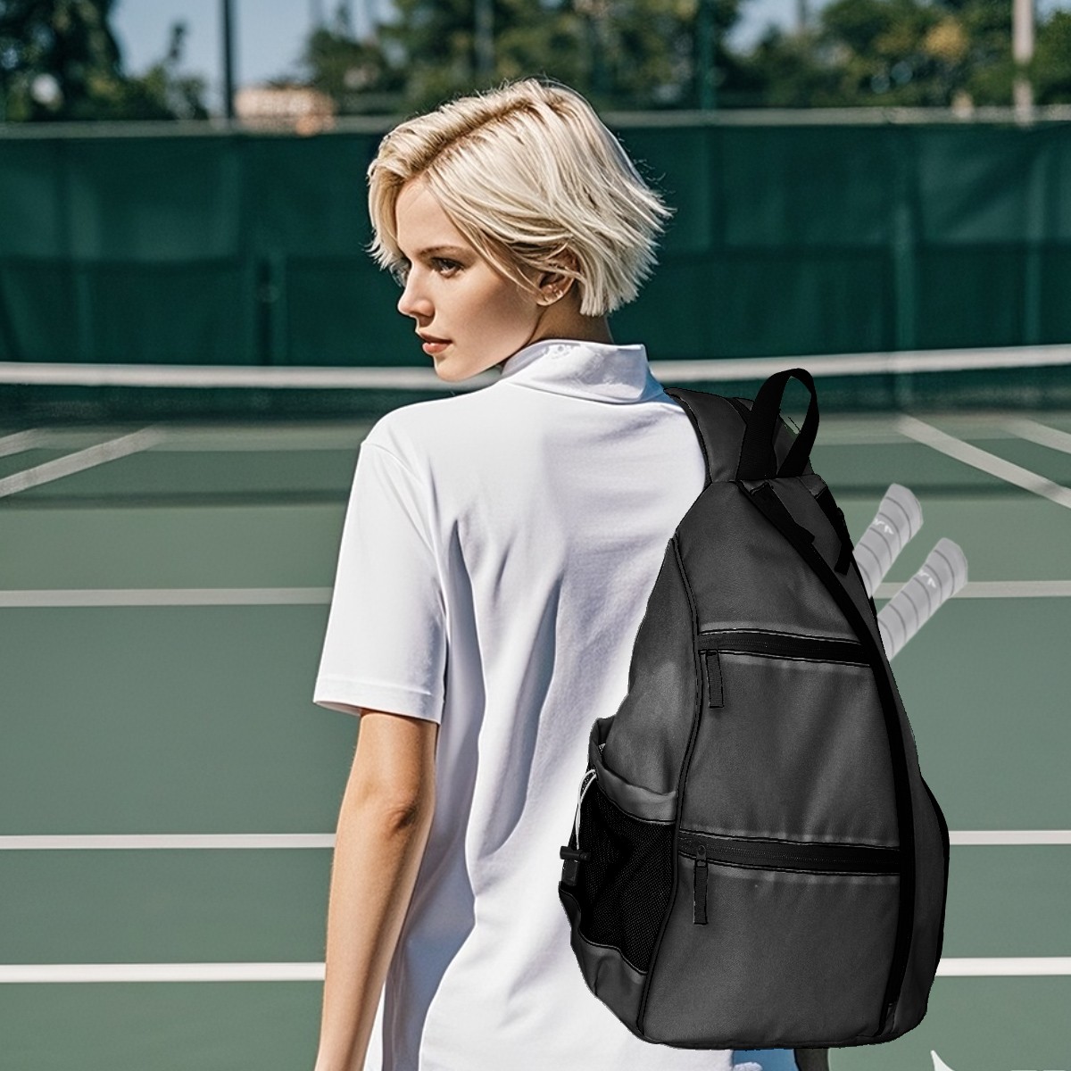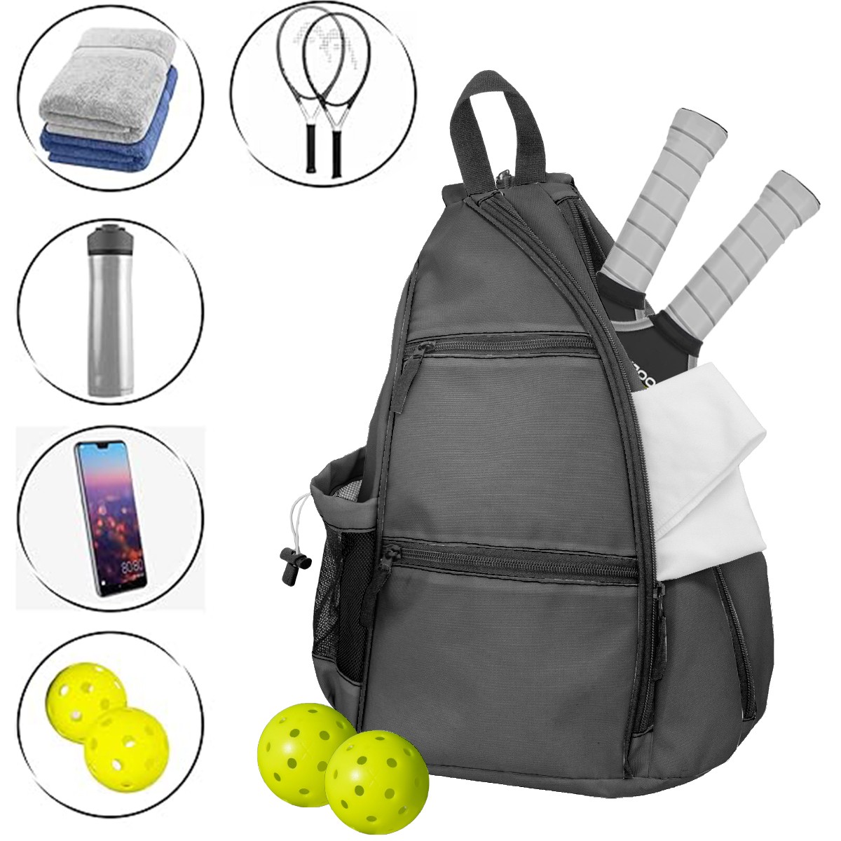 Pickleball Sling Bag for Women and Men - Backpack with Nylon Fabric/Woven Strap/Mesh Pocket/Fence Hook/Adjustable Bag Graygray