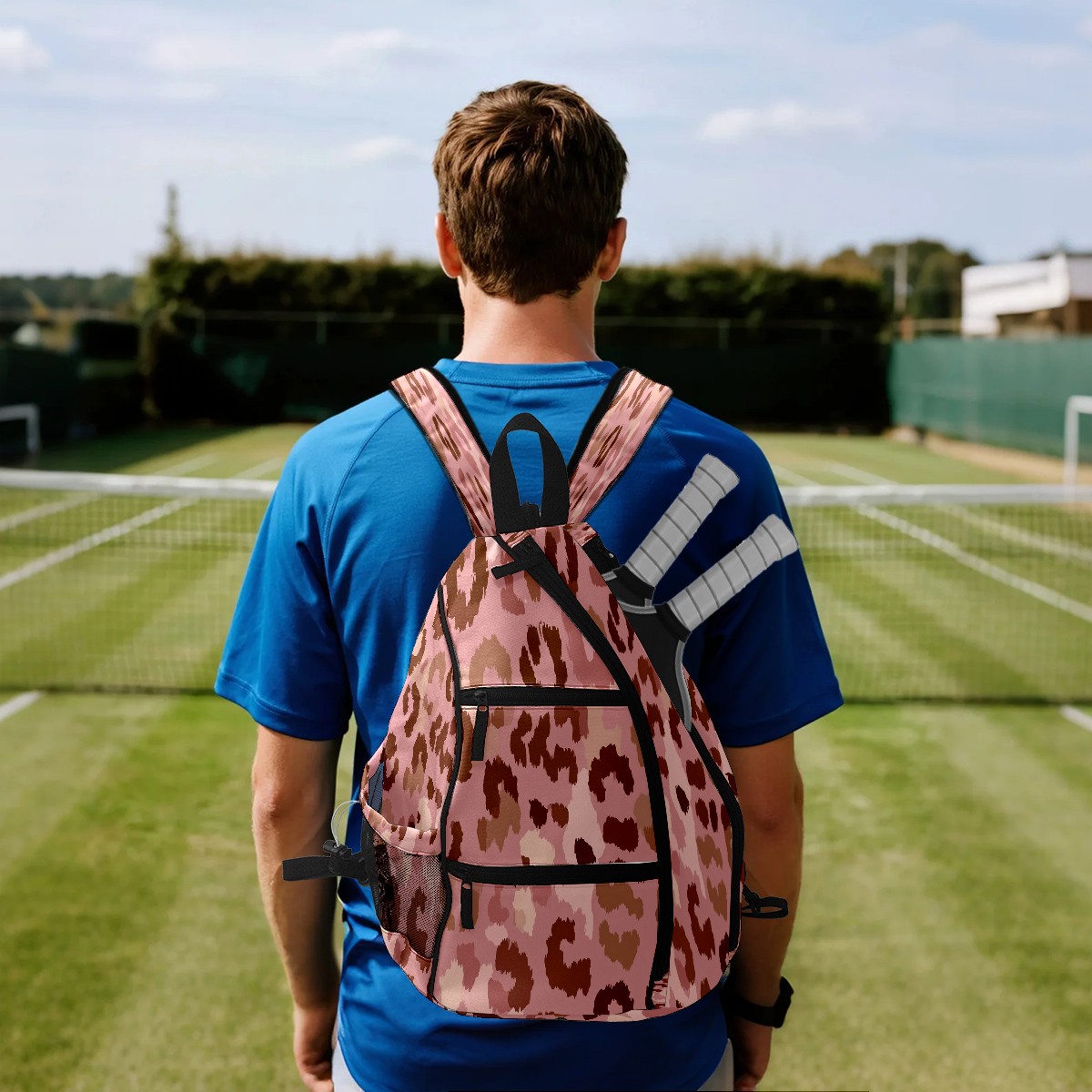 Pickleball Backpack Pink Leopard Pink for Women Men - Multi-Pocket Pickleball Bag with Shoe Compartment | Versatile Tennis Bag & Gifts for Pickleball Lovers