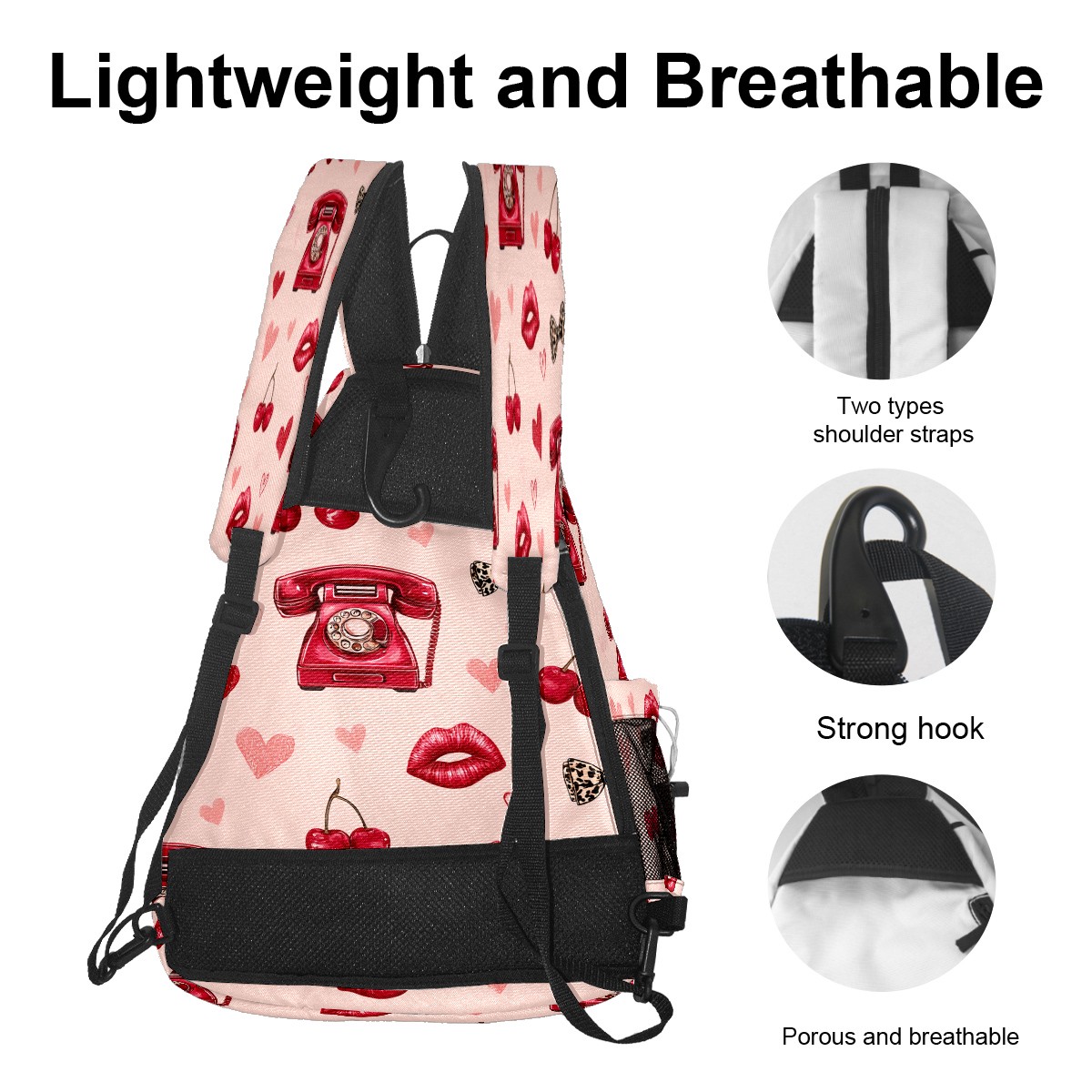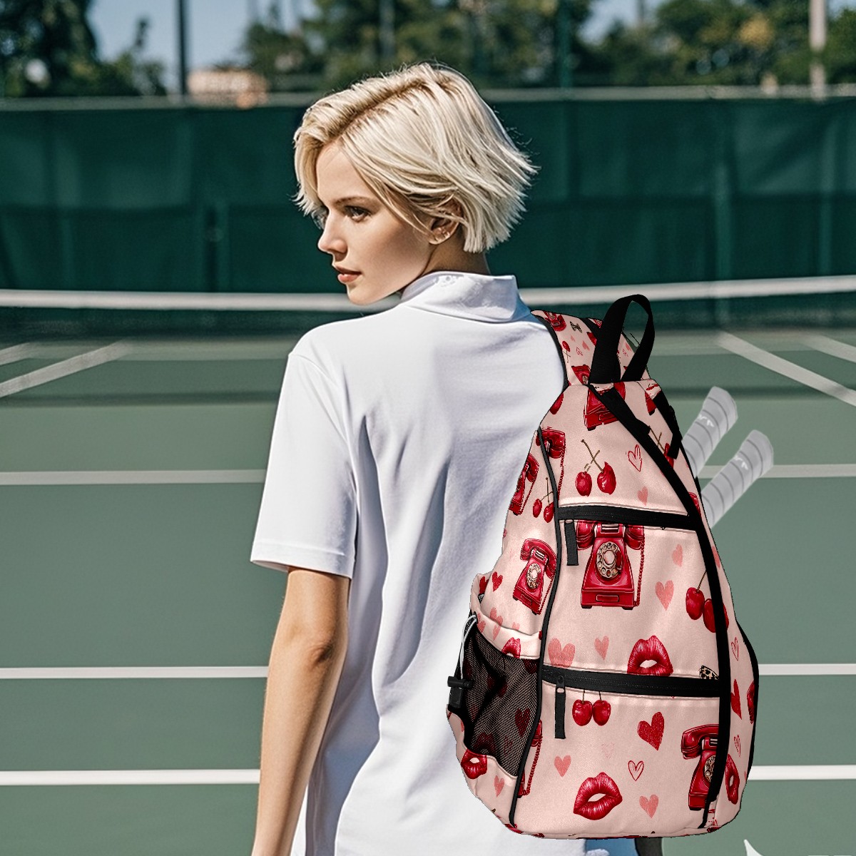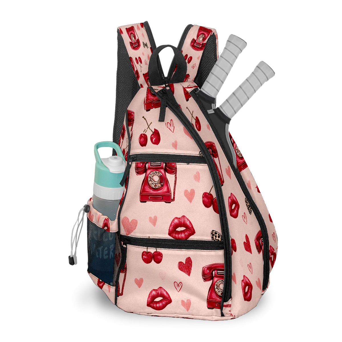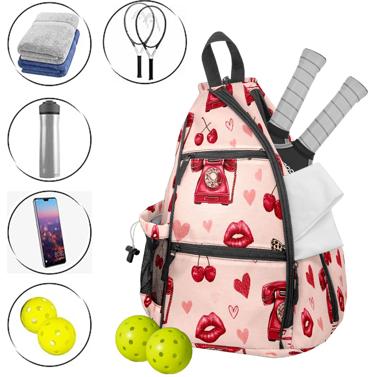 Pickleball Backpack Telephone Heart Pink for Women Men - Multi-Pocket Pickleball Bag with Shoe Compartment | Versatile Tennis Bag & Gifts for Pickleball Lovers