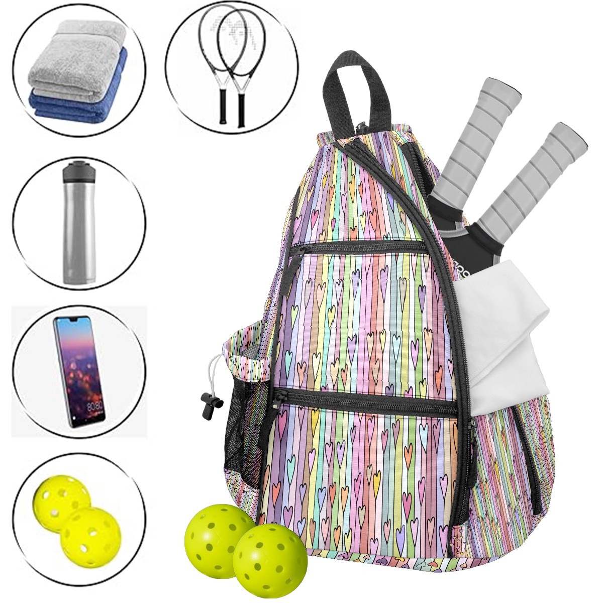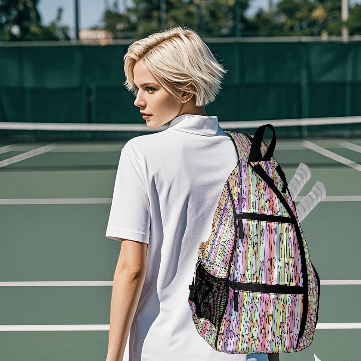 Pickleball Backpack Stripe Heart Colorful for Women Men - Multi-Pocket Pickleball Bag with Shoe Compartment | Versatile Tennis Bag & Gifts for Pickleball Lovers