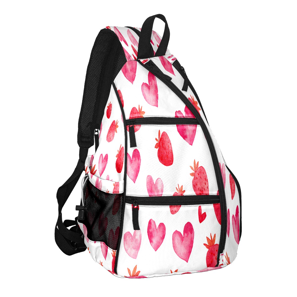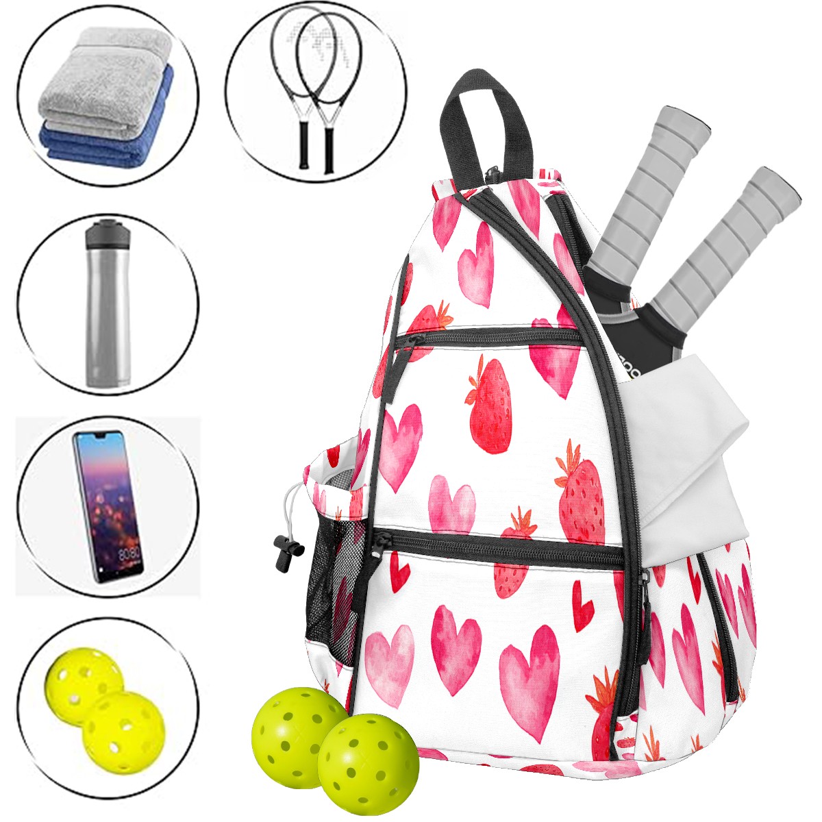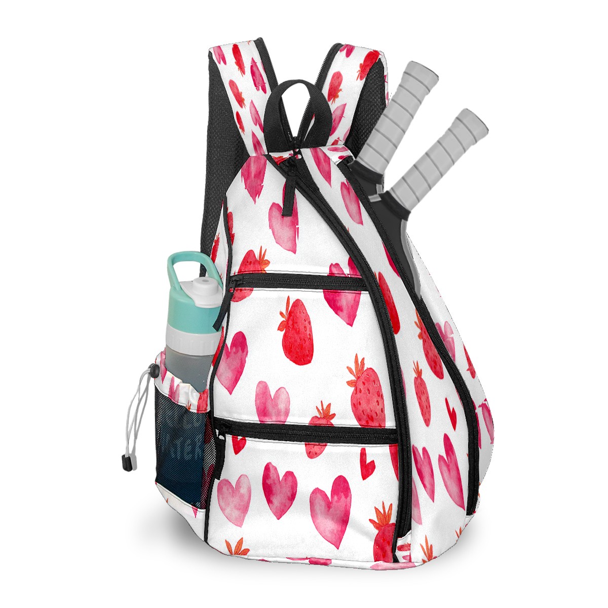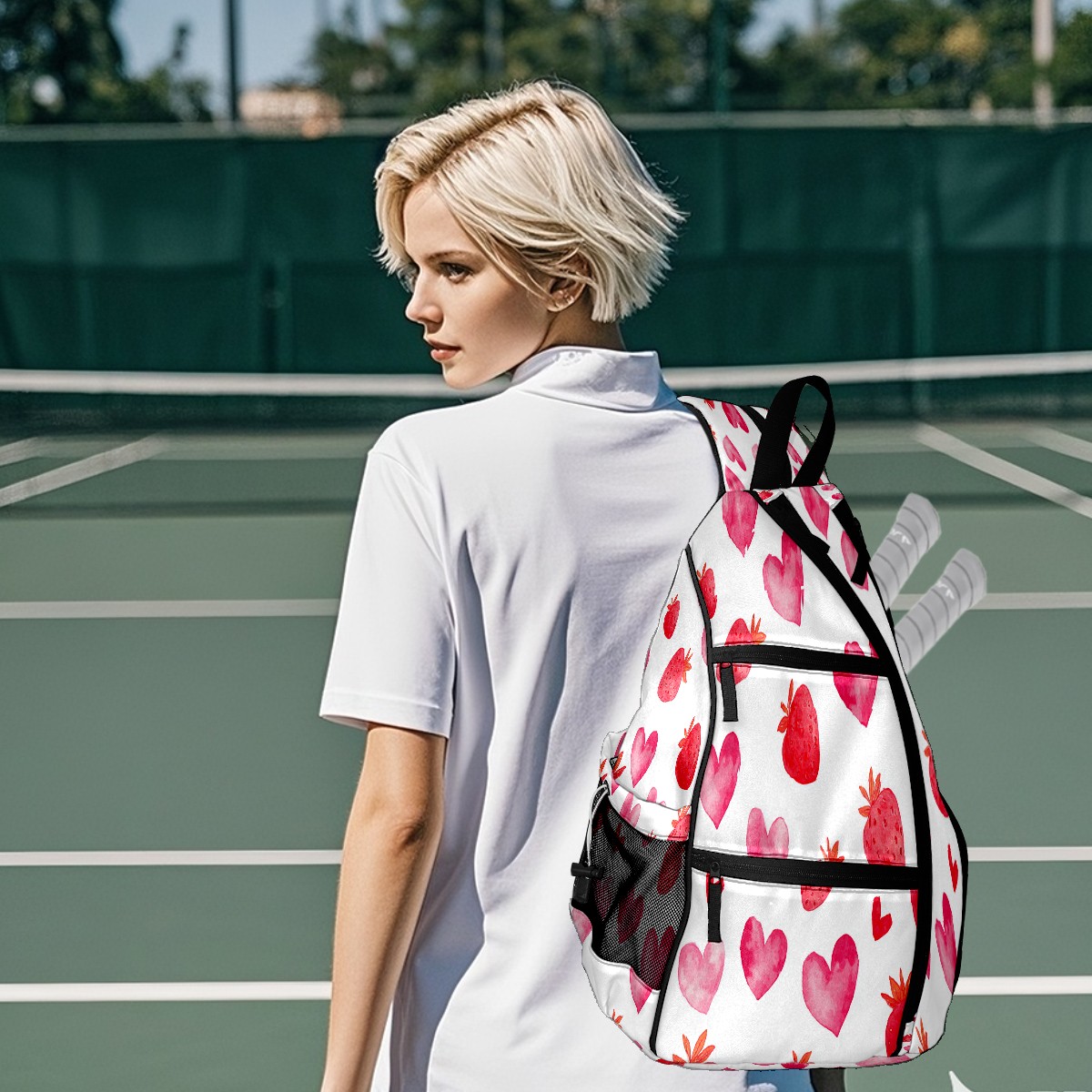 Pickleball Backpack Strawberry Heart Red for Women Men - Multi-Pocket Pickleball Bag with Shoe Compartment | Versatile Tennis Bag & Gifts for Pickleball Lovers