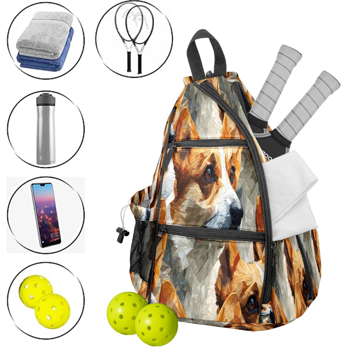 Pickleball Backpack Corgi Brown for Women Men - Multi-Pocket Pickleball Bag with Shoe Compartment | Versatile Tennis Bag & Gifts for Pickleball Lovers