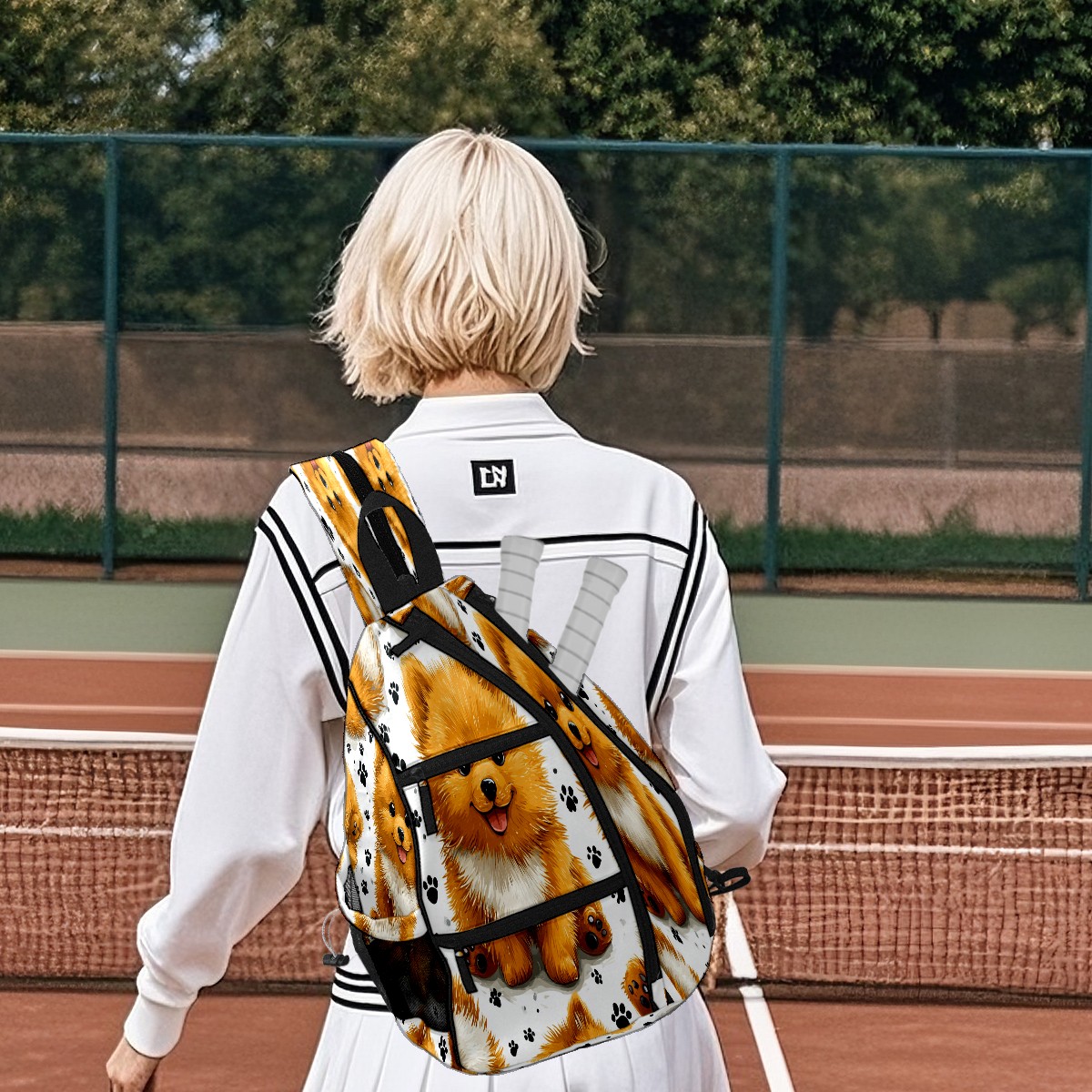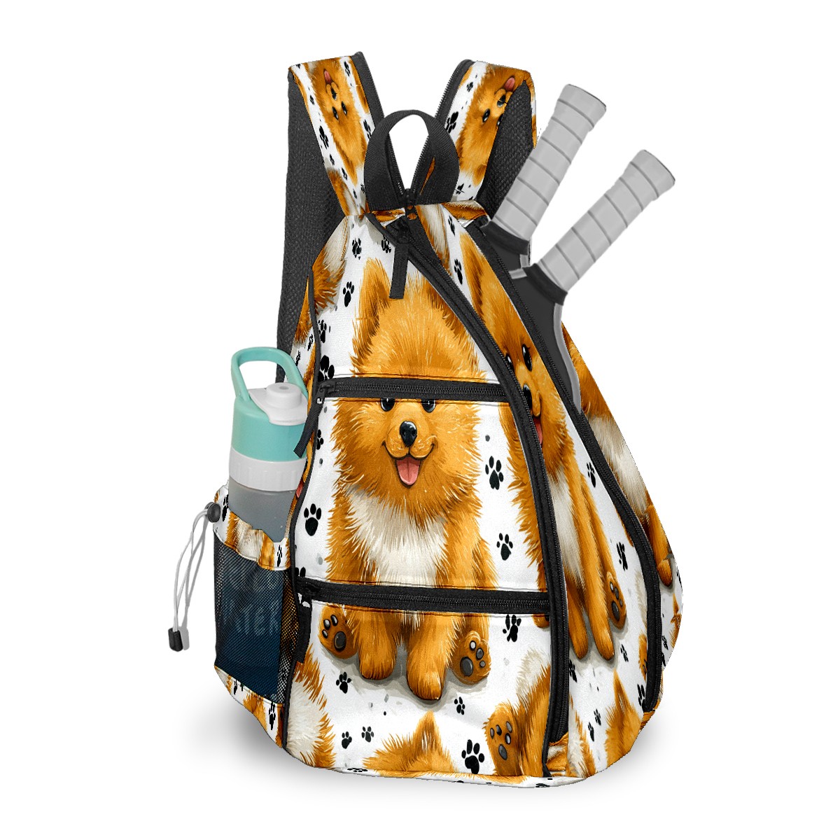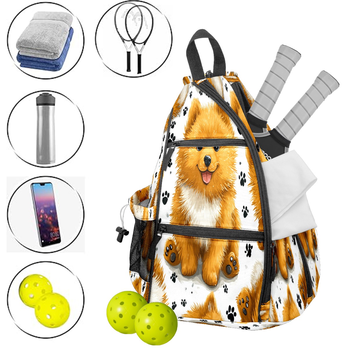 Pickleball Backpack Pomeranian Paw Orange for Women Men - Multi-Pocket Pickleball Bag with Shoe Compartment | Versatile Tennis Bag & Gifts for Pickleball Lovers
