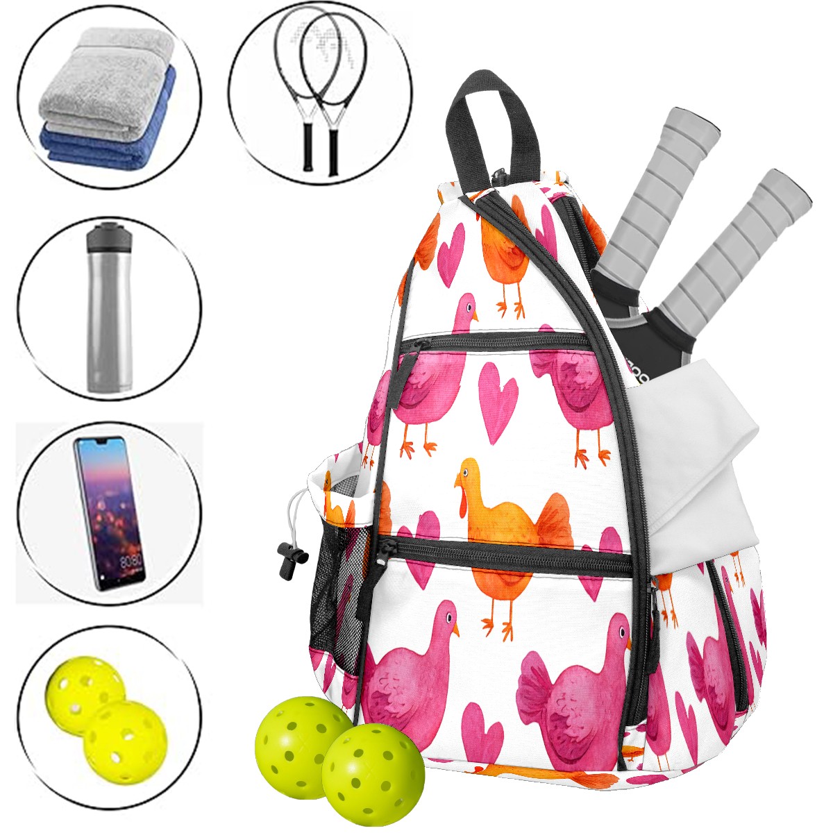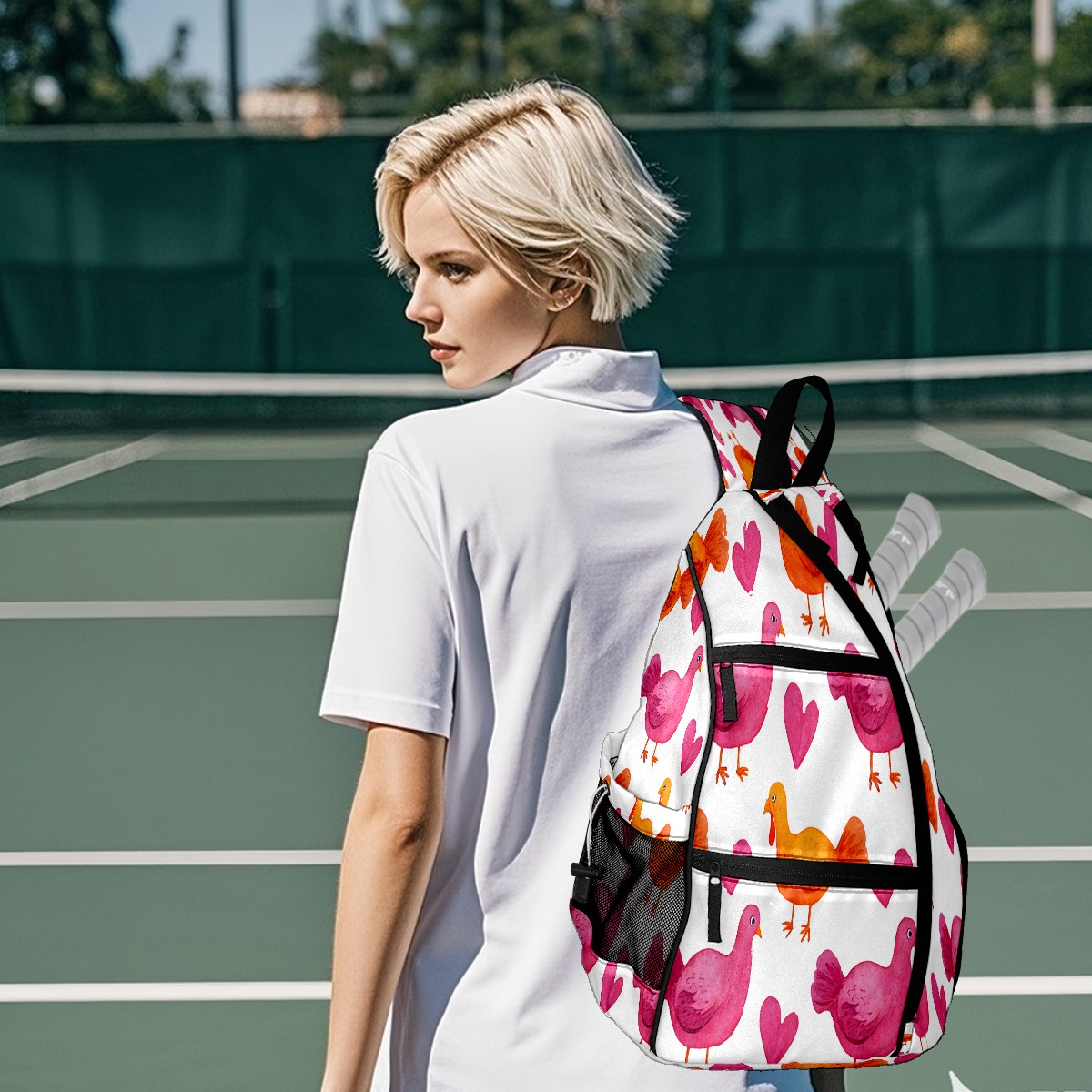 Pickleball Backpack Pigeon Heart Pink for Women Men - Multi-Pocket Pickleball Bag with Shoe Compartment | Versatile Tennis Bag & Gifts for Pickleball Lovers
