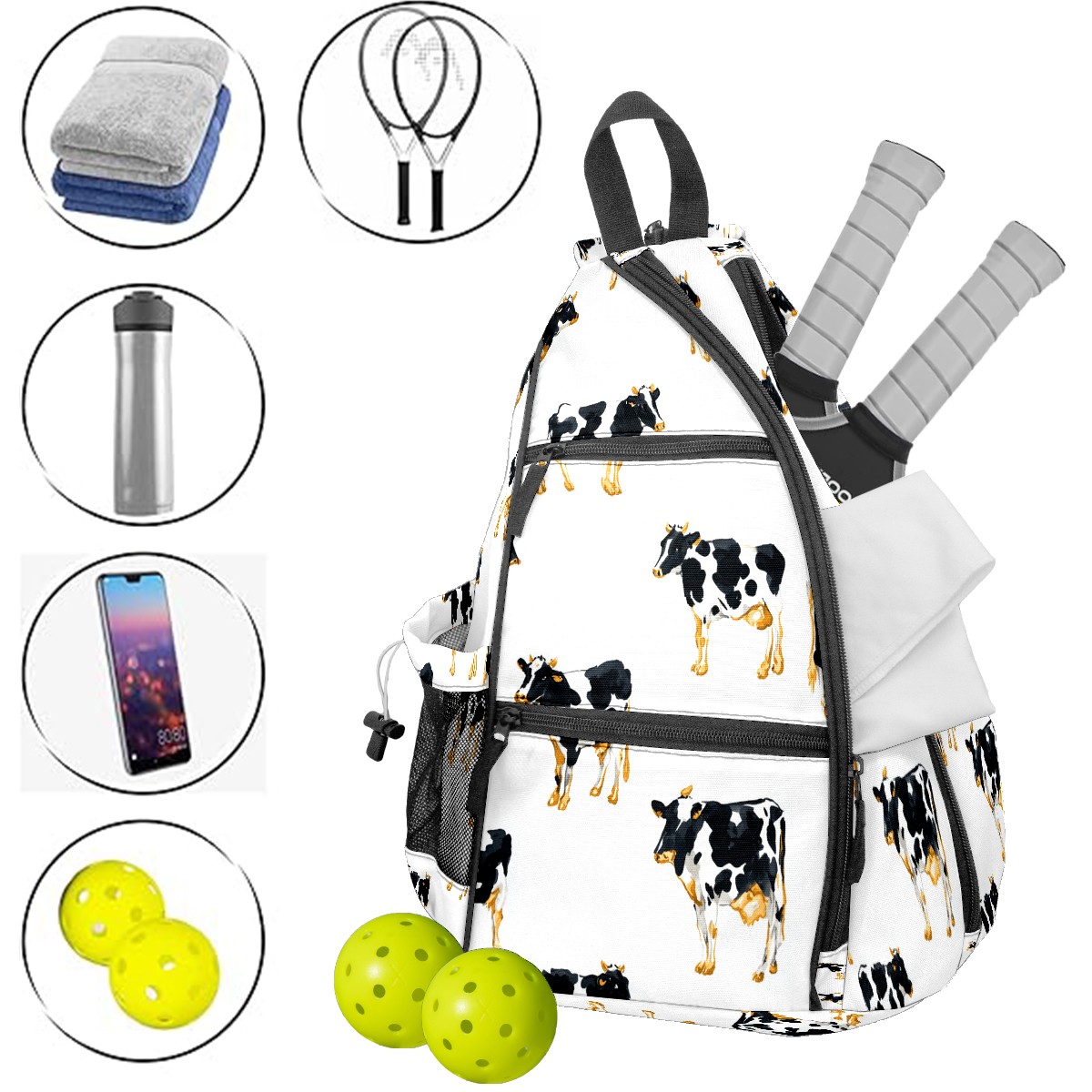 Pickleball Backpack Fresh Cow White for Women Men - Multi-Pocket Pickleball Bag with Shoe Compartment | Versatile Tennis Bag & Gifts for Pickleball Lovers