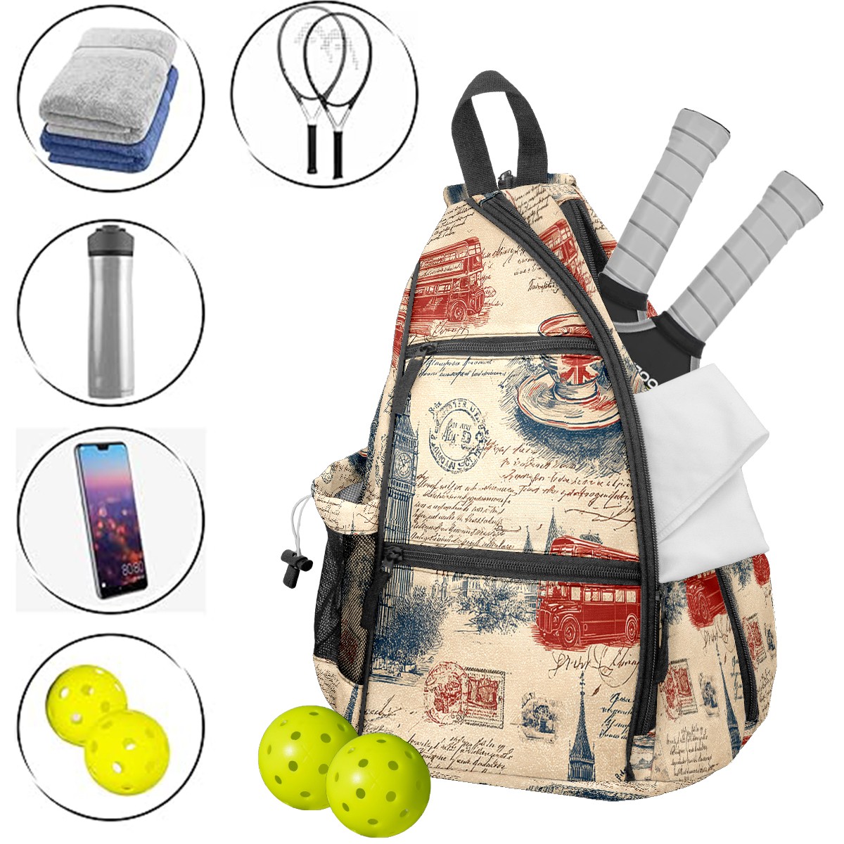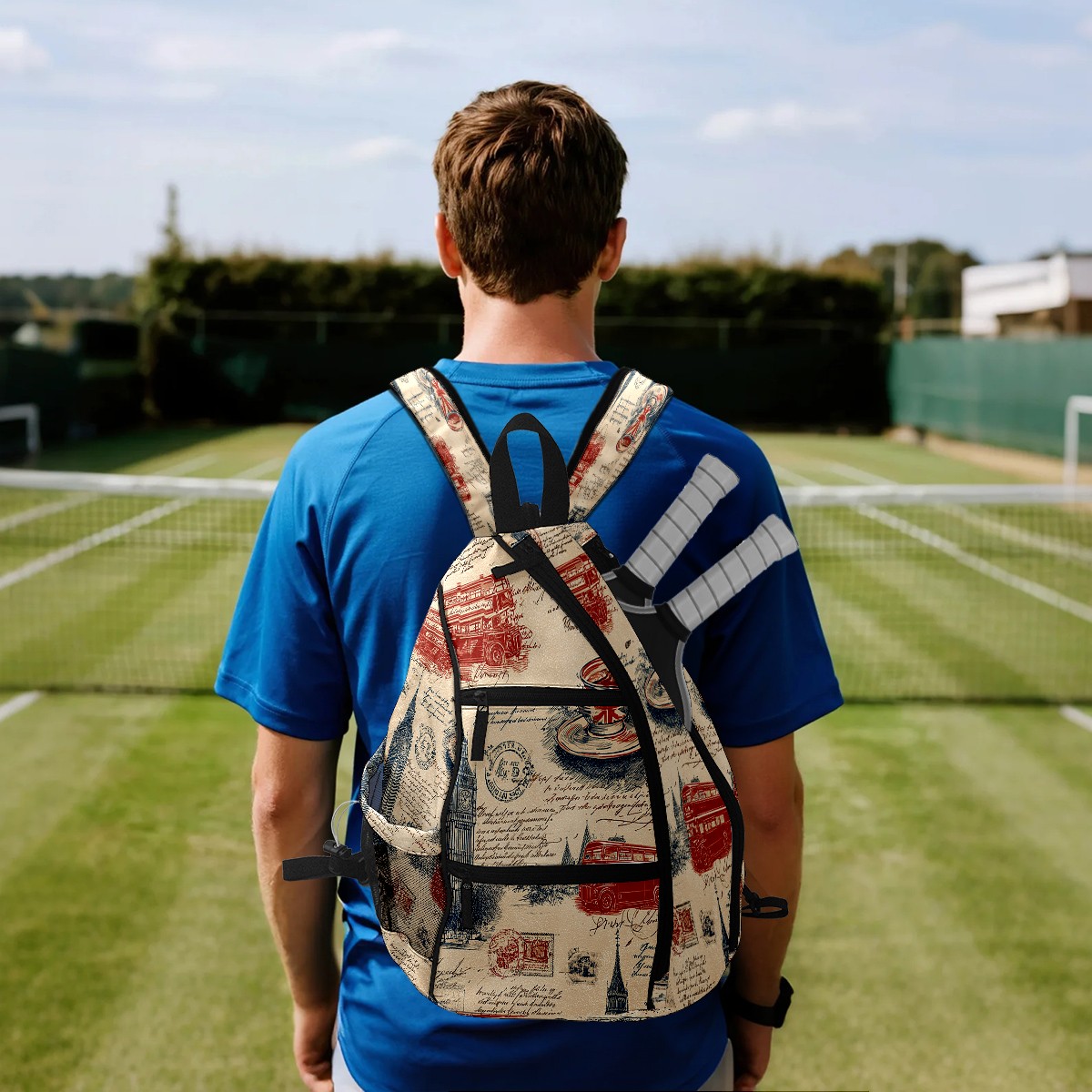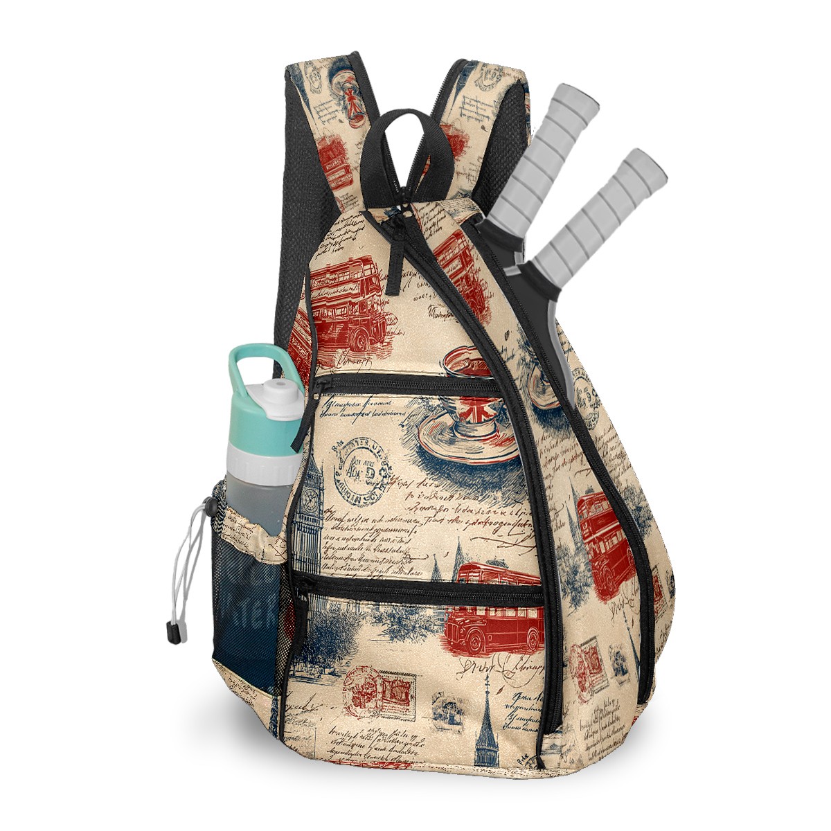 Pickleball Backpack Vintage Stamp Beige for Women Men - Multi-Pocket Pickleball Bag with Shoe Compartment | Versatile Tennis Bag & Gifts for Pickleball Lovers