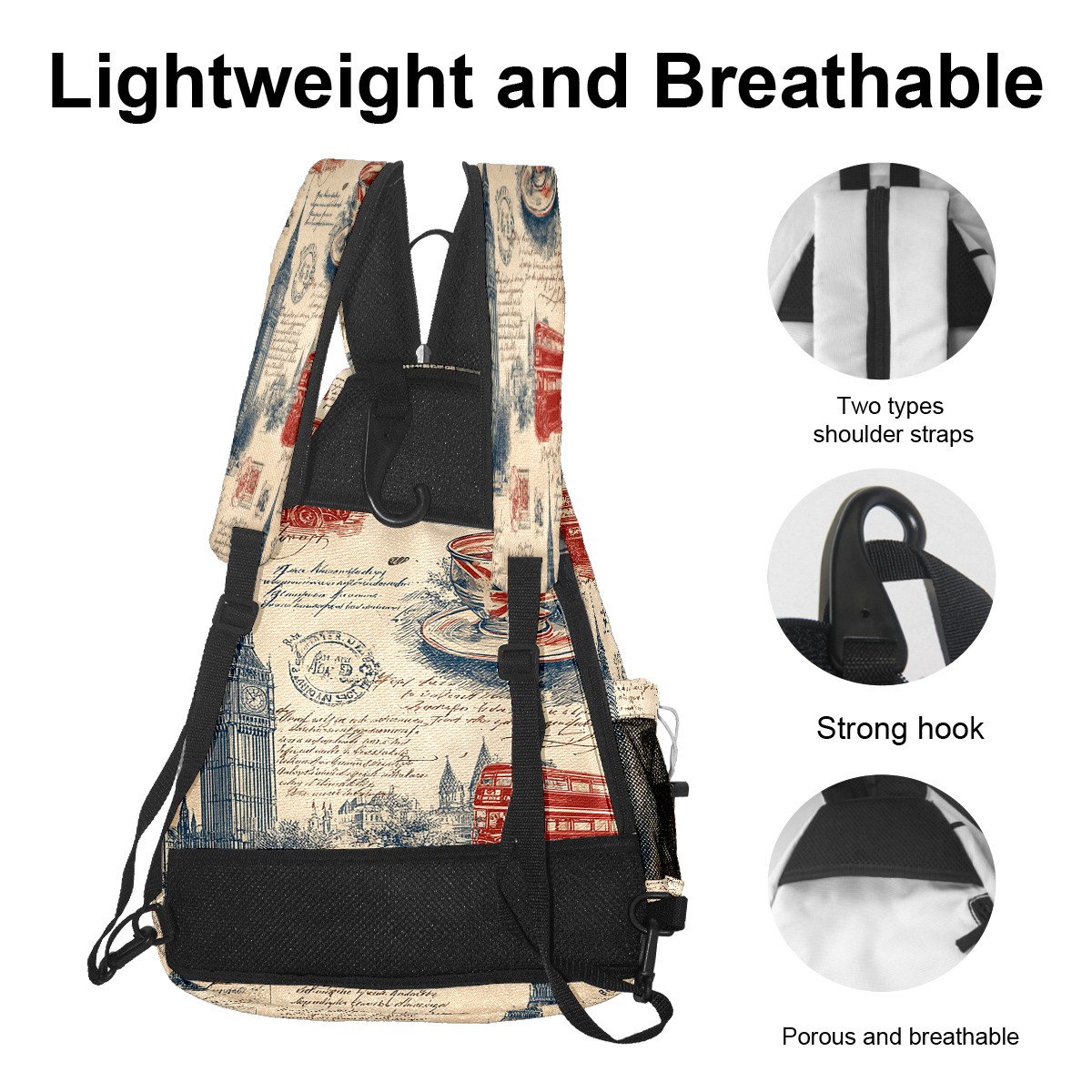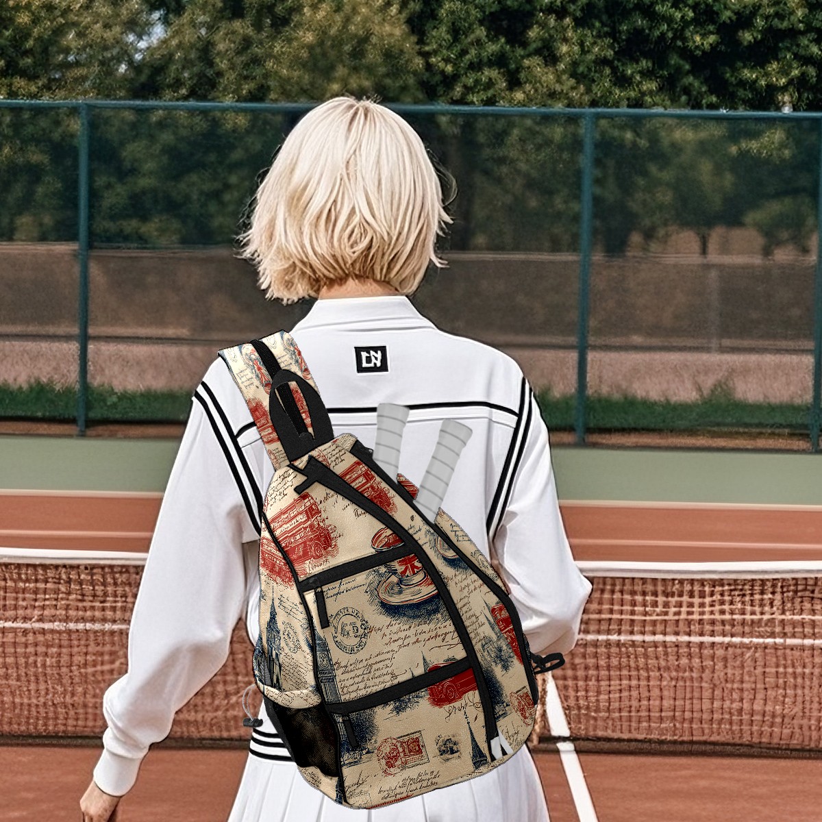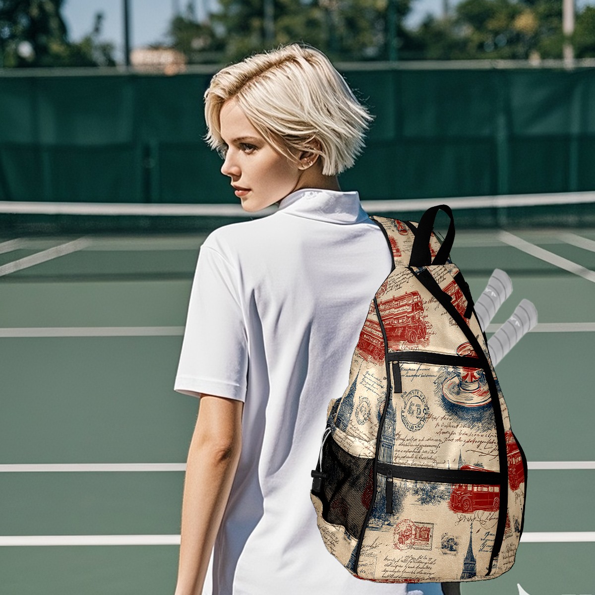 Pickleball Backpack Vintage Stamp Beige for Women Men - Multi-Pocket Pickleball Bag with Shoe Compartment | Versatile Tennis Bag & Gifts for Pickleball Lovers