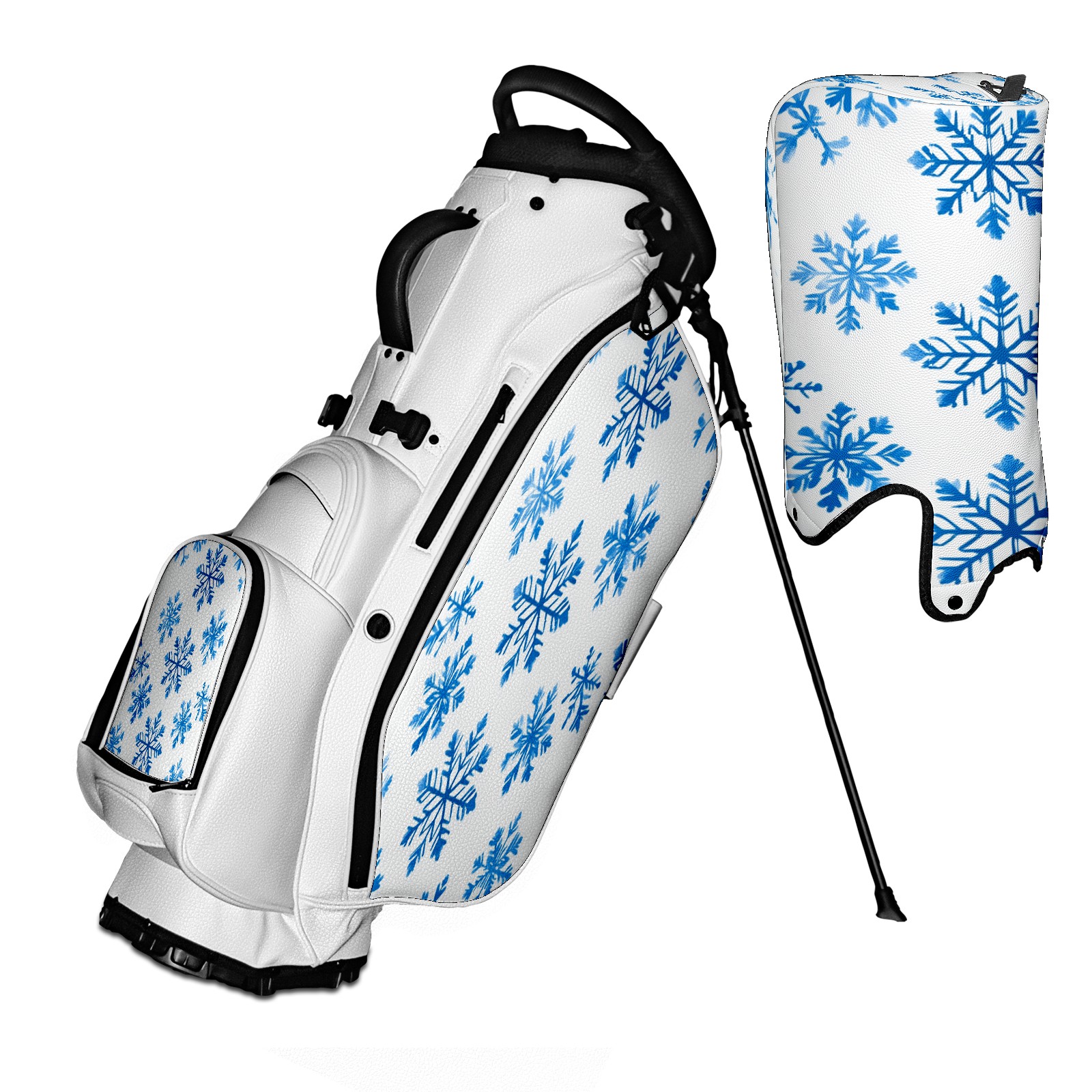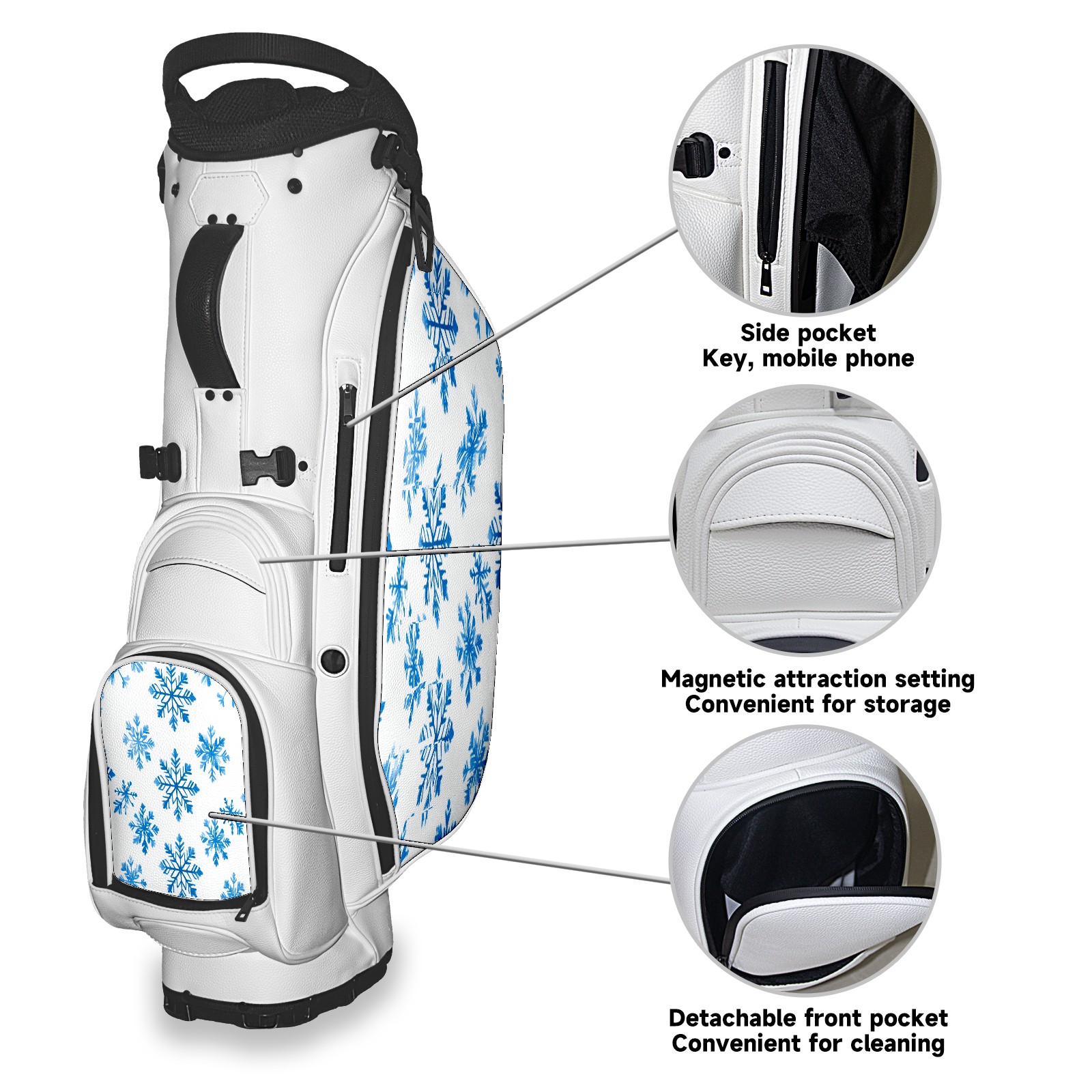 Golf Stand Bag with 5-Way Dividers, Lightweight Golf Club Bag for Driving Range, Padded and Unisex, Waterproof Golf Carrying Bag with Stand Snowflake