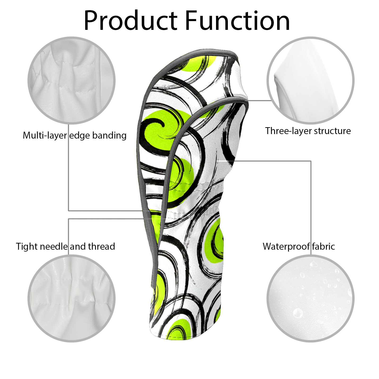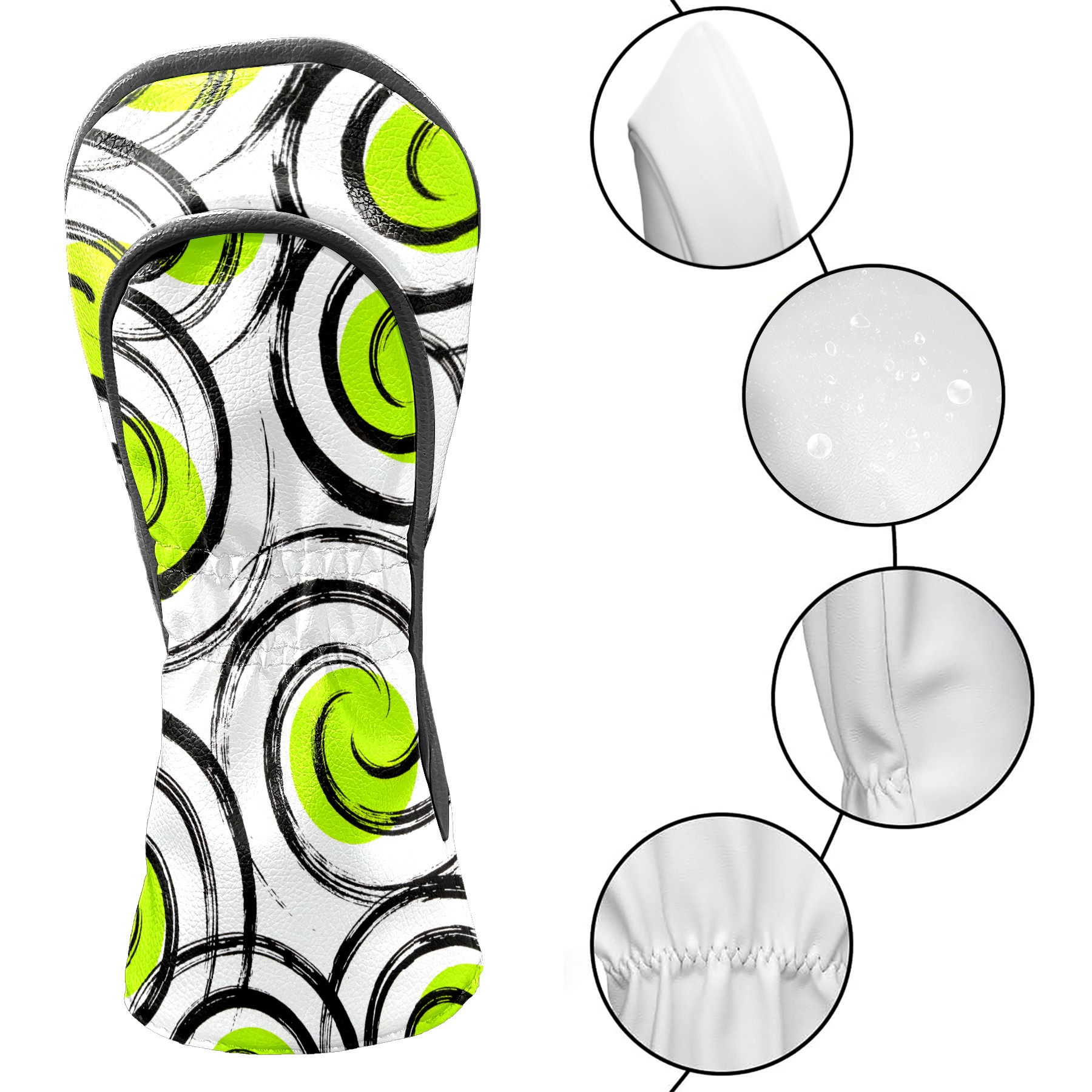 Golf Club Head Cover, High Quality PU Leather Driver and Wood Club Head Cover with Anti-Scratch Lining, Green Spiral 2 Universal Gift for Men and Women