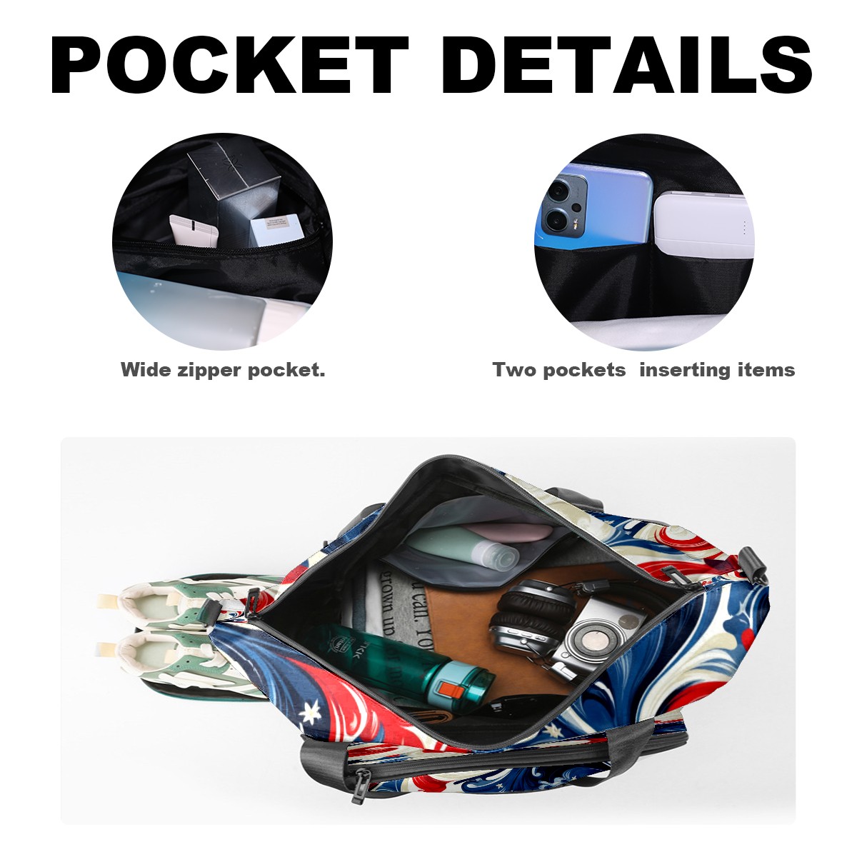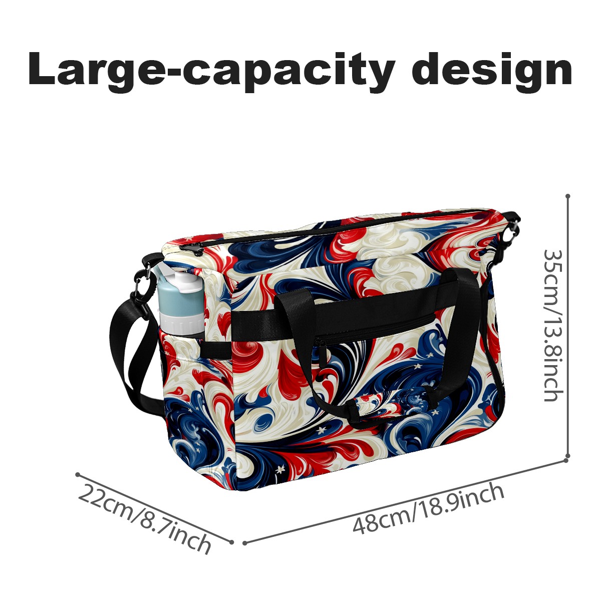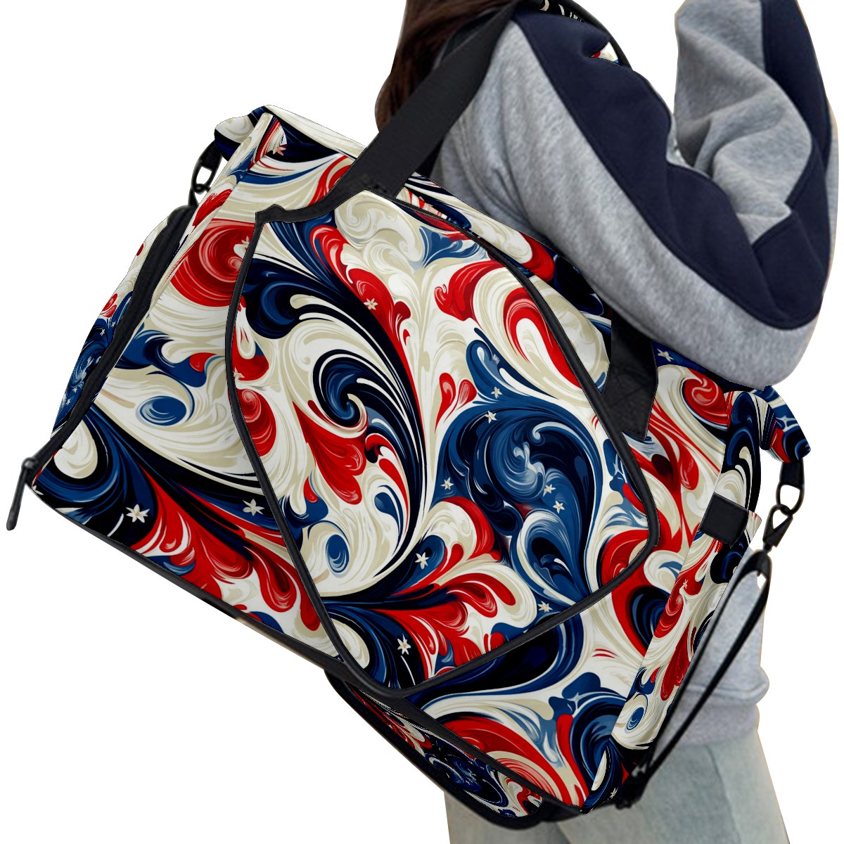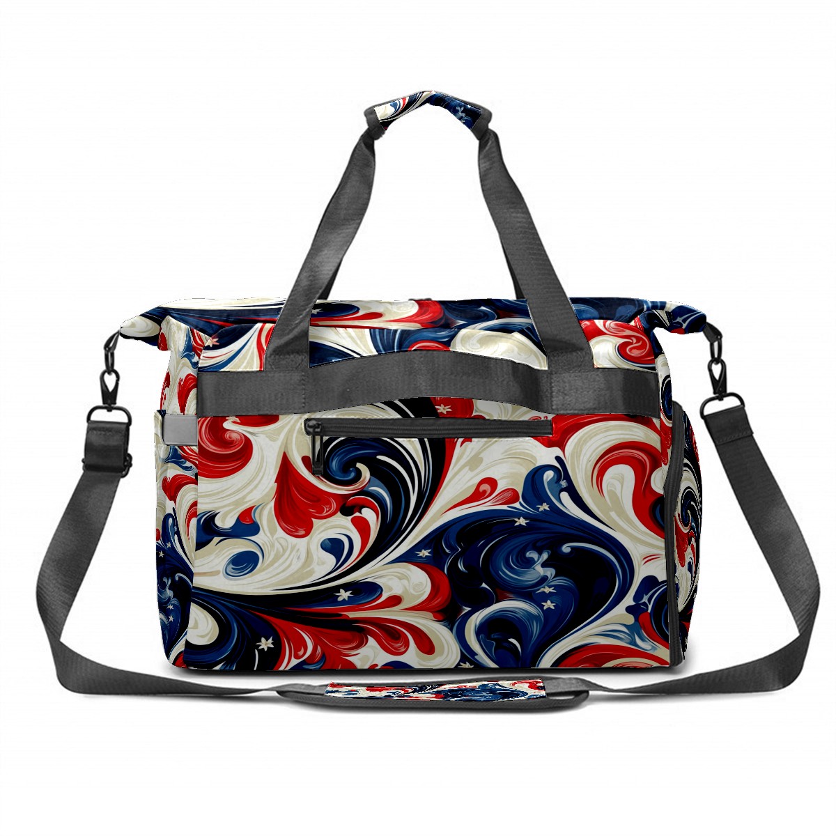 Lightweight Pickleball Tote Bag with Large Capacity, Shoe Compartment, Large Paddle Storage, Water Bottle Holder & Fence Hook for Women & Men Red Blue Swirling Pattern