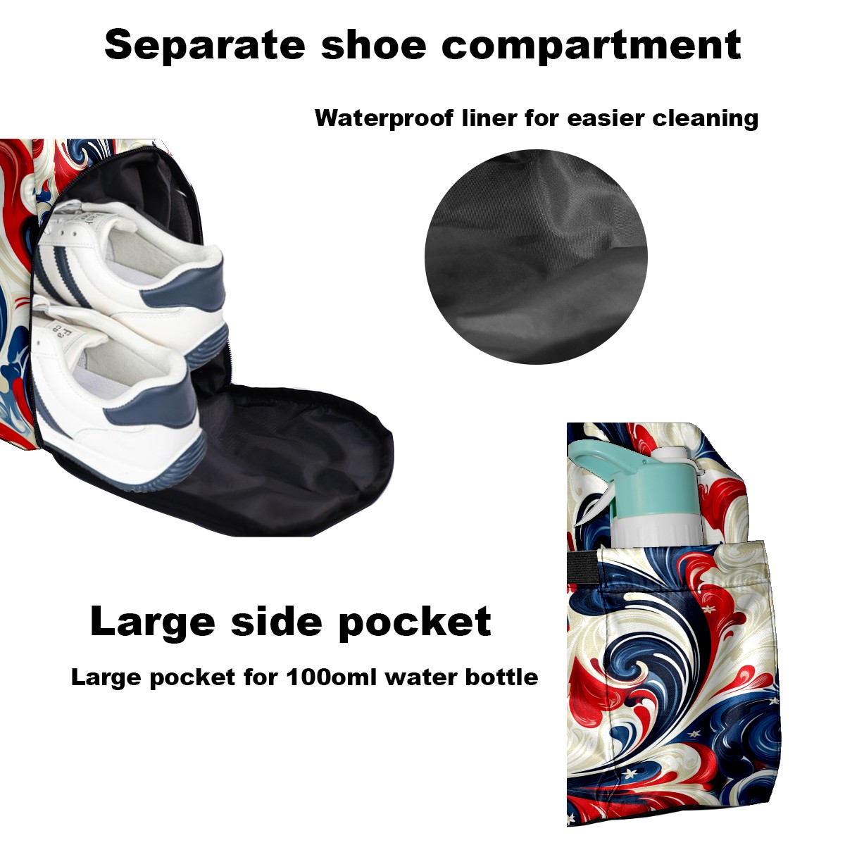 <p>Multifunctional Gym Travel Bag Made of Twill Fabric 22cm x 48cm x 35cm (8.7in x 18.9in x 13.8in) Made of lightweight and durable twill fabric, this bag is perfect for an active lifestyle. The spacious main compartment easily holds clothing, towels, and a full set of gym gear. A smart pocket precisely stores your phone, earphones, and gym membership card. A ventilated shoe compartment can hold size 10 athletic shoes, and a waterproof wet bag isolates swimwear or sweaty clothing, effectively preventing odors and clutter. It's a professional gym bag suitable for spinning and strength training, a stylish everyday handbag, and can also meet diverse needs such as pickleball, weekend trips, and overnight stays. Combining functionality and style, it seamlessly integrates into various scenarios.<br></p>