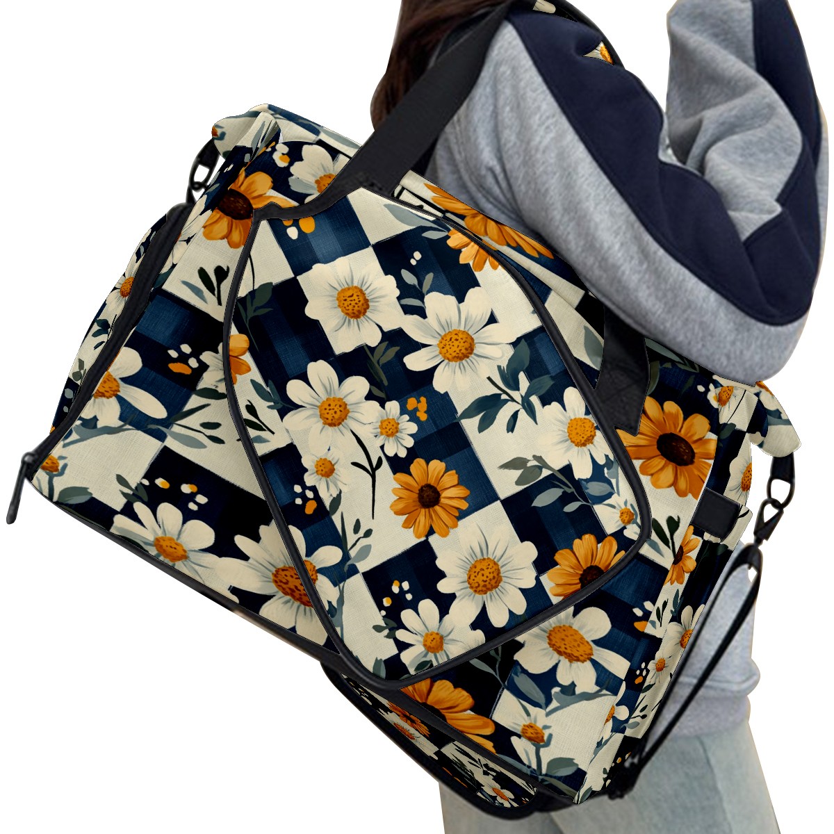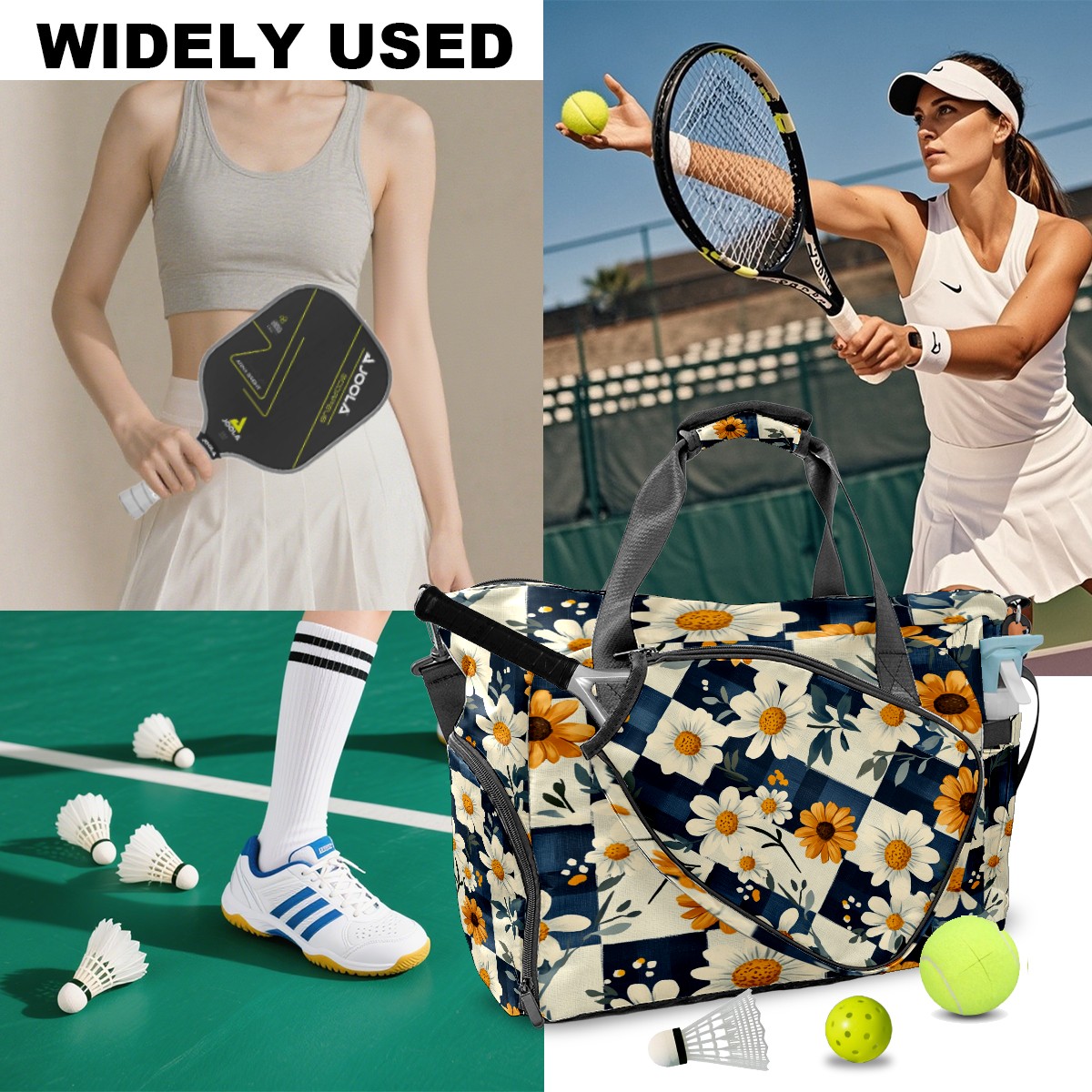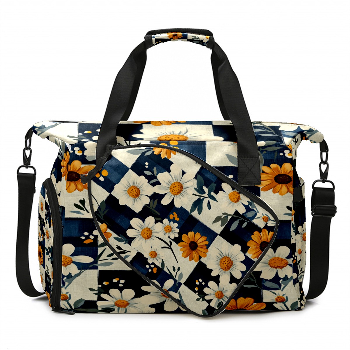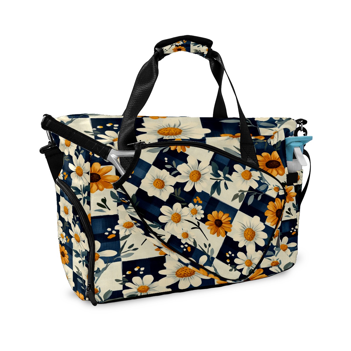 Lightweight Pickleball Tote Bag with Large Capacity, Shoe Compartment, Large Paddle Storage, Water Bottle Holder & Fence Hook for Women & Men Daisy Plaid Pattern
