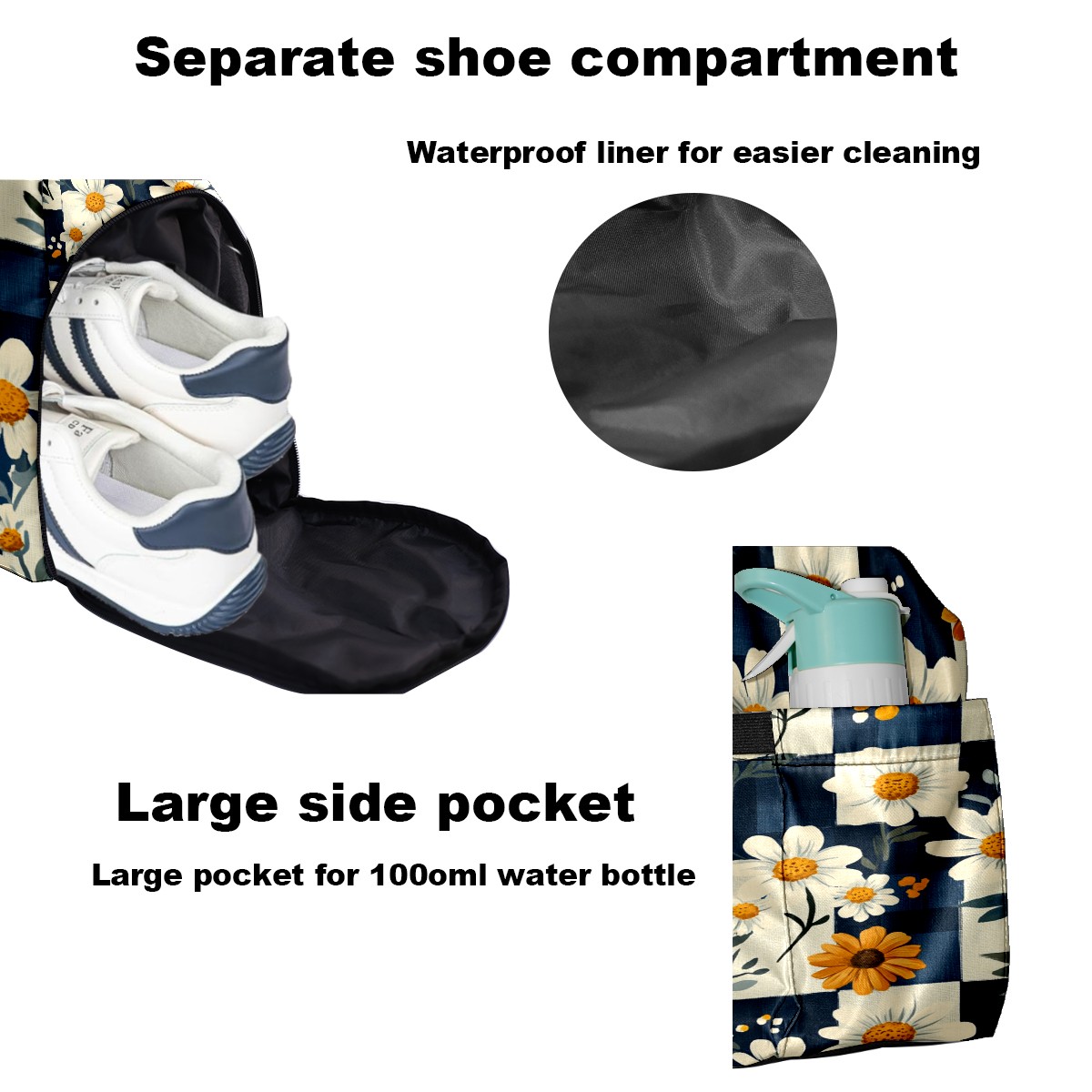 • <p>Multifunctional Gym Travel Bag Made of Twill Fabric 22cm x 48cm x 35cm (8.7in x 18.9in x 13.8in) Made of lightweight and durable twill fabric, this bag is perfect for an active lifestyle. The spacious main compartment easily holds clothing, towels, and a full set of gym gear. A smart pocket precisely stores your phone, earphones, and gym membership card. A ventilated shoe compartment can hold size 10 athletic shoes, and a waterproof wet bag isolates swimwear or sweaty clothing, effectively preventing odors and clutter. It's a professional gym bag suitable for spinning and strength training, a stylish everyday handbag, and can also meet diverse needs such as pickleball, weekend trips, and overnight stays. Combining functionality and style, it seamlessly integrates into various scenarios.<br></p>