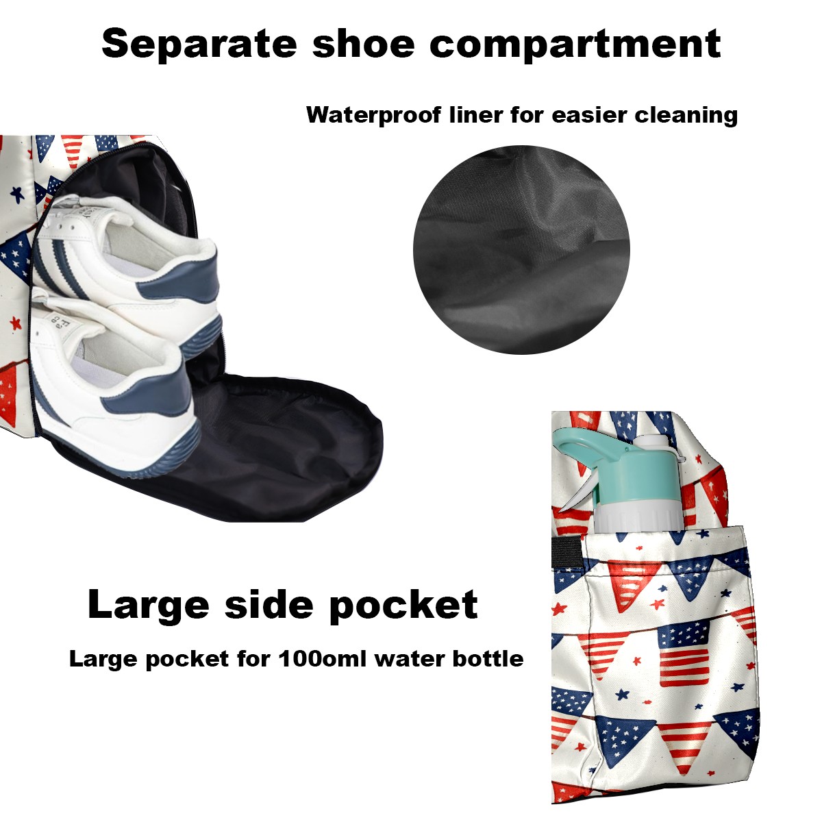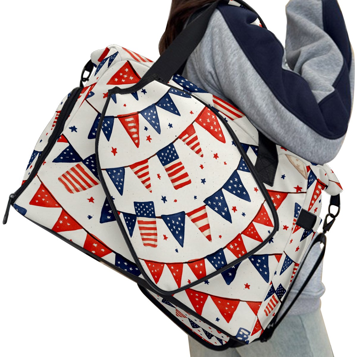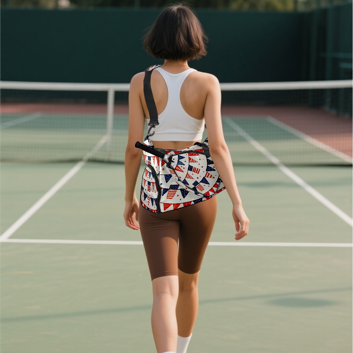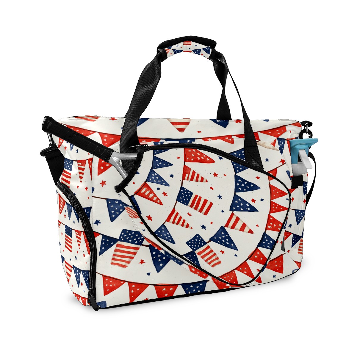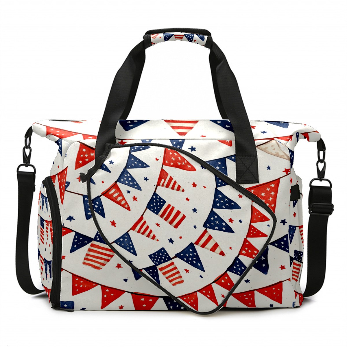 Lightweight Pickleball Tote Bag with Large Capacity, Shoe Compartment, Large Paddle Storage, Water Bottle Holder & Fence Hook for Women & Men Flag Pattern