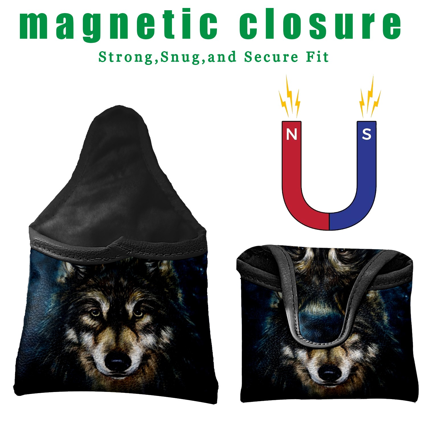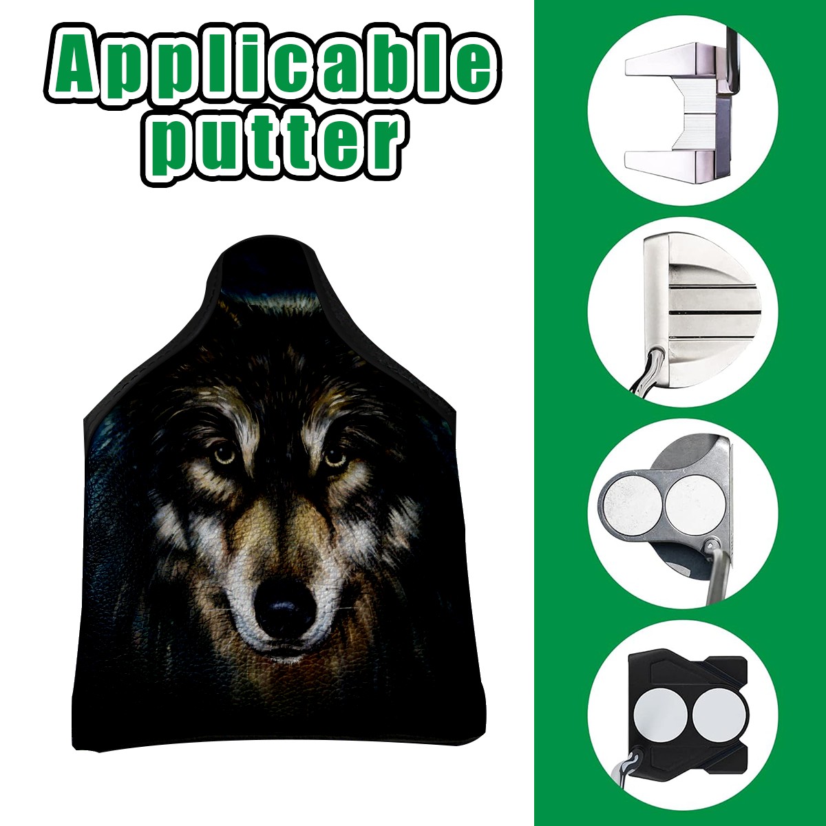 Mallet Putter Cover Magnetic Golf Headcovers PU Leather Waterproof Putter Club Head Covers Golf Protective Equipment with Velvet Lining Golf Club Covers for for Men Women Oil Painting Wolf Hipster