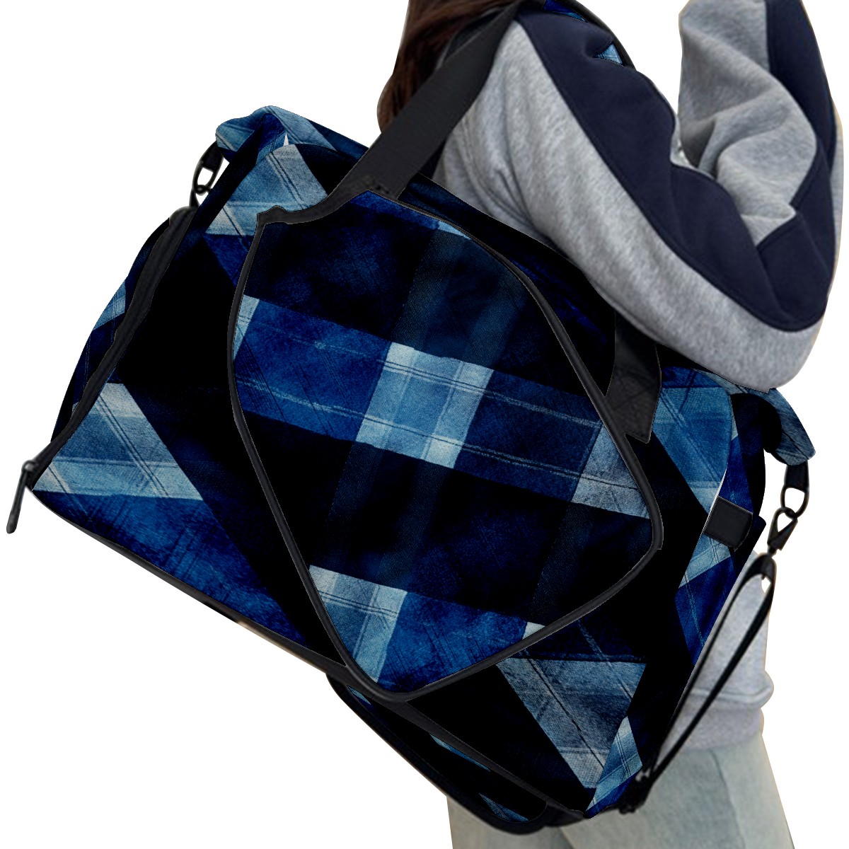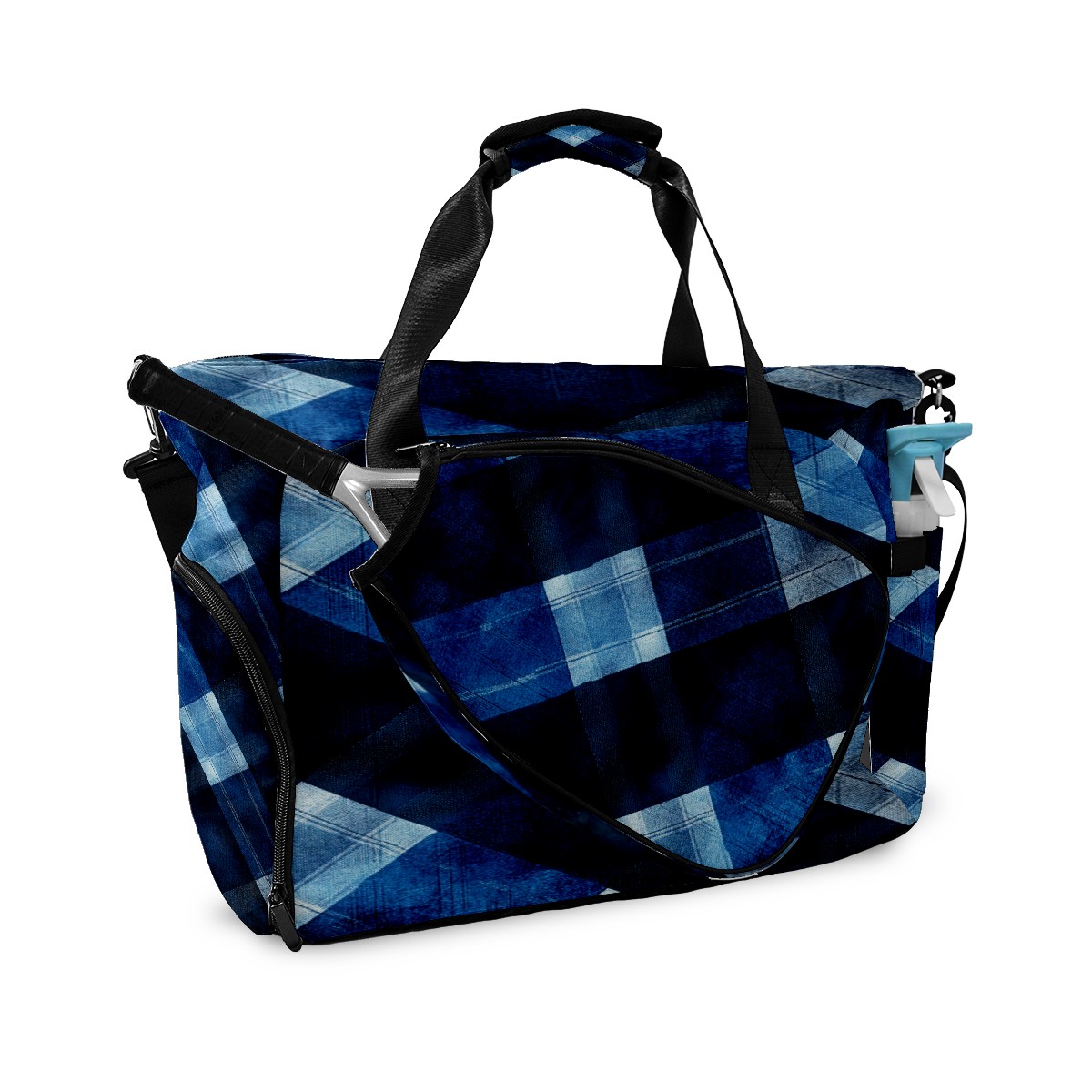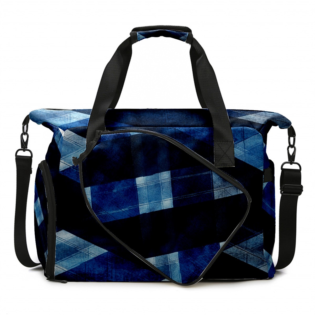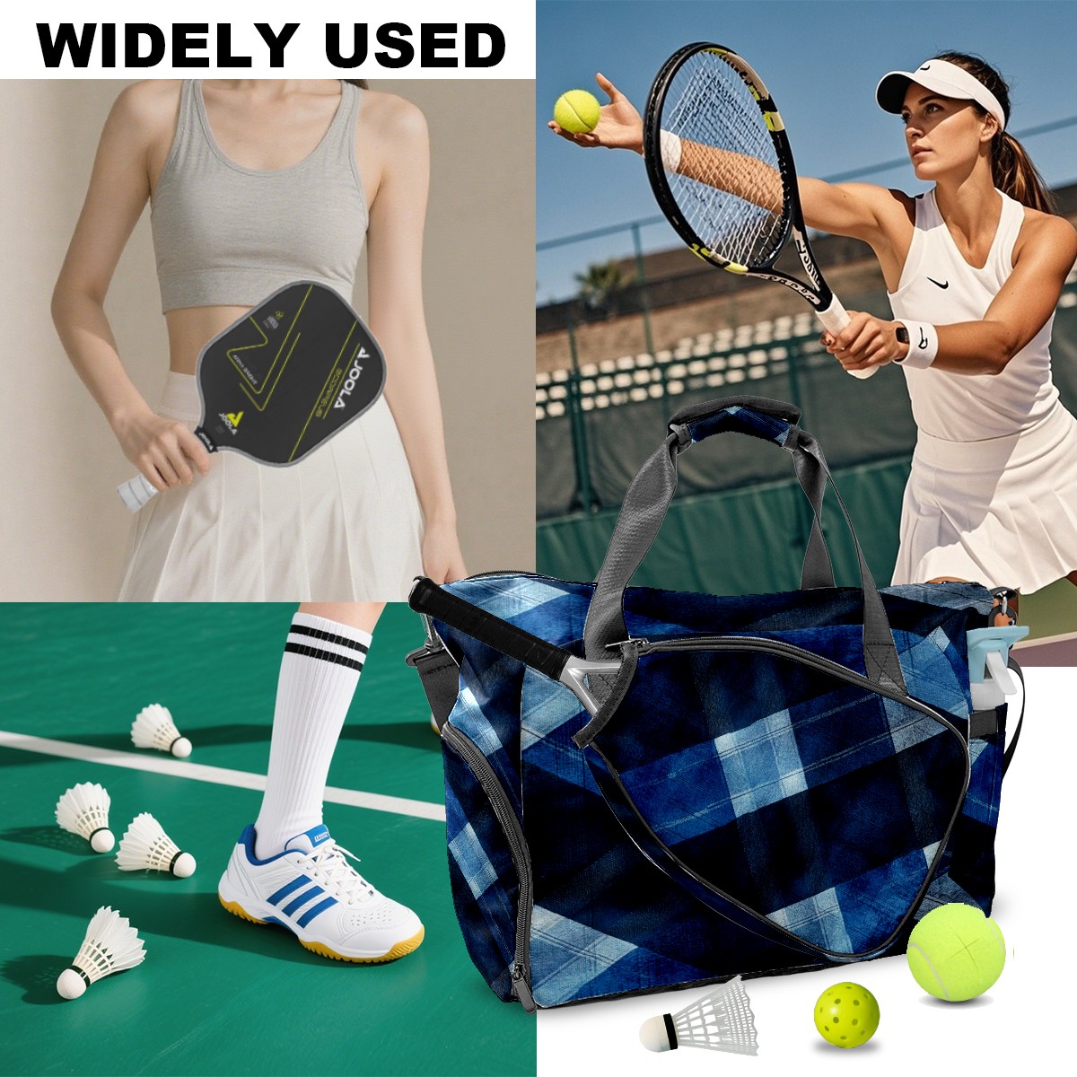 Lightweight Pickleball Tote Bag with Large Capacity, Shoe Compartment, Large Paddle Storage, Water Bottle Holder & Fence Hook for Women & Men Dark Blue Plaid Pattern