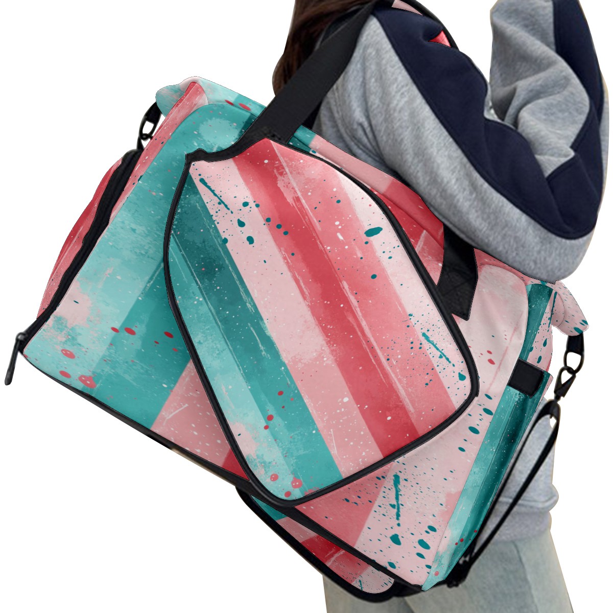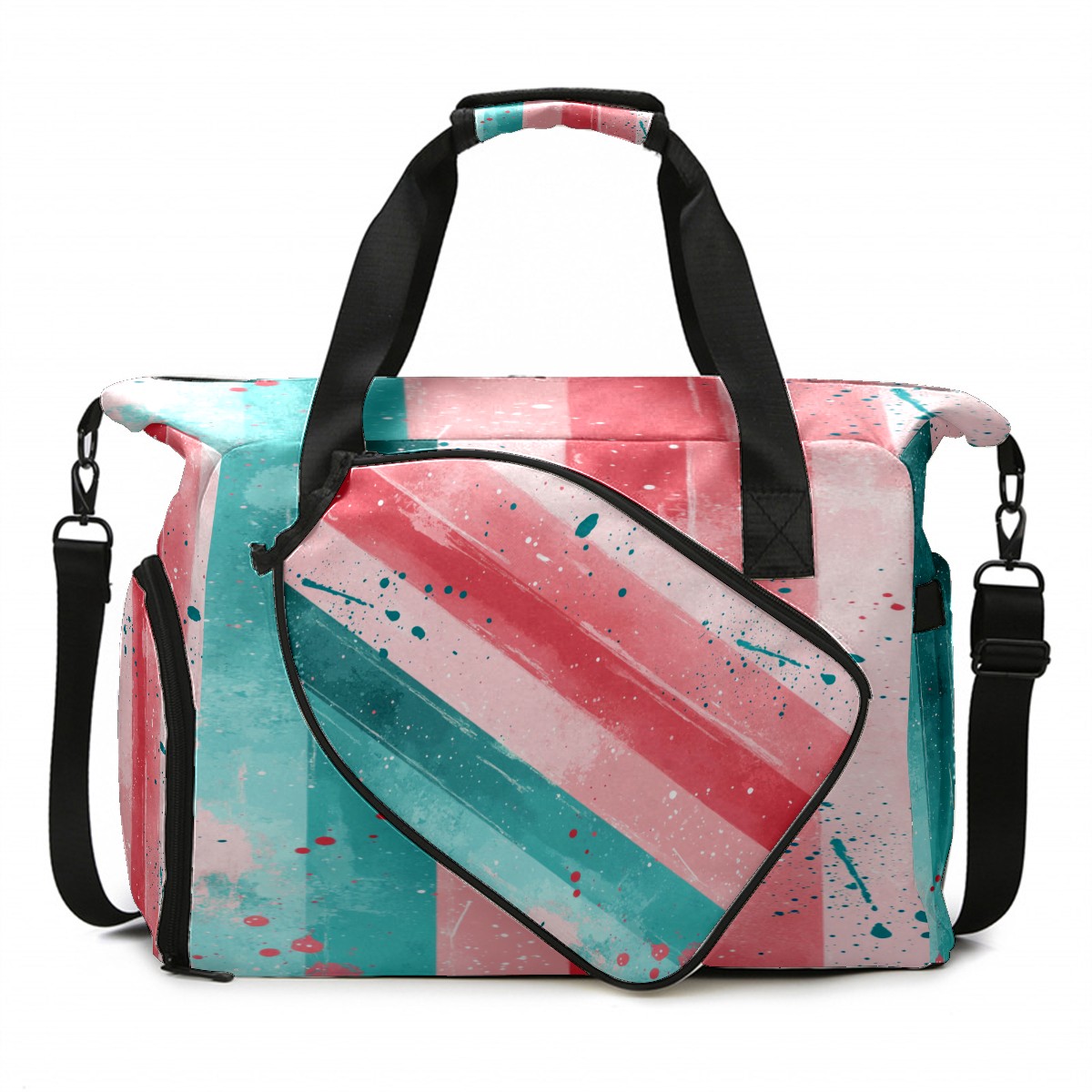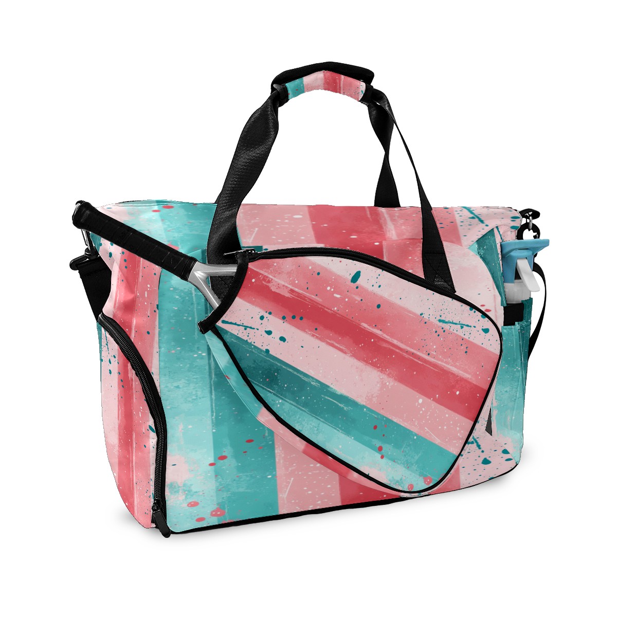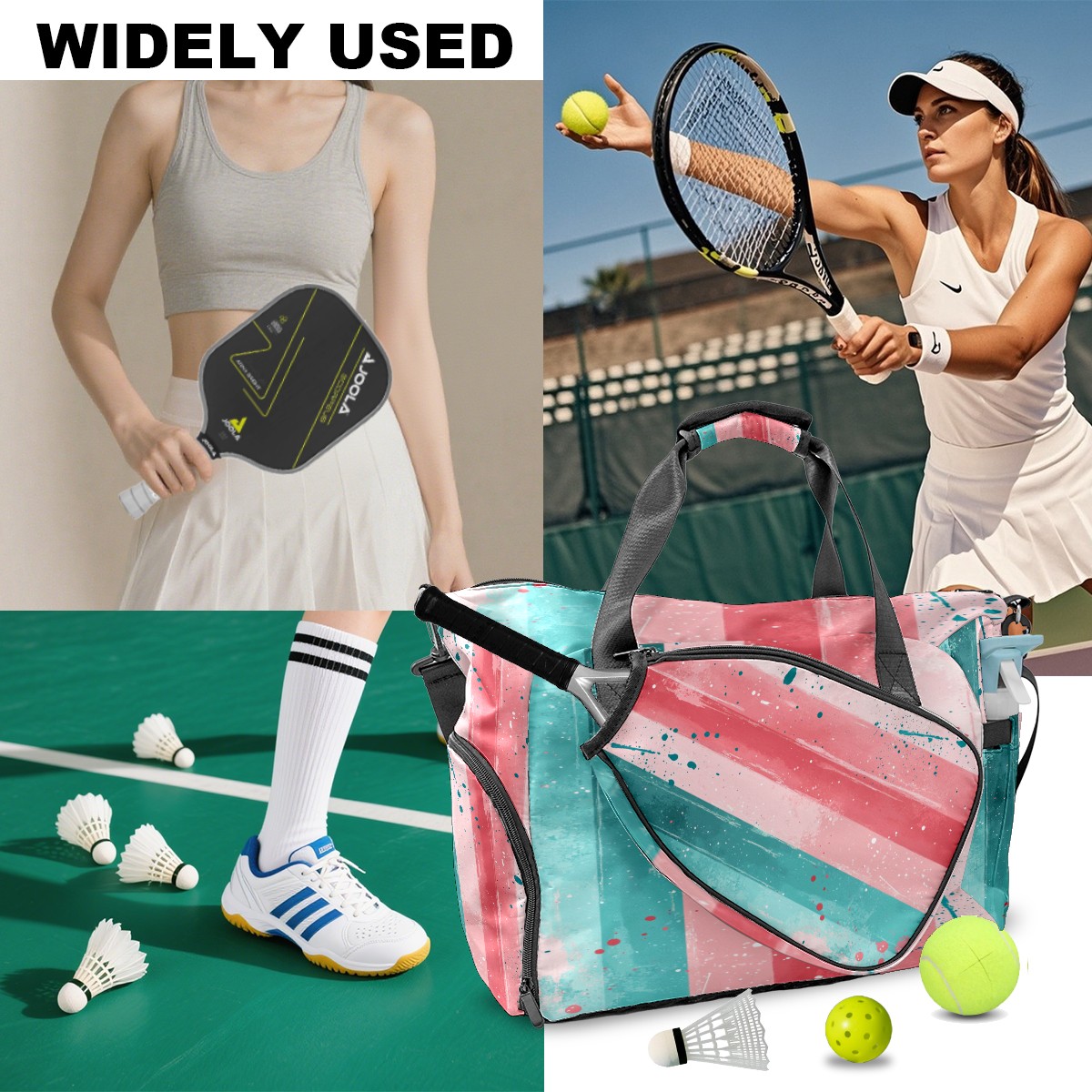 Lightweight Pickleball Tote Bag with Large Capacity, Shoe Compartment, Large Paddle Storage, Water Bottle Holder & Fence Hook for Women & Men Pink Striped Pattern