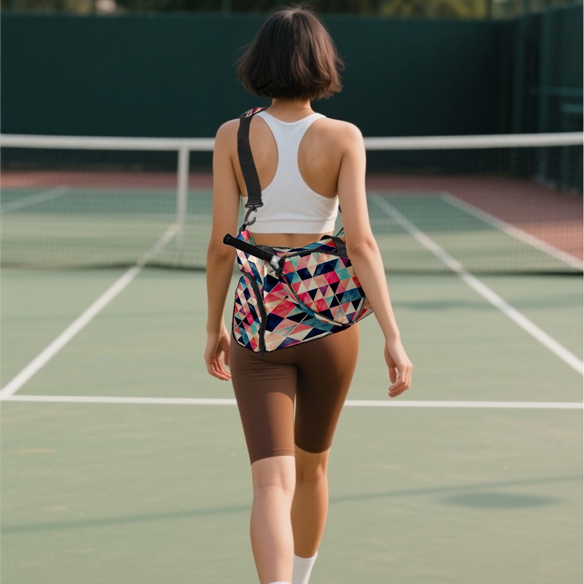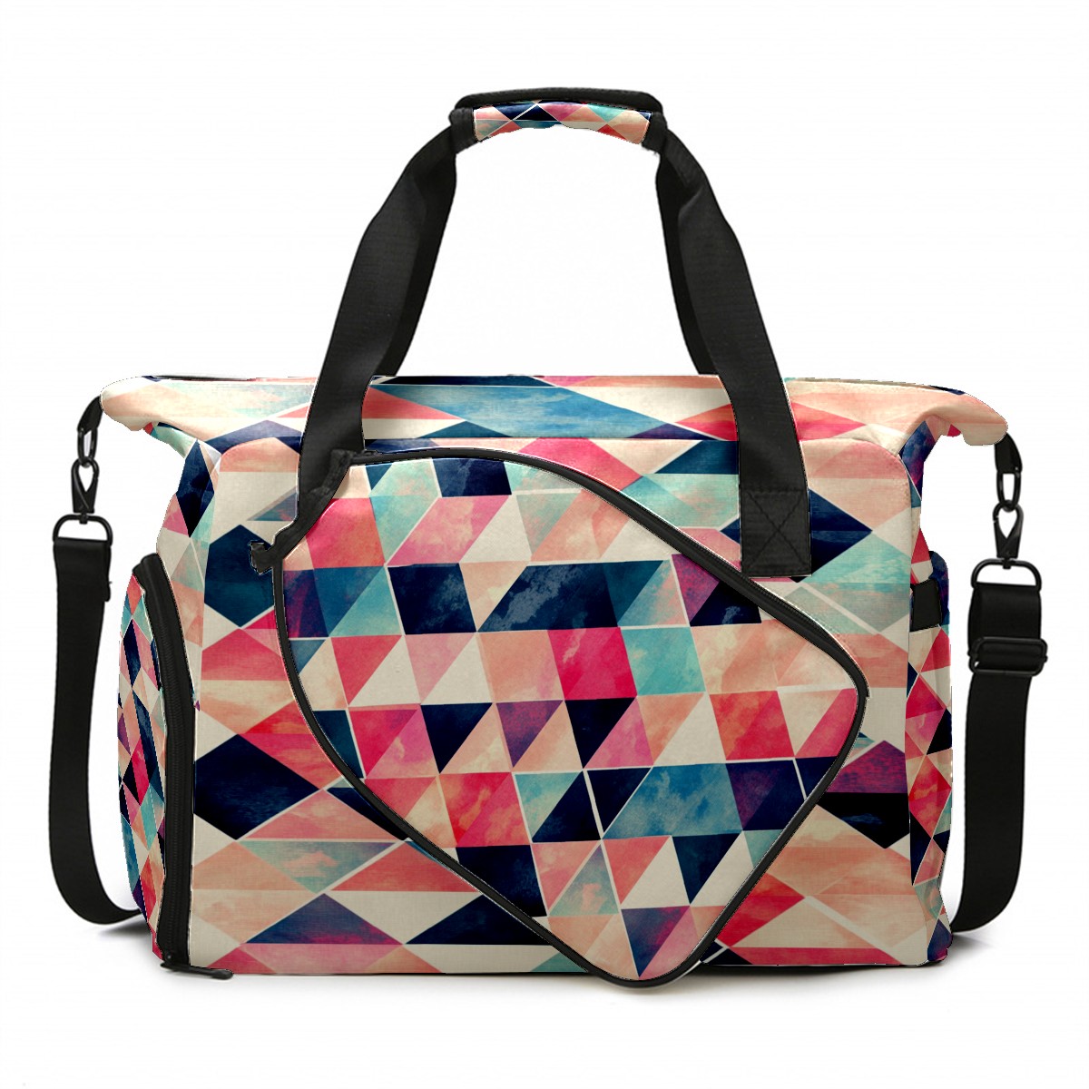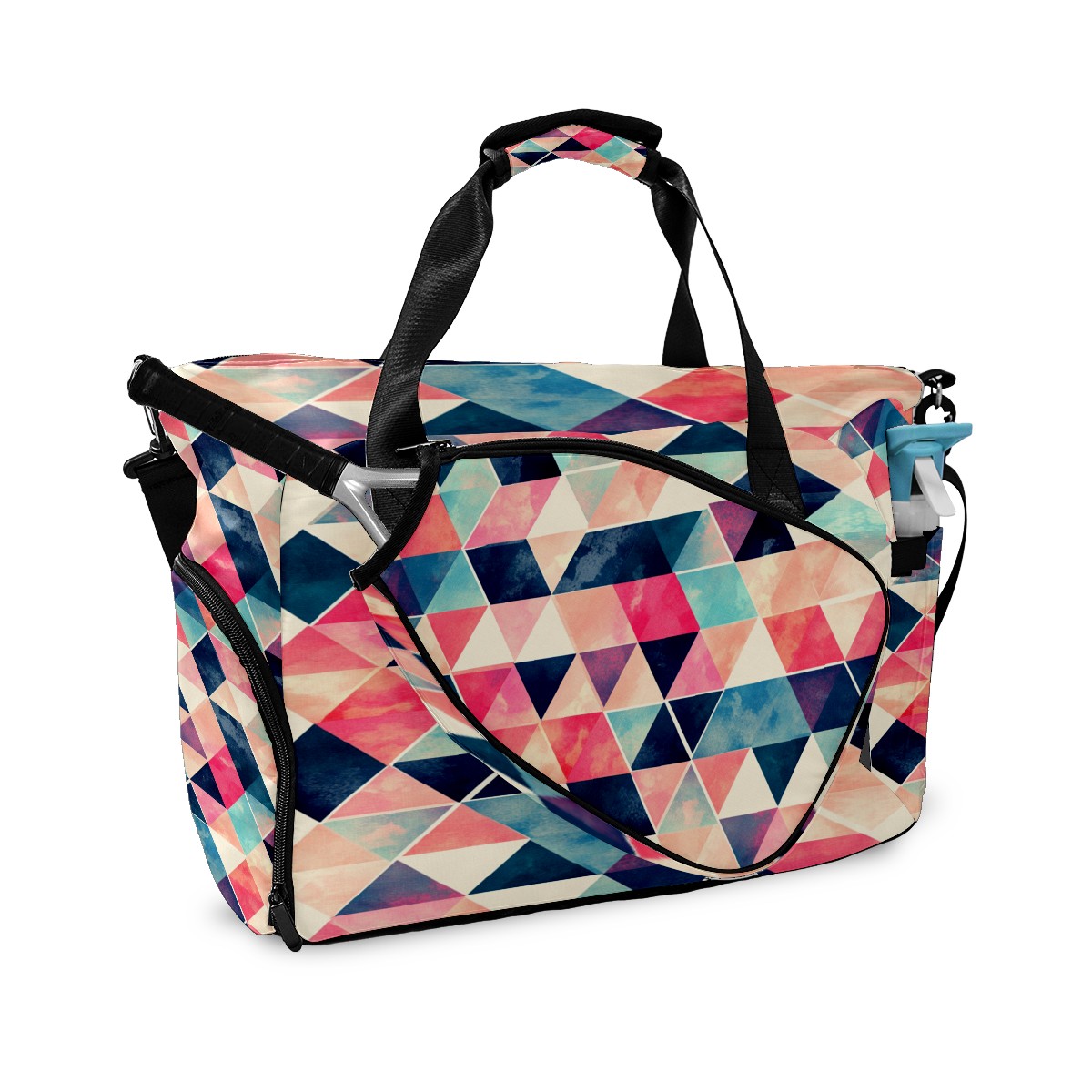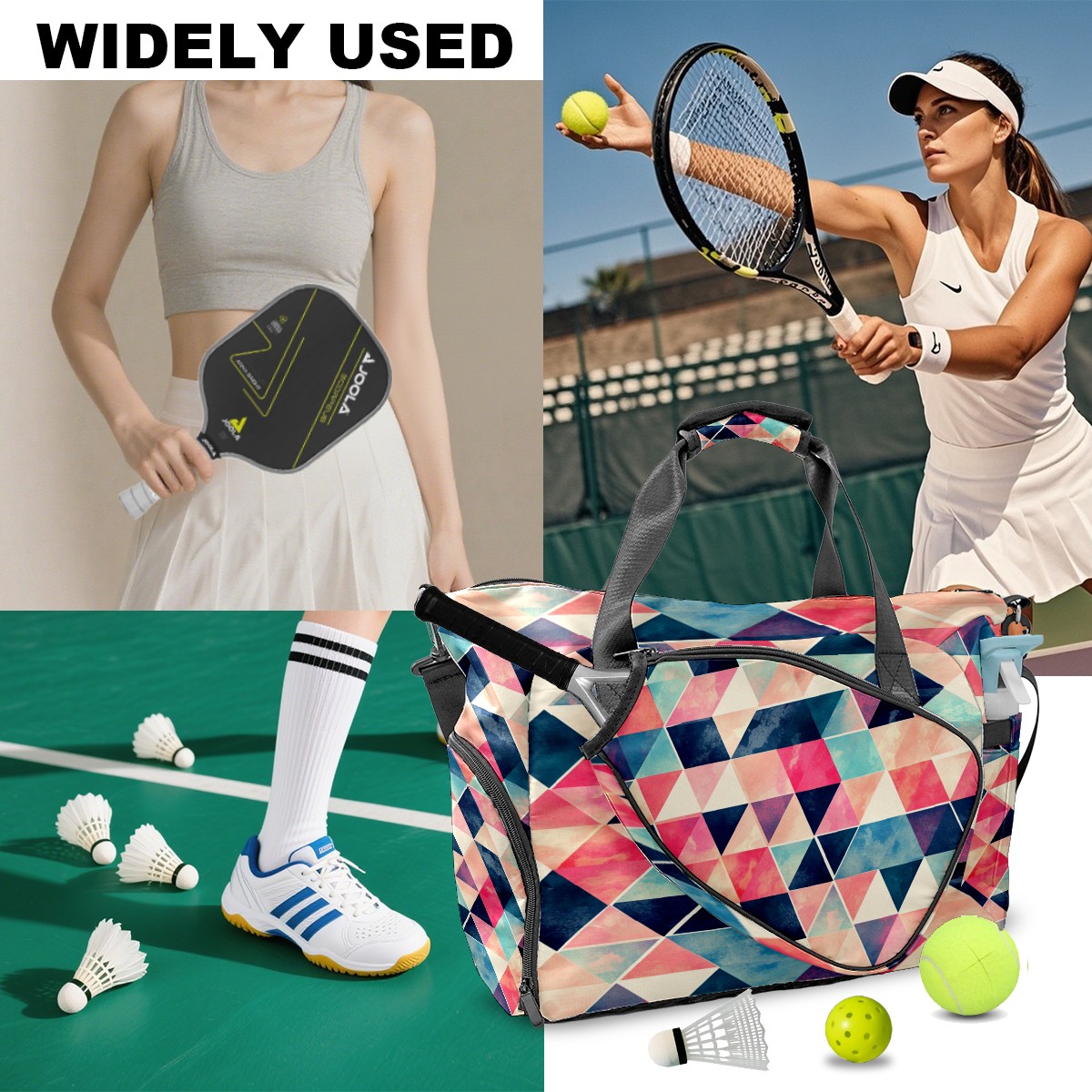 Lightweight Pickleball Tote Bag with Large Capacity, Shoe Compartment, Large Paddle Storage, Water Bottle Holder & Fence Hook for Women & Men Pink Blue Checkered Pattern