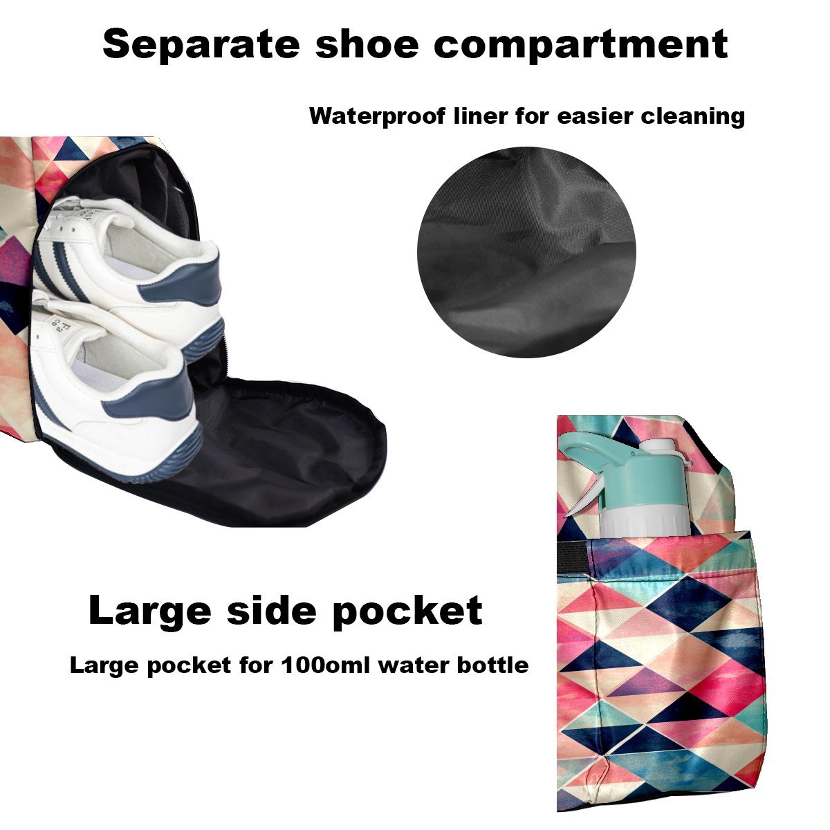 <p>Multifunctional Gym Travel Bag Made of Twill Fabric 22cm x 48cm x 35cm (8.7in x 18.9in x 13.8in) Made of lightweight and durable twill fabric, this bag is perfect for an active lifestyle. The spacious main compartment easily holds clothing, towels, and a full set of gym gear. A smart pocket precisely stores your phone, earphones, and gym membership card. A ventilated shoe compartment can hold size 10 athletic shoes, and a waterproof wet bag isolates swimwear or sweaty clothing, effectively preventing odors and clutter. It's a professional gym bag suitable for spinning and strength training, a stylish everyday handbag, and can also meet diverse needs such as pickleball, weekend trips, and overnight stays. Combining functionality and style, it seamlessly integrates into various scenarios.<br></p>