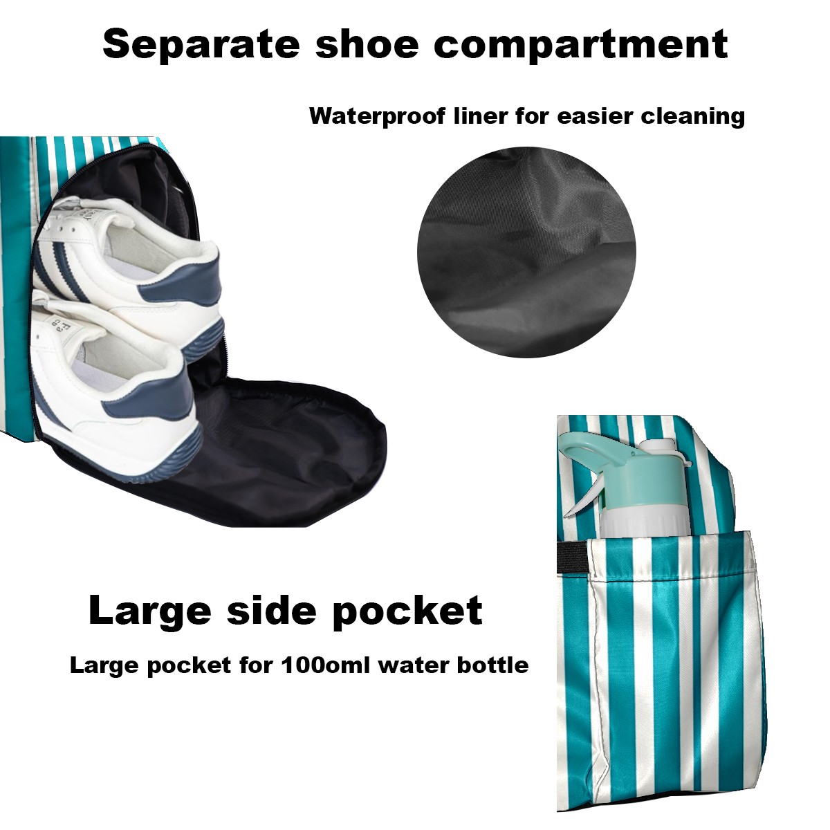 • <p>Multifunctional Gym Travel Bag Made of Twill Fabric 22cm x 48cm x 35cm (8.7in x 18.9in x 13.8in) Made of lightweight and durable twill fabric, this bag is perfect for an active lifestyle. The spacious main compartment easily holds clothing, towels, and a full set of gym gear. A smart pocket precisely stores your phone, earphones, and gym membership card. A ventilated shoe compartment can hold size 10 athletic shoes, and a waterproof wet bag isolates swimwear or sweaty clothing, effectively preventing odors and clutter. It's a professional gym bag suitable for spinning and strength training, a stylish everyday handbag, and can also meet diverse needs such as pickleball, weekend trips, and overnight stays. Combining functionality and style, it seamlessly integrates into various scenarios.<br></p>