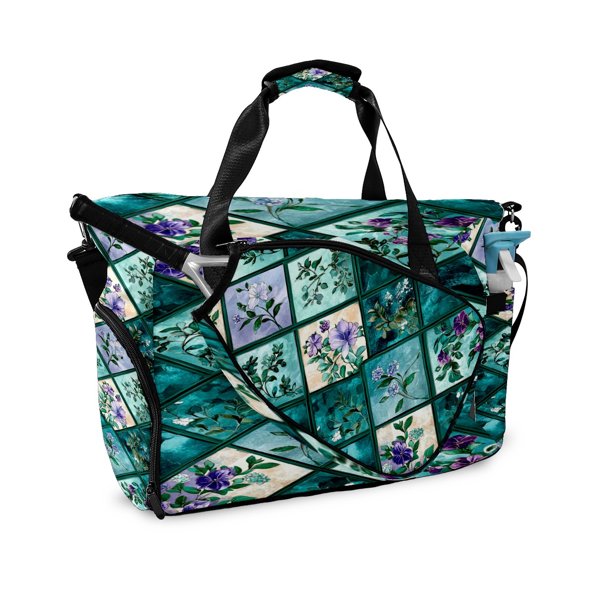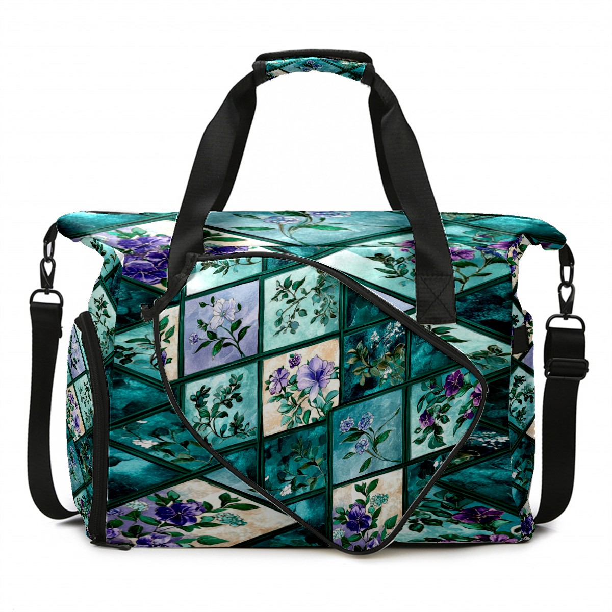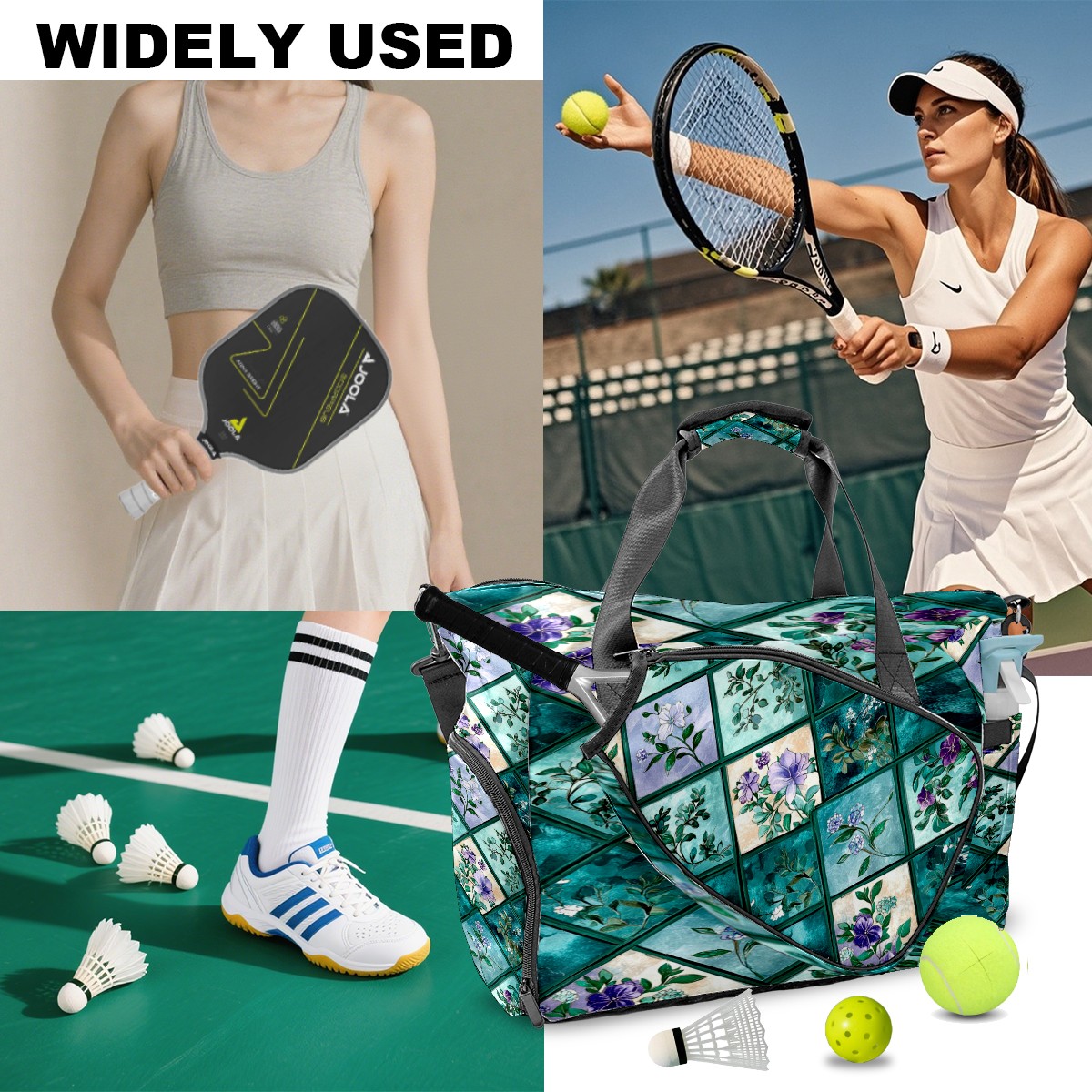 Lightweight Pickleball Tote Bag with Large Capacity, Shoe Compartment, Large Paddle Storage, Water Bottle Holder & Fence Hook for Women & Men Checkered Floral Pattern