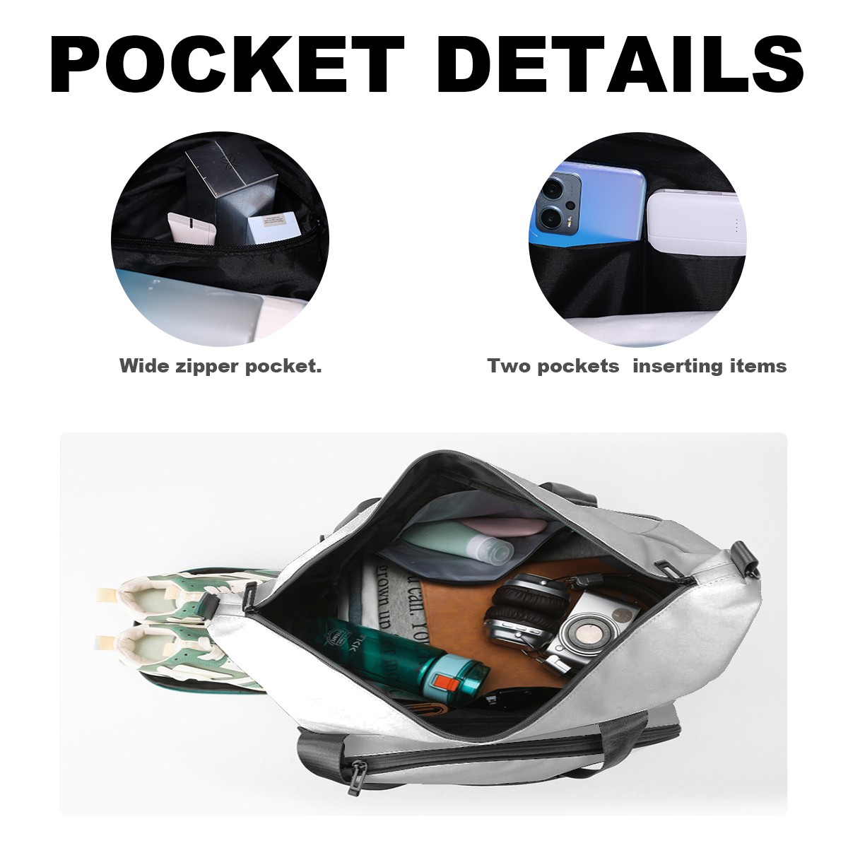 • <p>Multifunctional Gym Travel Bag Made of Twill Fabric 22cm x 48cm x 35cm (8.7in x 18.9in x 13.8in) Made of lightweight and durable twill fabric, this bag is perfect for an active lifestyle. The spacious main compartment easily holds clothing, towels, and a full set of gym gear. A smart pocket precisely stores your phone, earphones, and gym membership card. A ventilated shoe compartment can hold size 10 athletic shoes, and a waterproof wet bag isolates swimwear or sweaty clothing, effectively preventing odors and clutter. It's a professional gym bag suitable for spinning and strength training, a stylish everyday handbag, and can also meet diverse needs such as pickleball, weekend trips, and overnight stays. Combining functionality and style, it seamlessly integrates into various scenarios.<br></p>