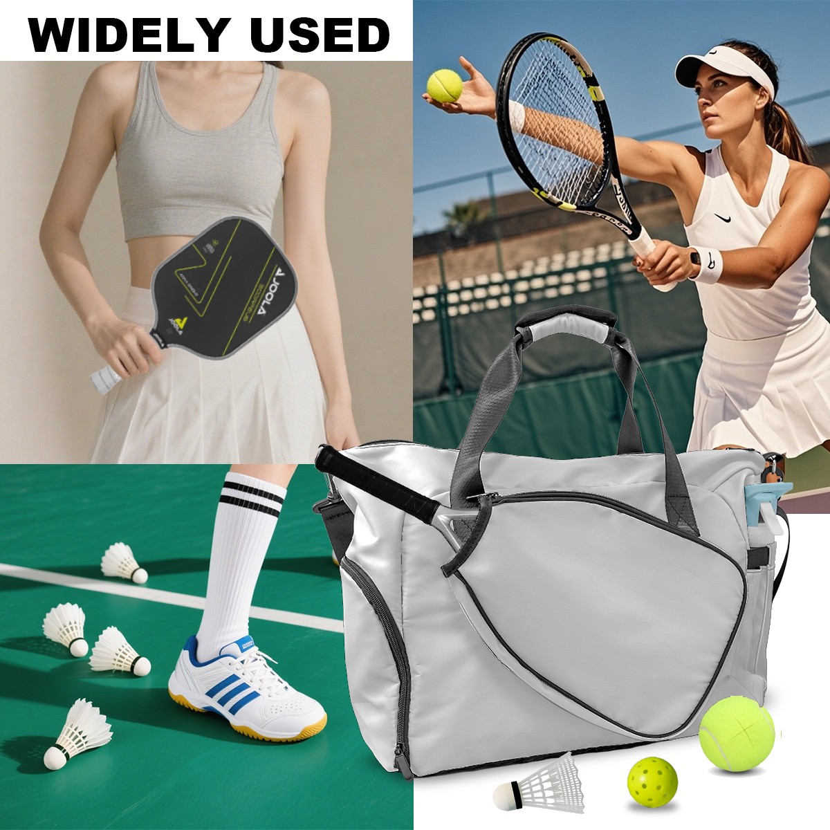 Lightweight Pickleball Tote Bag with Large Capacity, Shoe Compartment, Large Paddle Storage, Water Bottle Holder & Fence Hook for Women & Men Gray